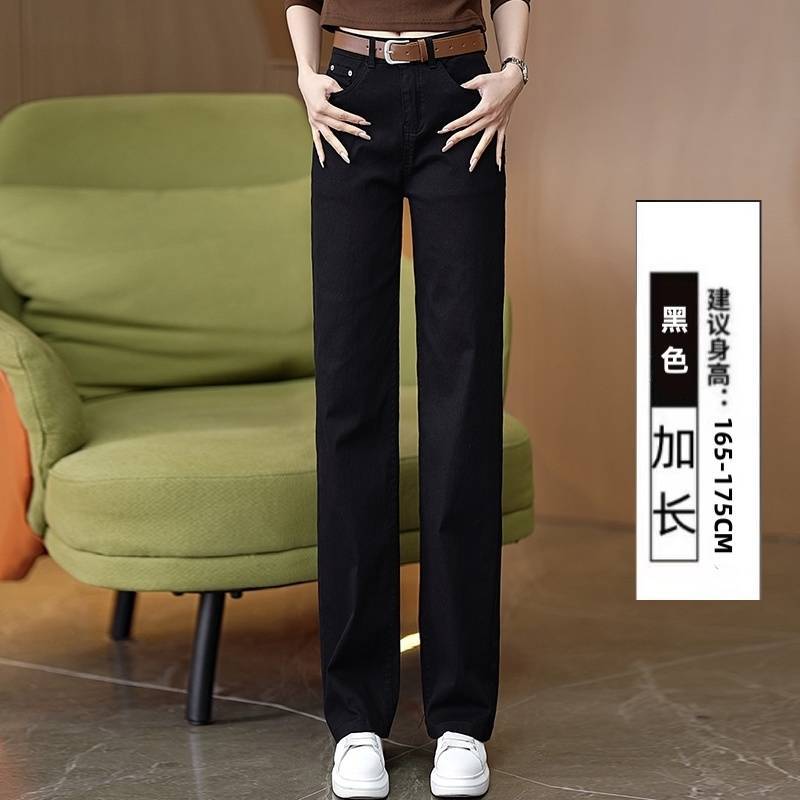 스트레치 스트레이트 청바지 여자 2025 년 봄과 가을 새로운 높은 허리 느슨한 올매치 캐주얼 슬리밍 좁은 넓은 다리 바지