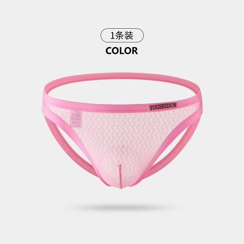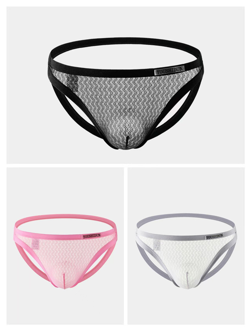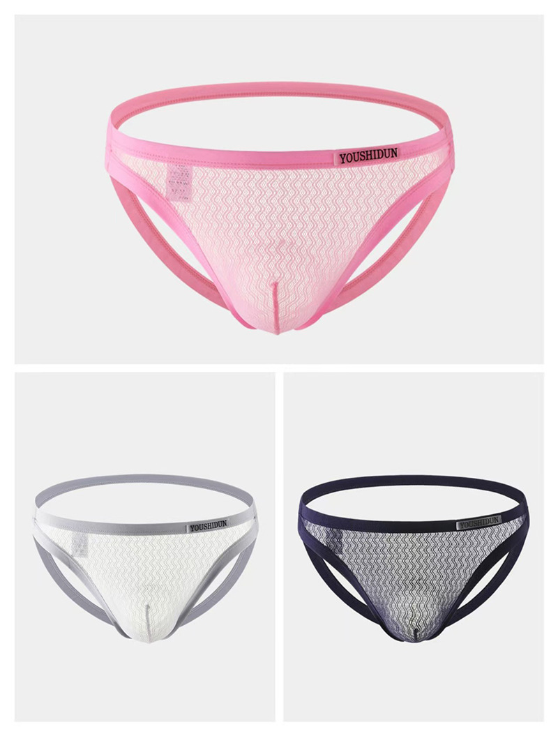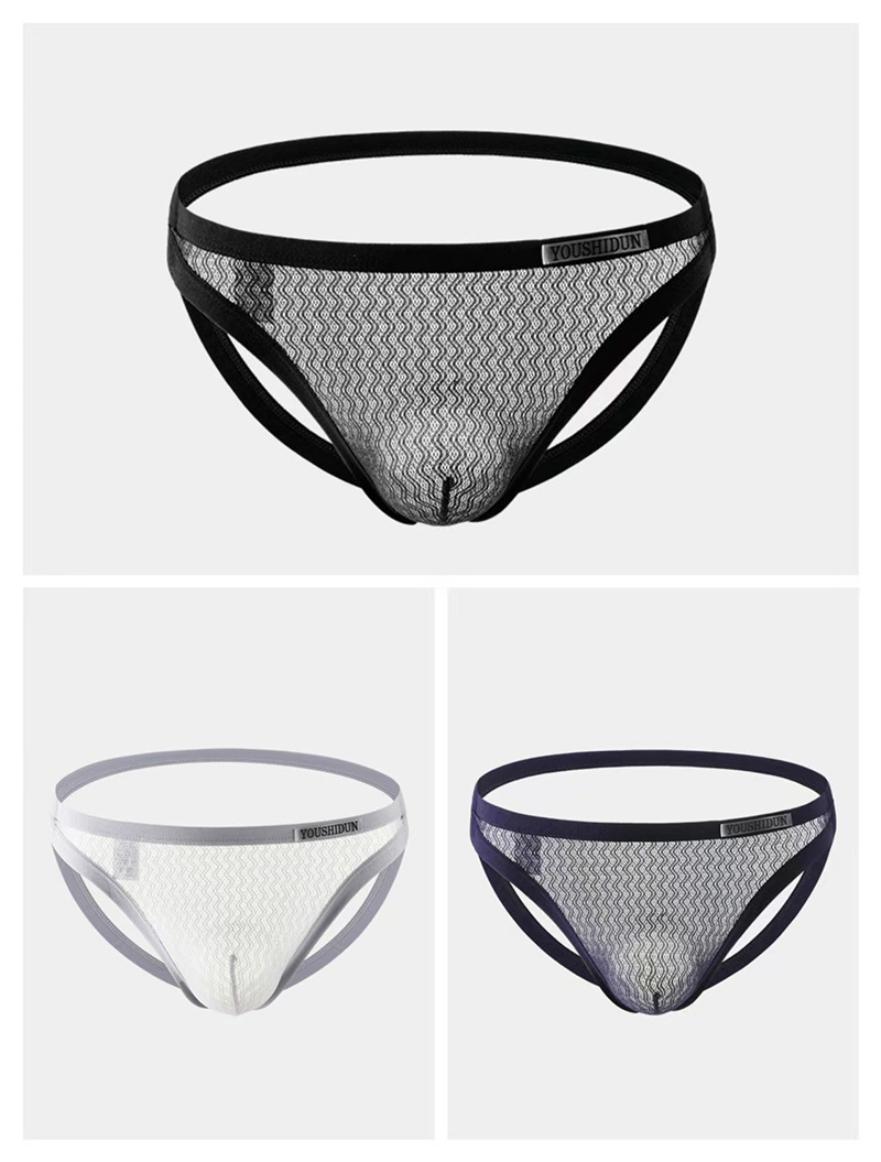 남자 더블 딩 섹시 메쉬 솔리드 컬러 속옷 높은 포크 쿨 통기성 중공 대형 포켓 남성용 딩 바지스토어 가기