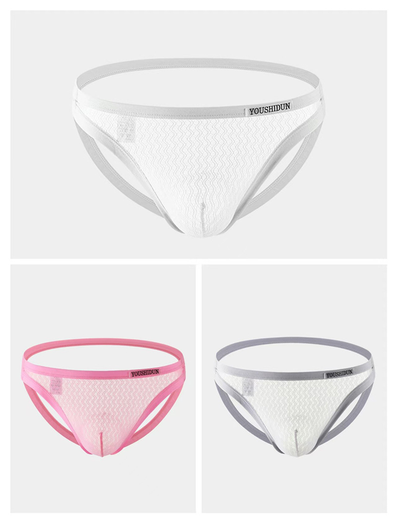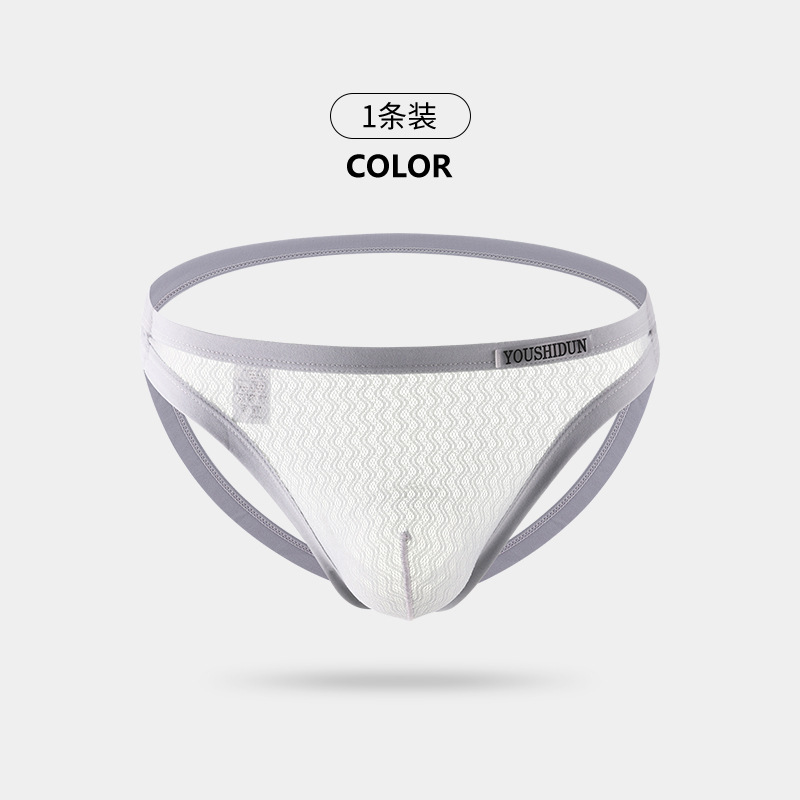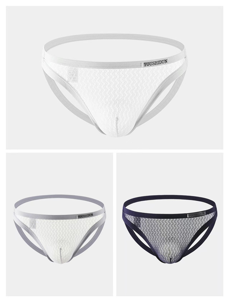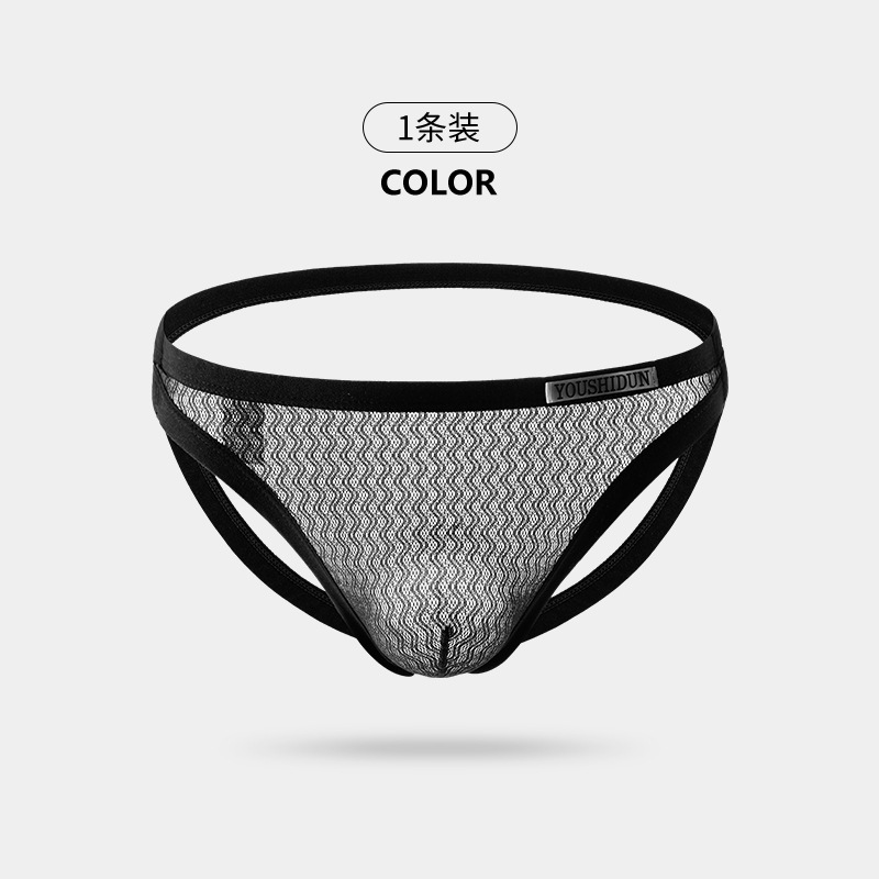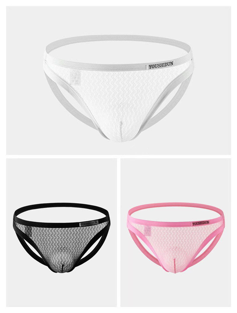 남자 더블 딩 섹시 메쉬 솔리드 컬러 속옷 높은 포크 쿨 통기성 중공 대형 포켓 남성용 딩 바지스토어 가기