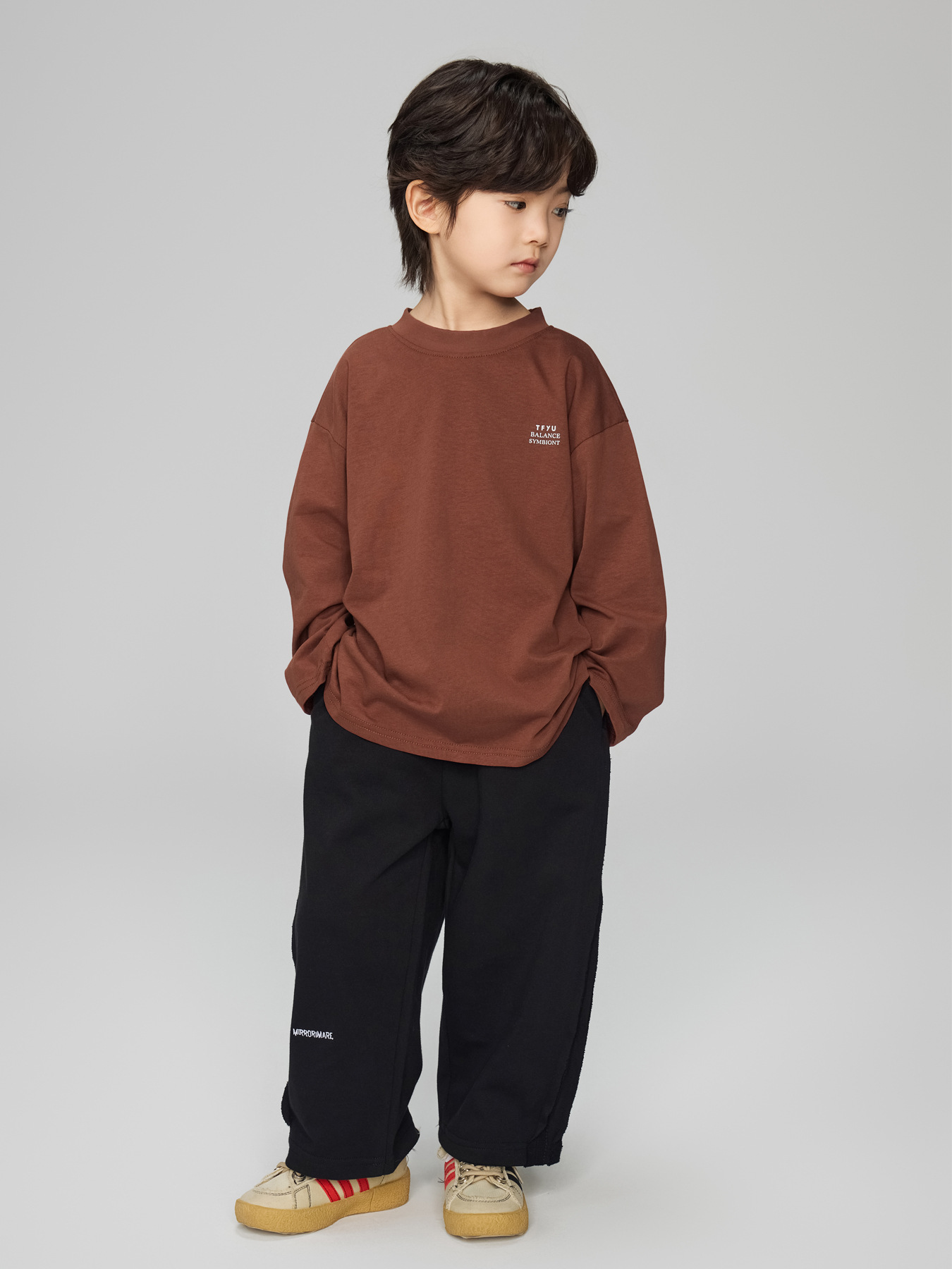 봄 2025 새로운 아동베이스 셔츠 소년의 편지 인쇄 느슨한 탑 중대형 어린이 미국 긴 소매 티셔츠스토어 가기