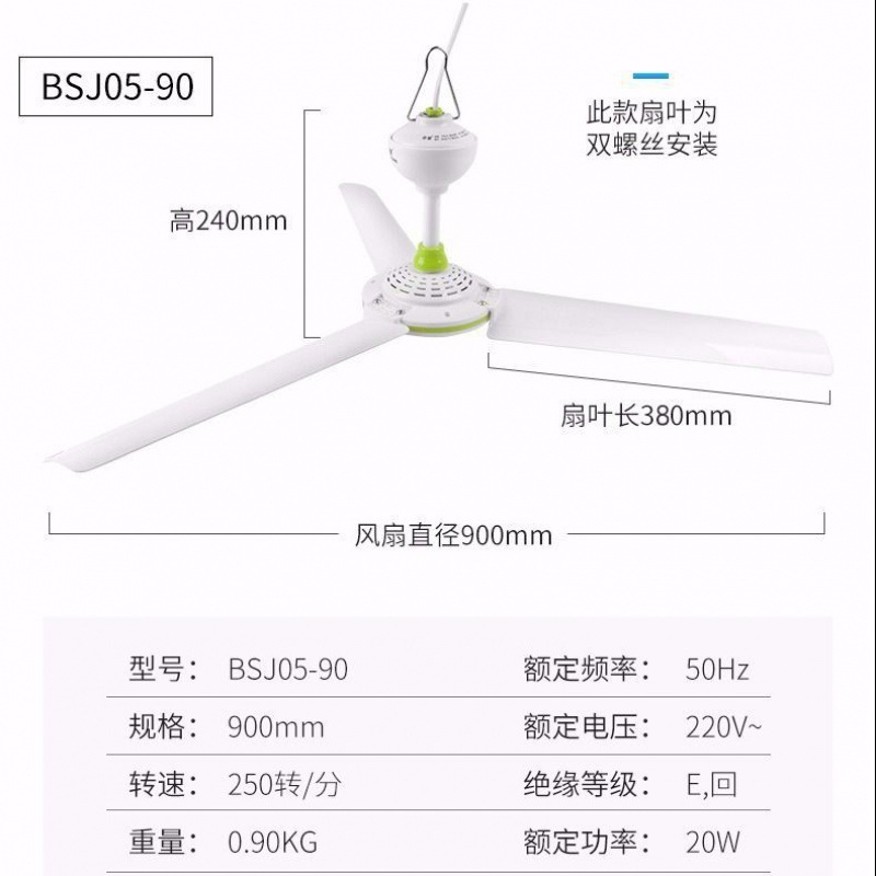 • 900 천장 선풍기 + 무료 연장 코드 3m