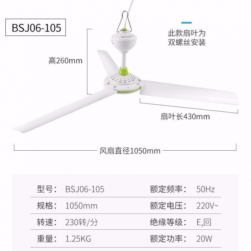 • 1050 천장 선풍기 + 무료 연장 코드 3m