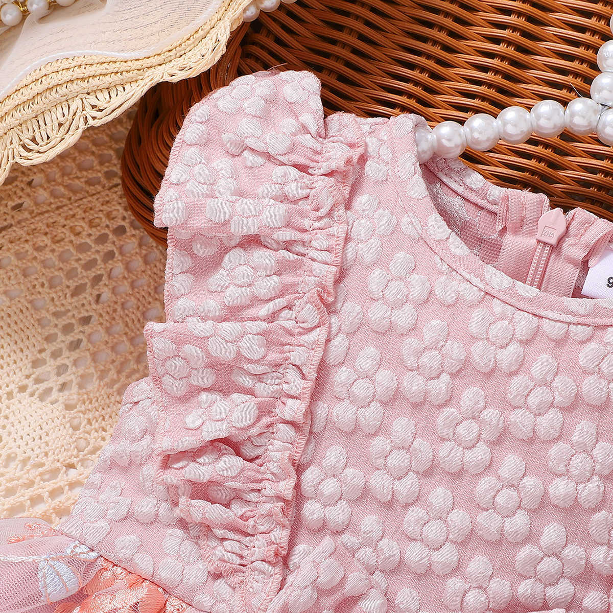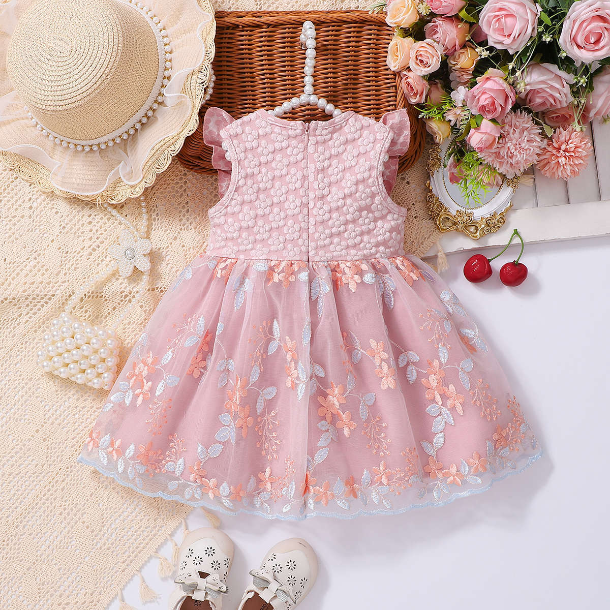 2024 년 새 여자 민소매 원피스 달콤한 중소 어린이 나비 메쉬 스커트 유럽과 미국 어린이 A 라인 스커트