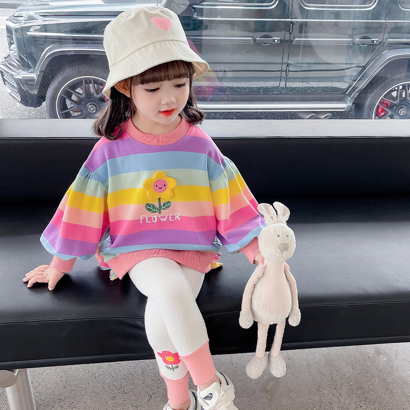 소녀 세트 봄과 가을 2025 새로운 스타일 서양식 7 꽃 9 여자 한국 스타일 인터넷 인기 아기 캐주얼 투피스 세트