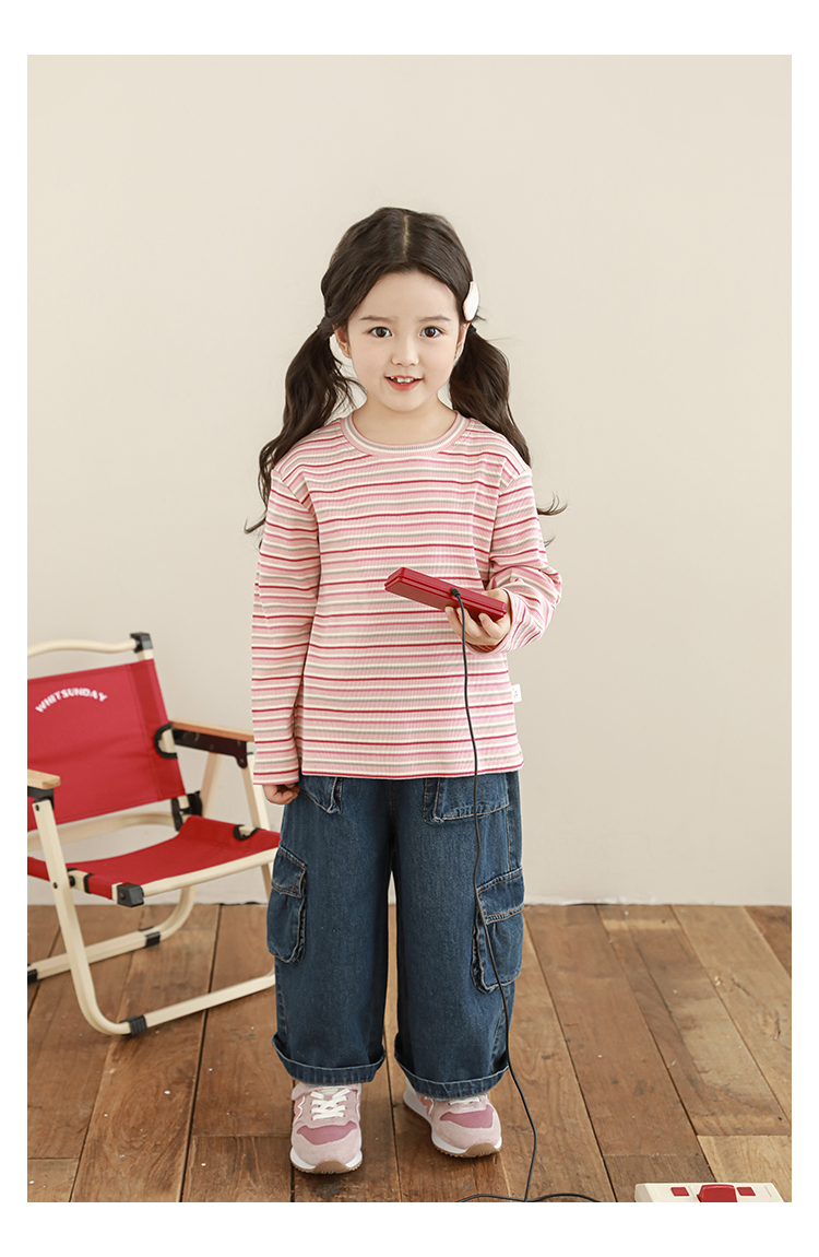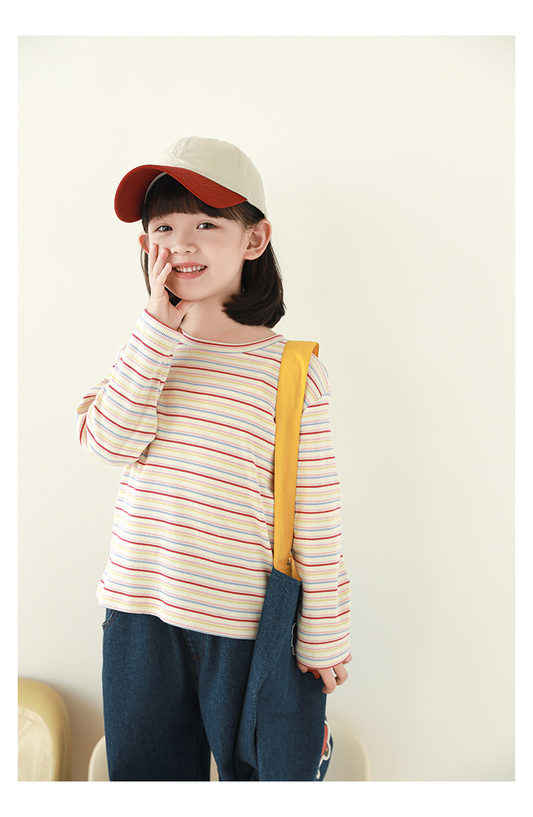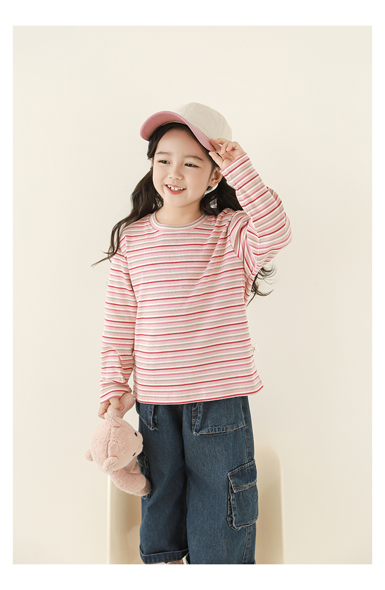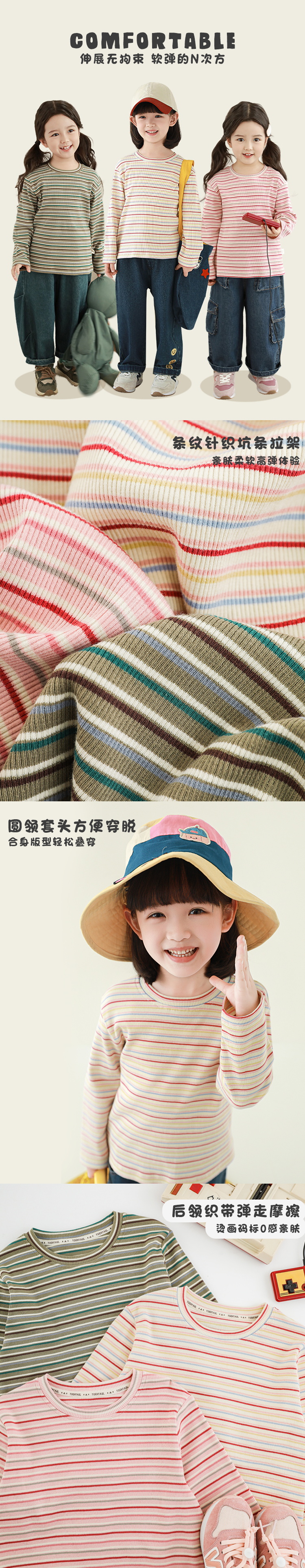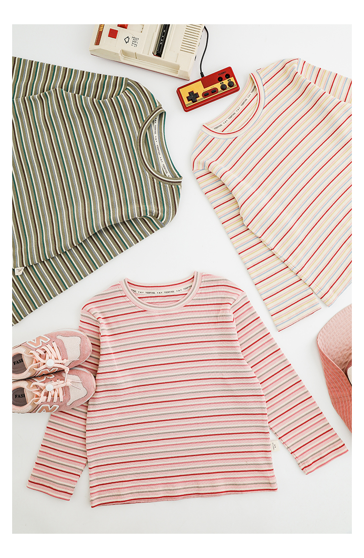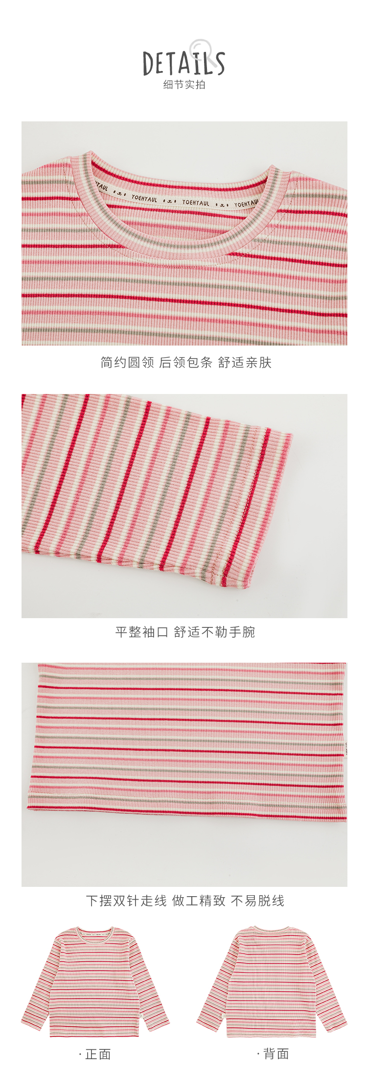 Wurib 소녀의 신선한 핀스트라이프 크루 넥 풀오버 티셔츠 봄 피부 친화적 인 소프트 니트 캐주얼 탑 트렌디스토어 가기