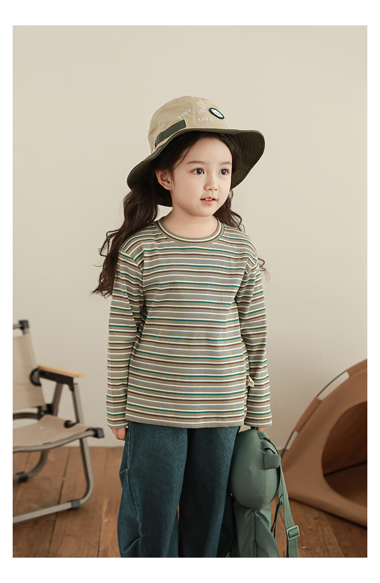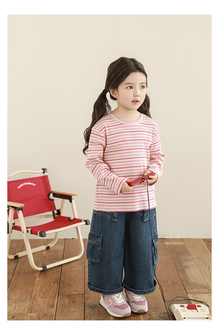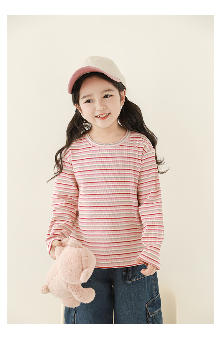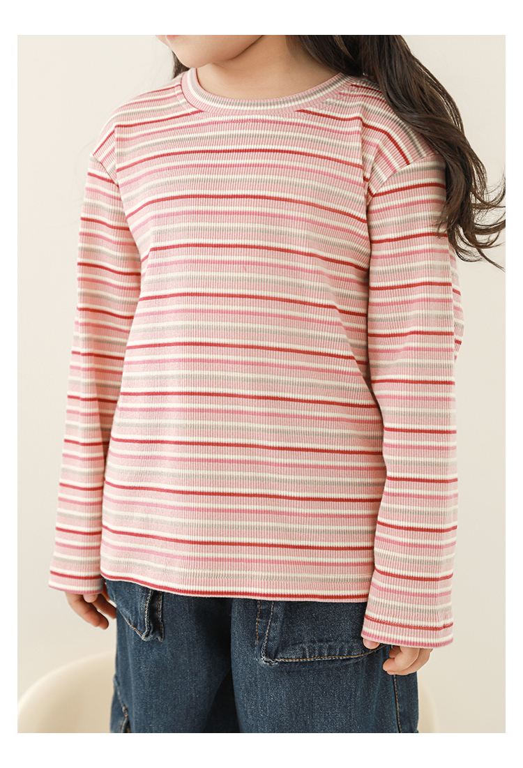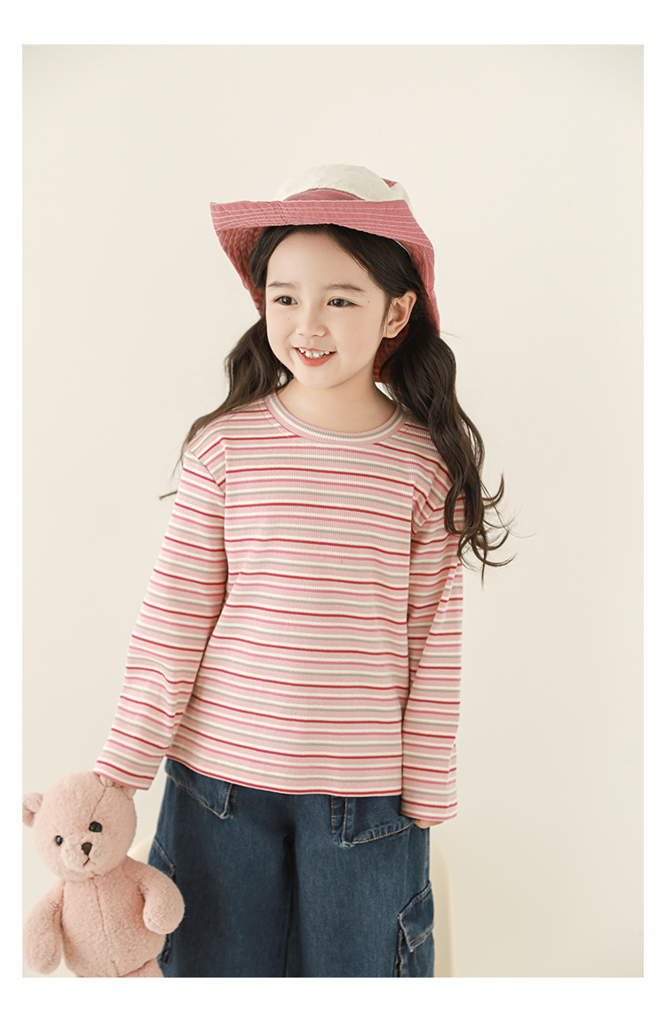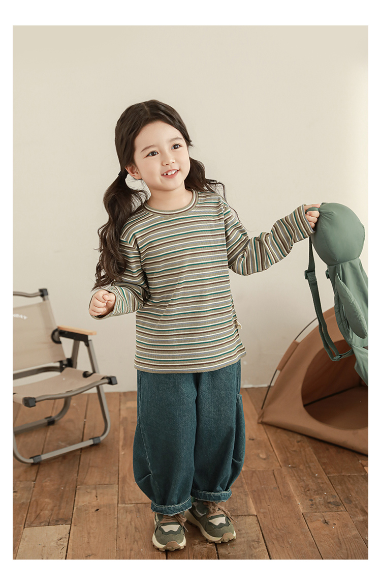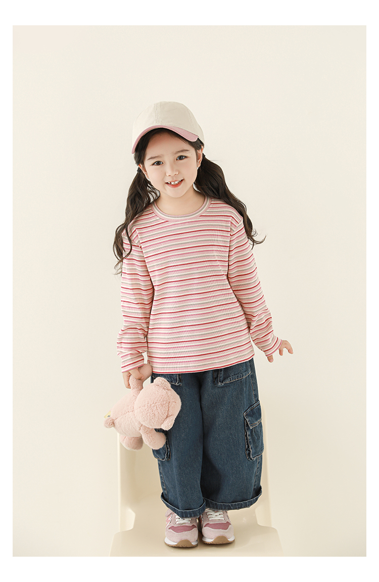 Wurib 소녀의 신선한 핀스트라이프 크루 넥 풀오버 티셔츠 봄 피부 친화적 인 소프트 니트 캐주얼 탑 트렌디스토어 가기