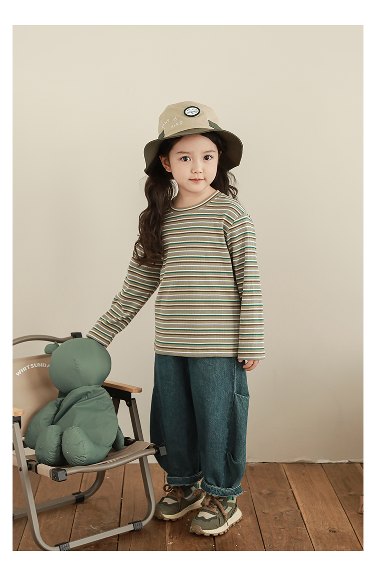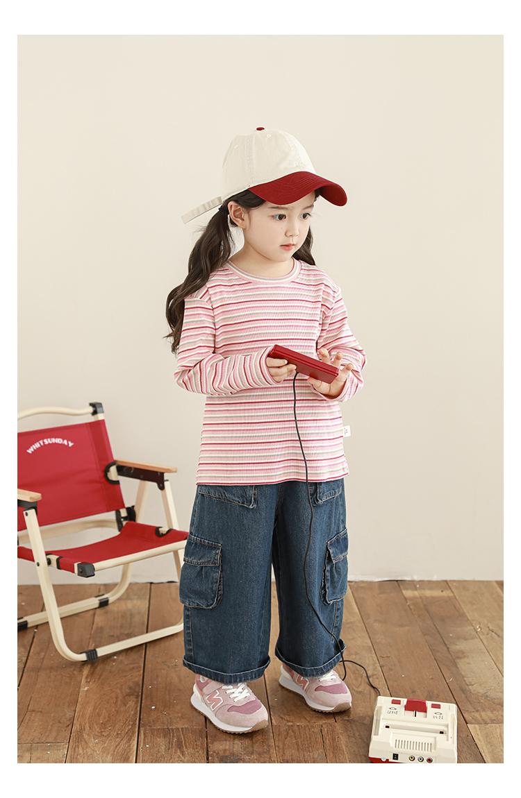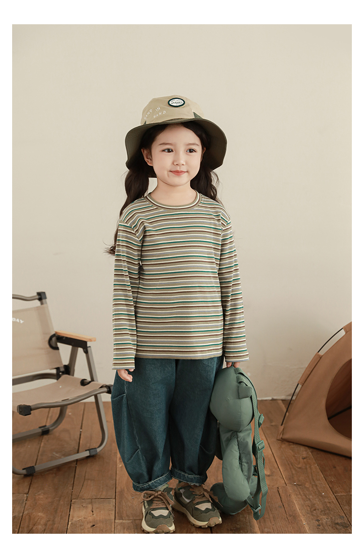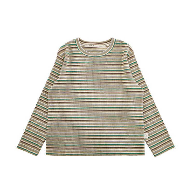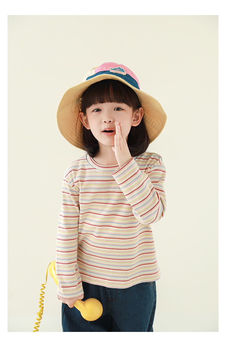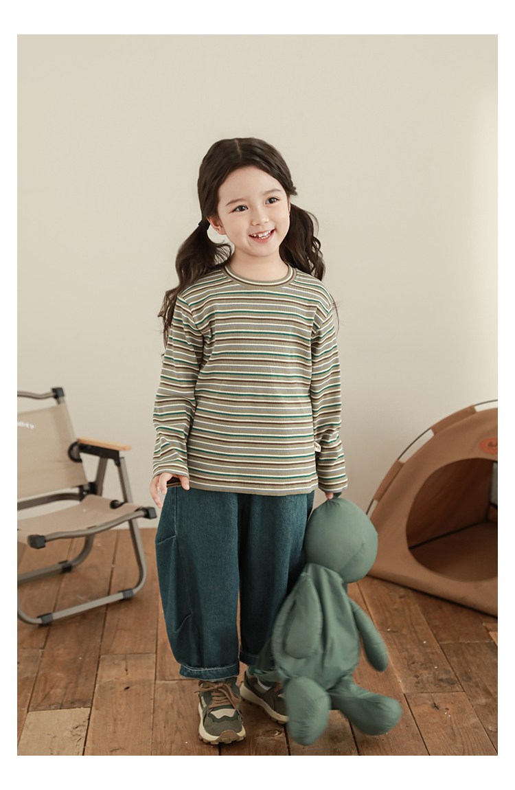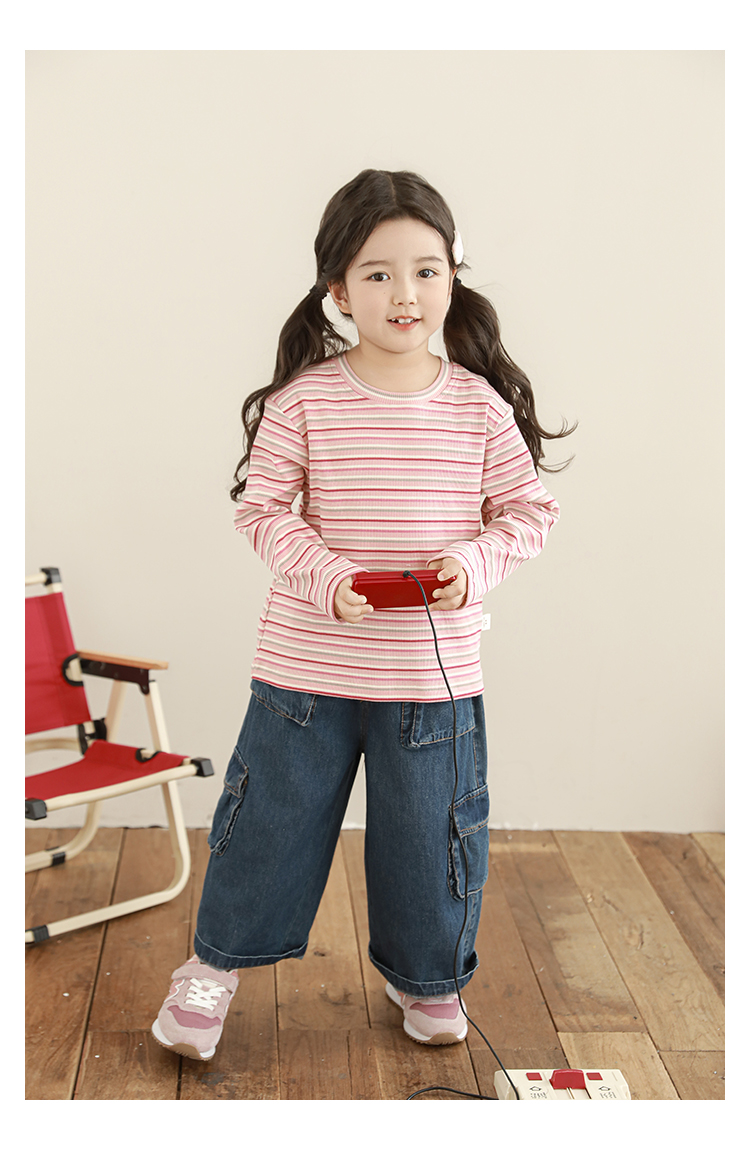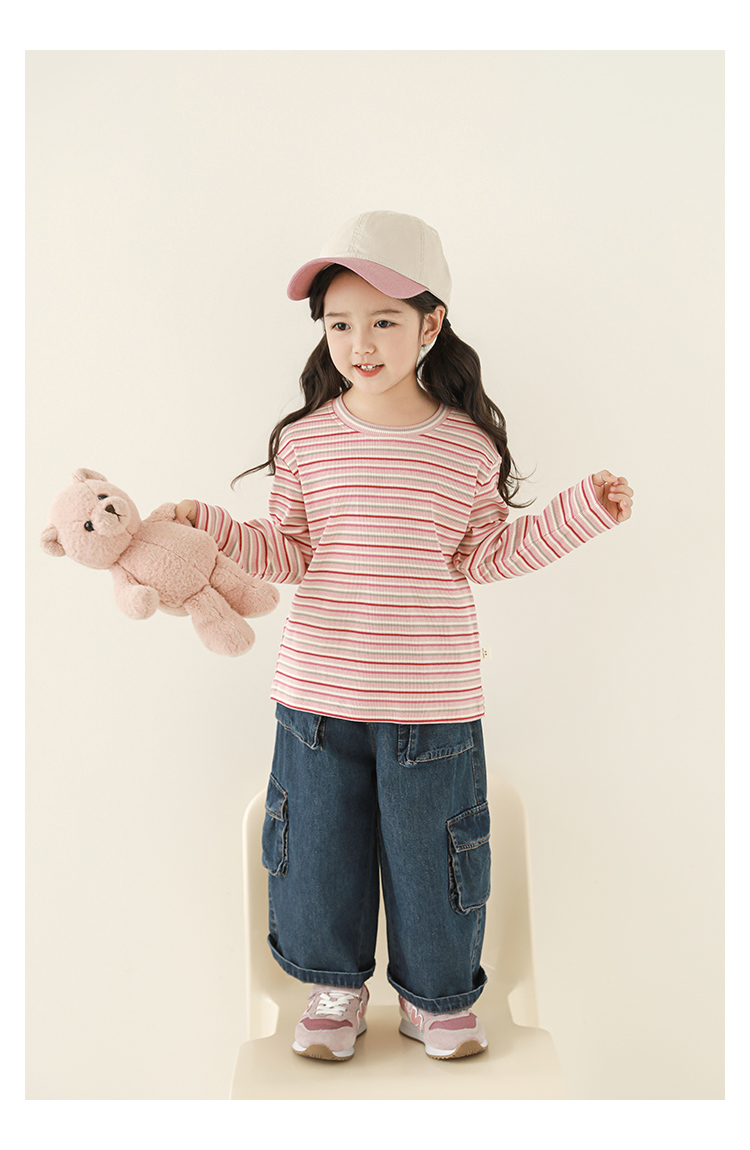 Wurib 소녀의 신선한 핀스트라이프 크루 넥 풀오버 티셔츠 봄 피부 친화적 인 소프트 니트 캐주얼 탑 트렌디스토어 가기