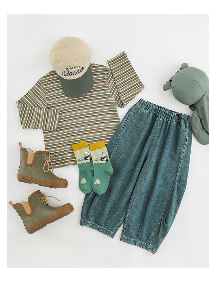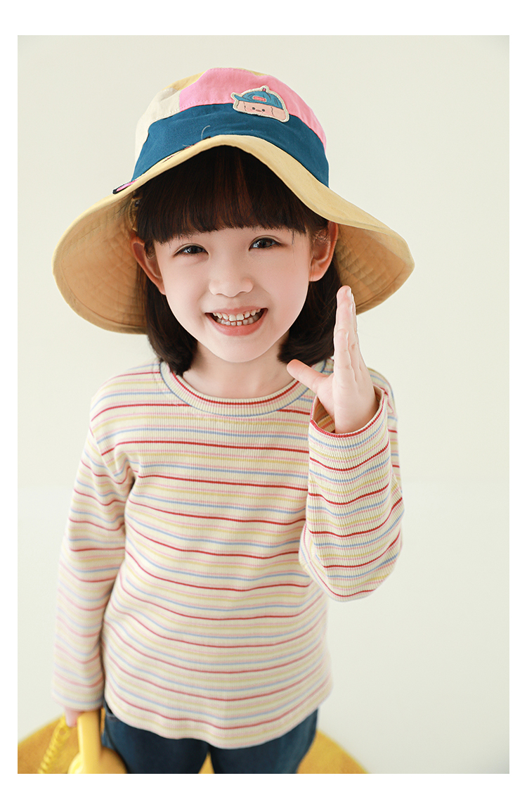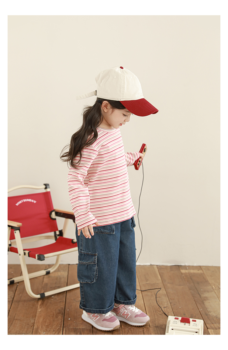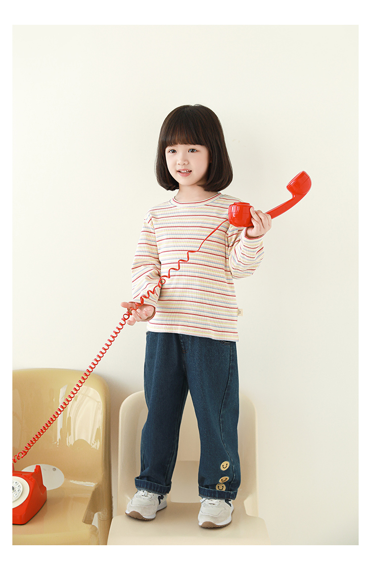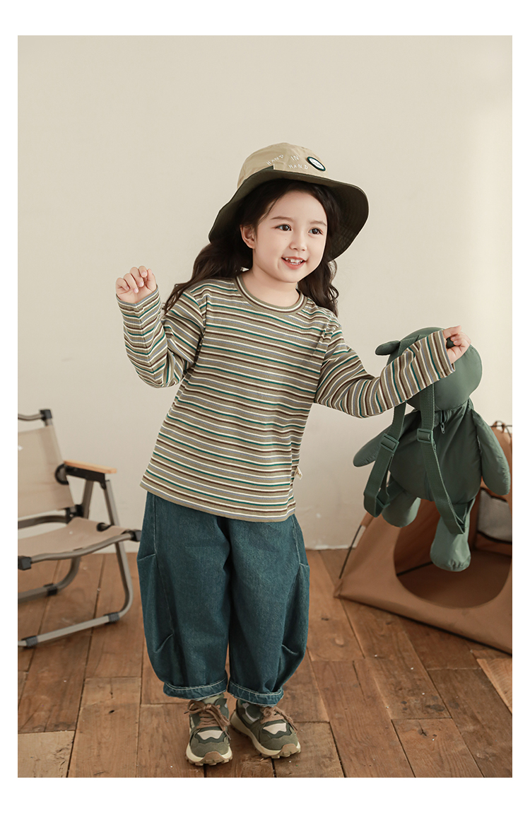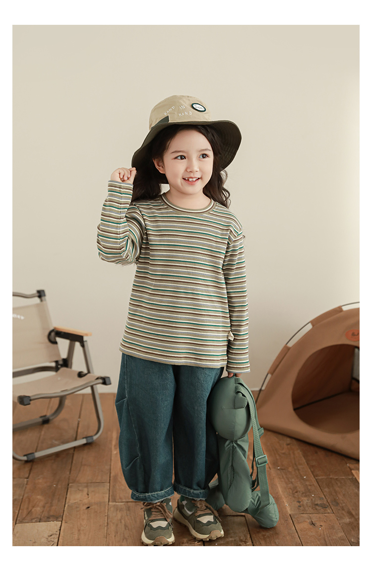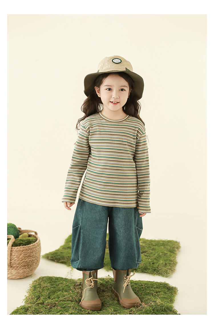 Wurib 소녀의 신선한 핀스트라이프 크루 넥 풀오버 티셔츠 봄 피부 친화적 인 소프트 니트 캐주얼 탑 트렌디스토어 가기