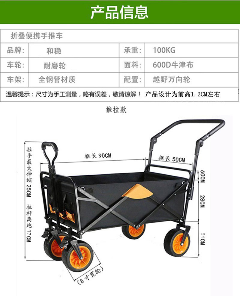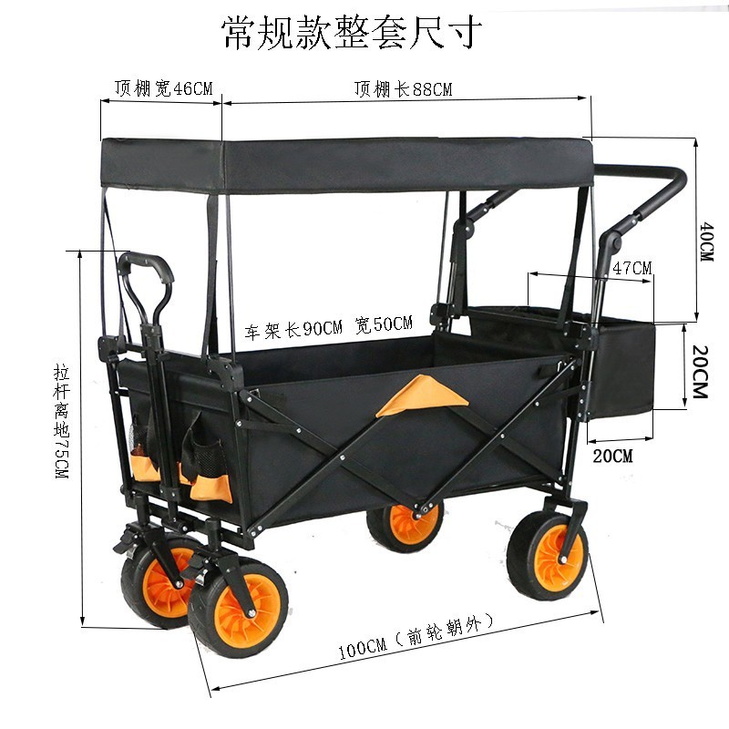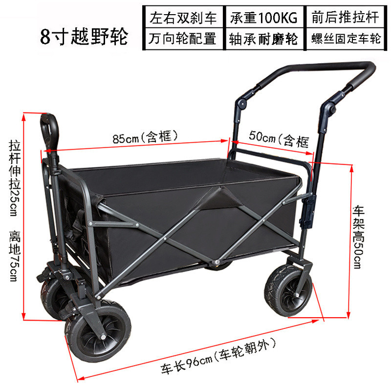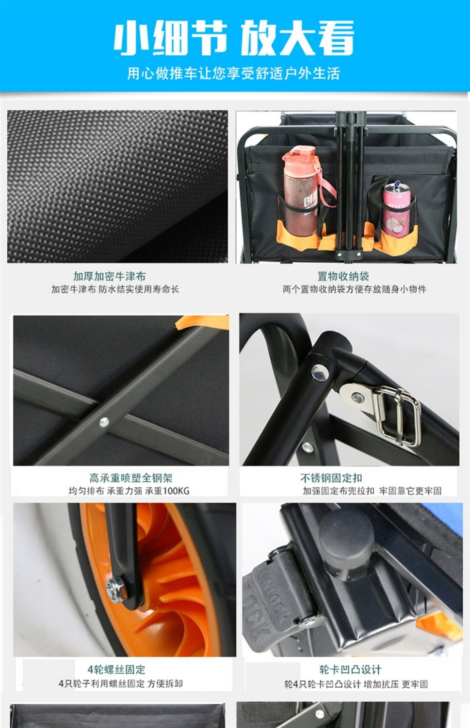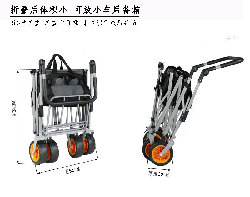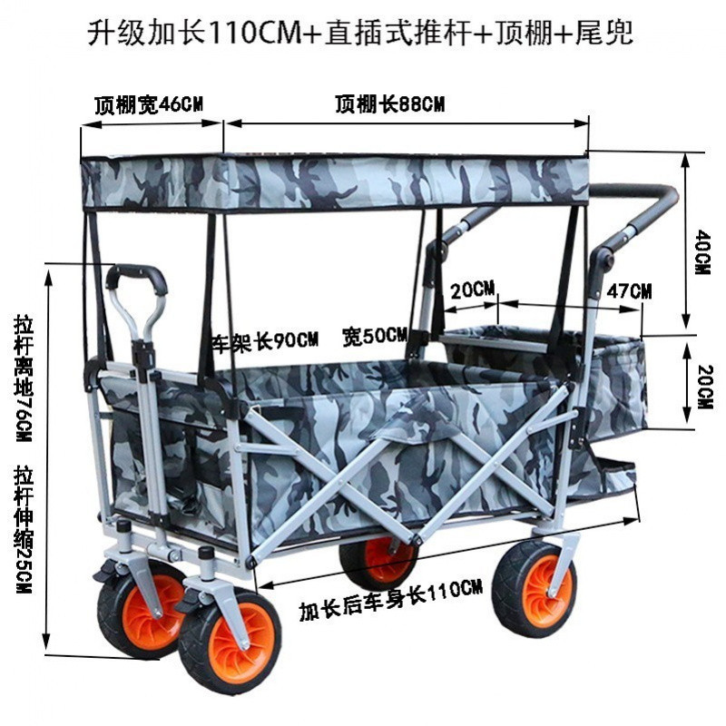 X3R 야외 캠프 캠퍼 푸시 풀 이중 목적 접이식 풀 로드 캠핑 피크닉 트레일러