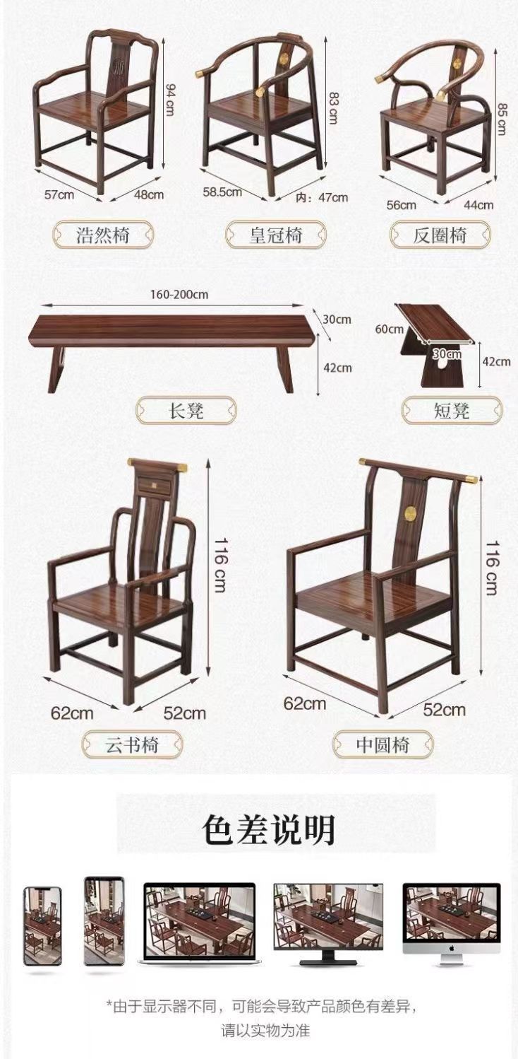 • 상서로운 의자 1개 + 벤치 1개 + 짧은 의자 2개 + 차 캐비닛