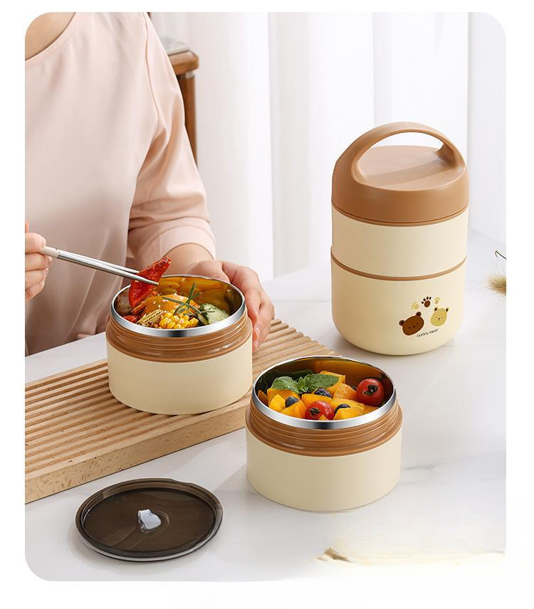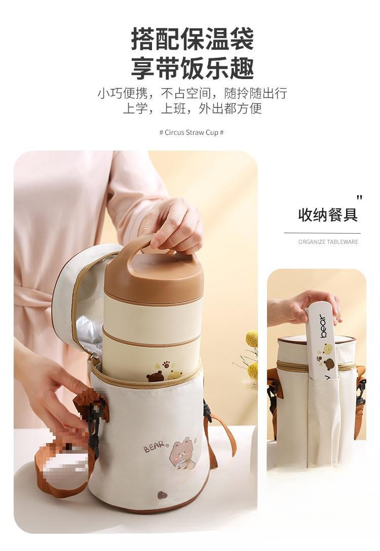 • [304 손잡이 도시락] 더블 레이어 + 식기 + 곰 보온 가방