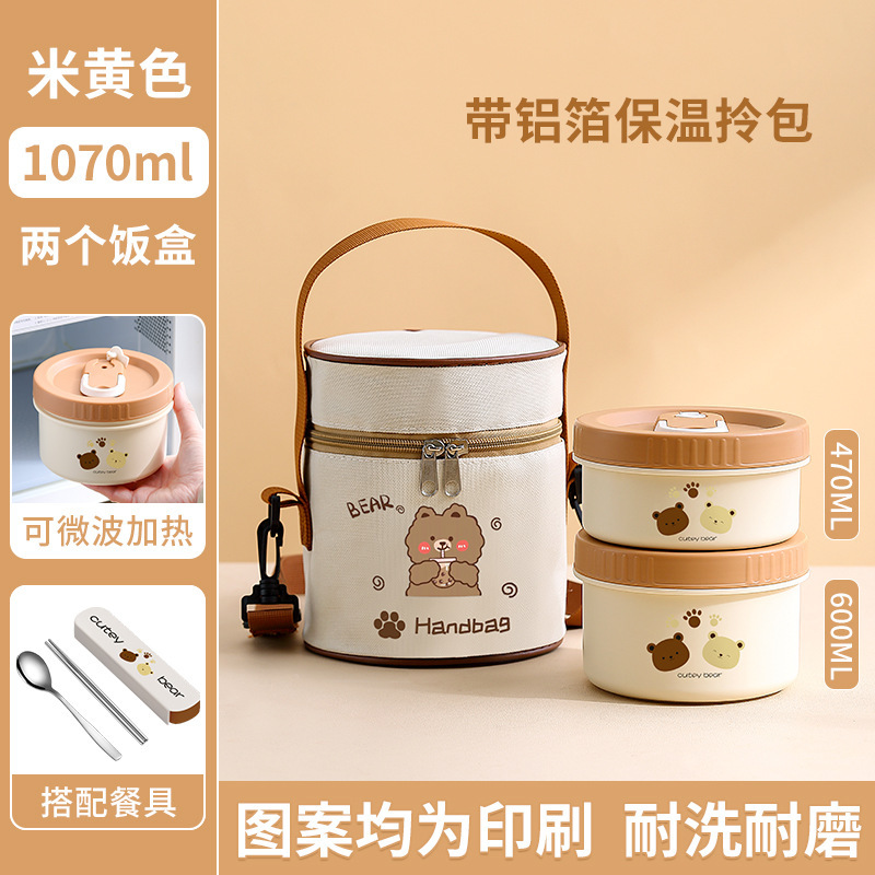 • [곰 칸막이는 가열 가능] 1070ml 2개 + 식기 + 보온백