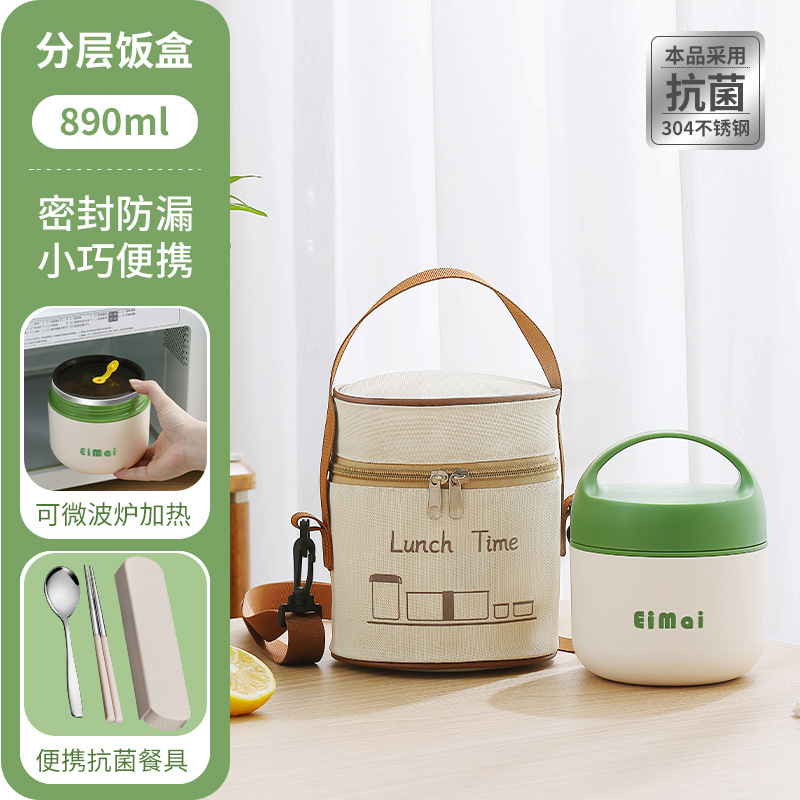 • [304 손잡이 도시락] 그린 더블 레이어 + 식기 + 일본식 보온 가방