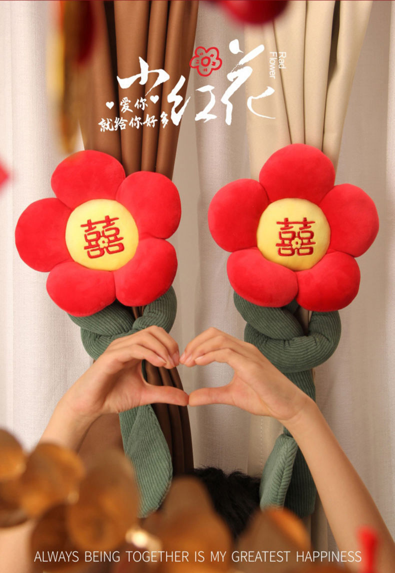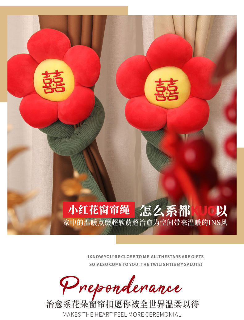 웨딩 커튼 스트랩 작은 붉은 꽃 스트랩 로프 페어 꽃의 중국 축제 장식 교수형 장식품 남성 웨딩 용품