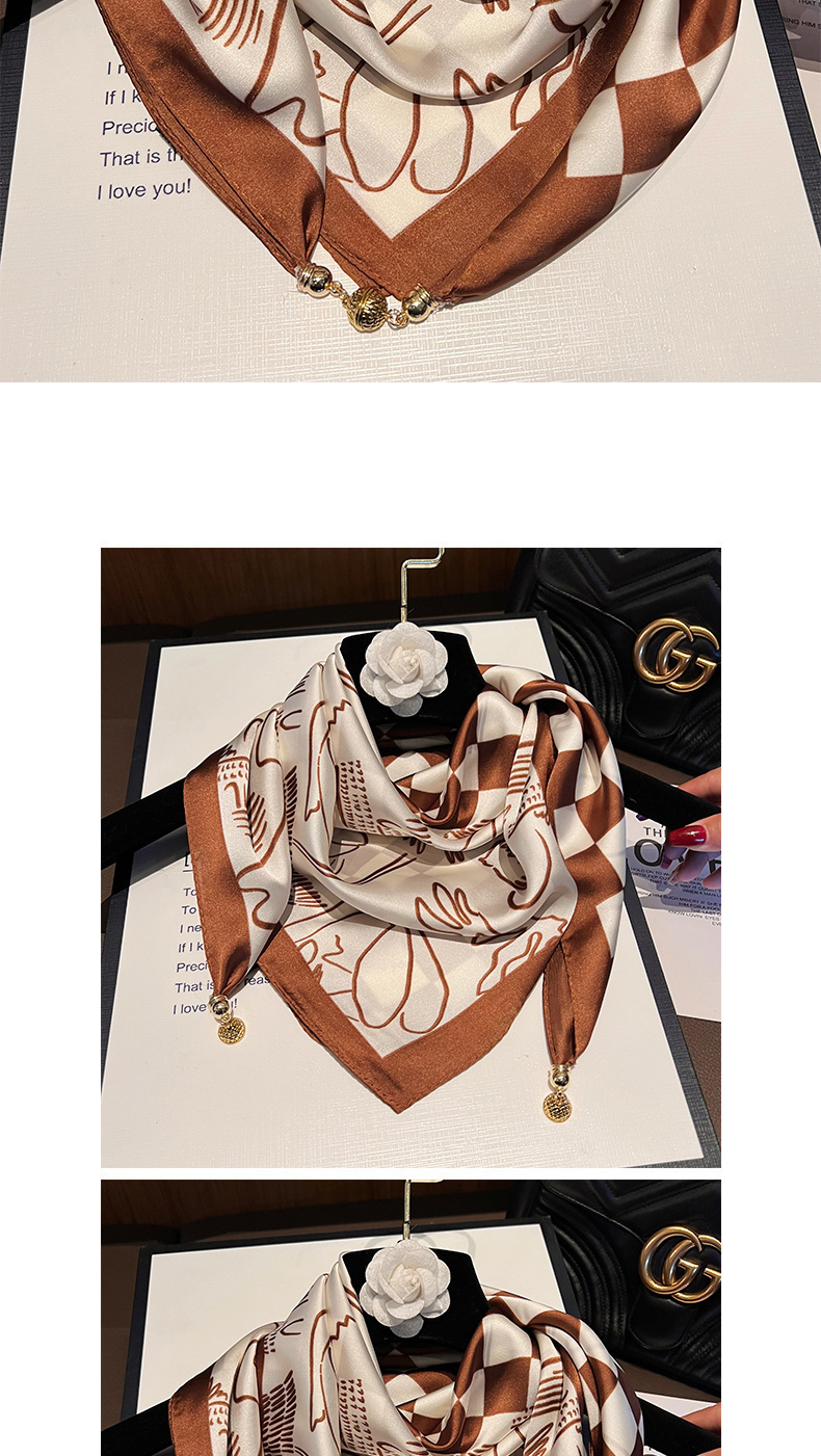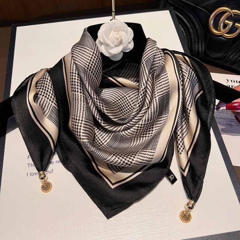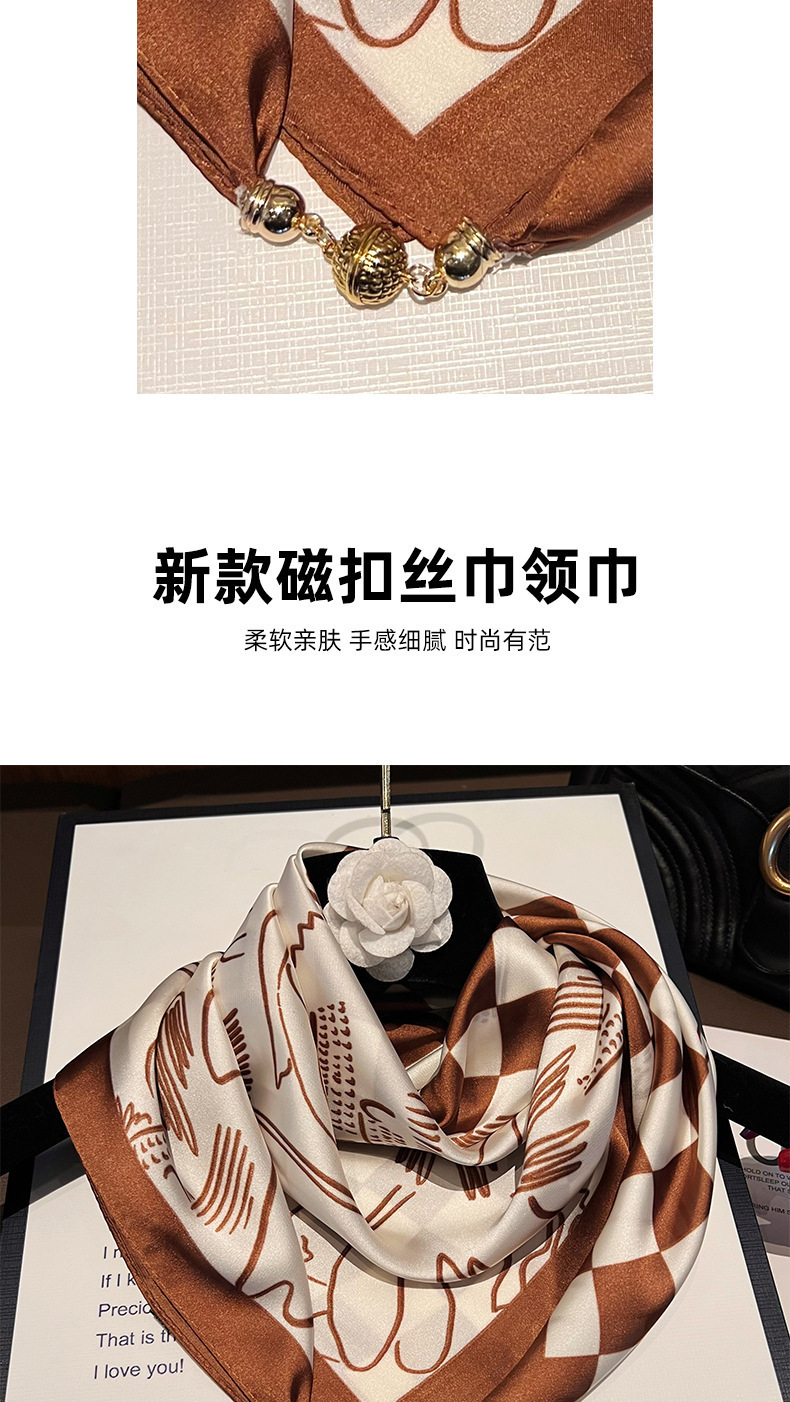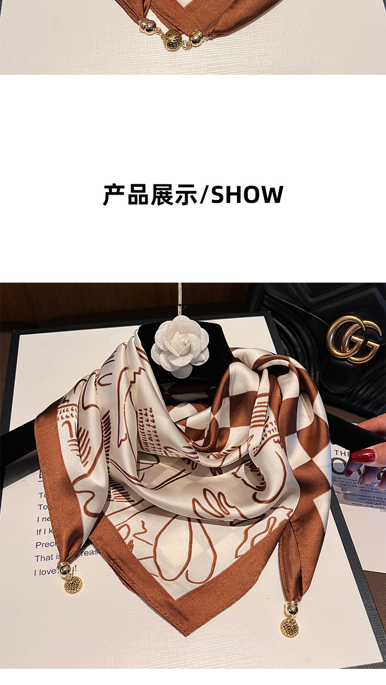 실크 스카프 여성의 봄과 가을 2024 새로운 자기 버클 새틴 스퀘어 스카프 스카프 고급 장식 삼각형 스카프 목 보호스토어 가기