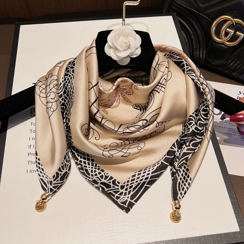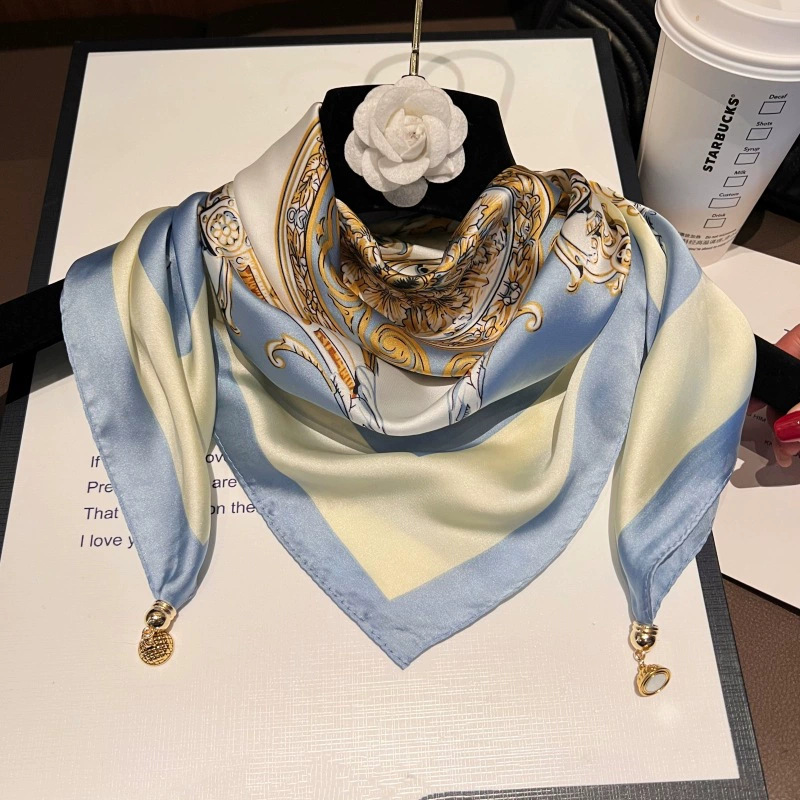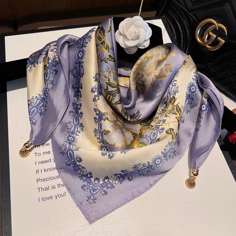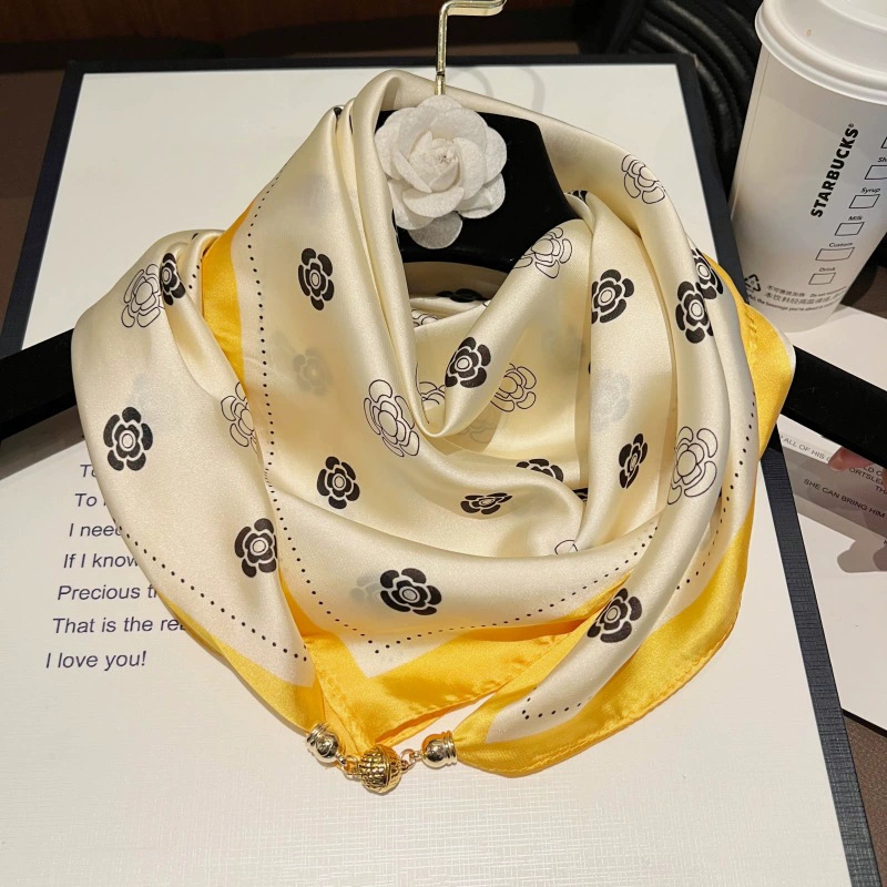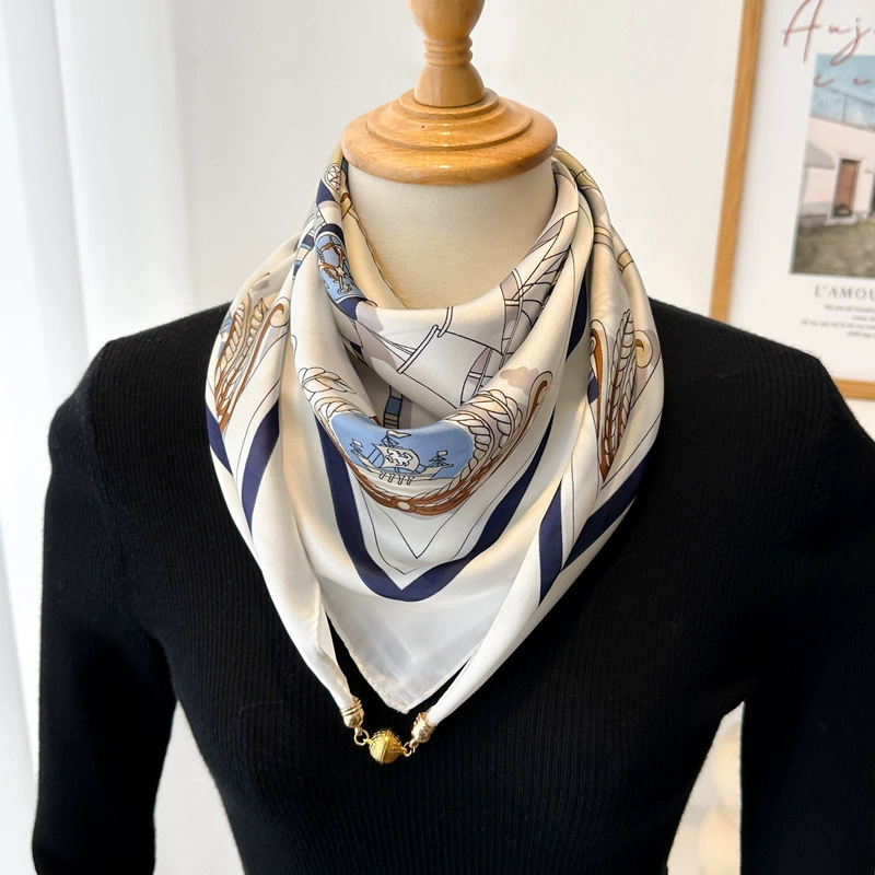 실크 스카프 여성의 봄과 가을 2024 새로운 자기 버클 새틴 스퀘어 스카프 스카프 고급 장식 삼각형 스카프 목 보호