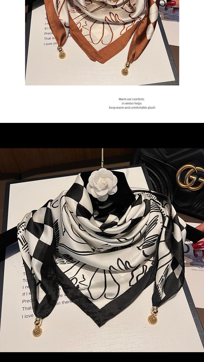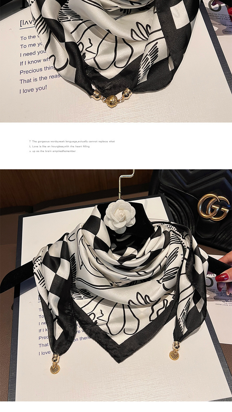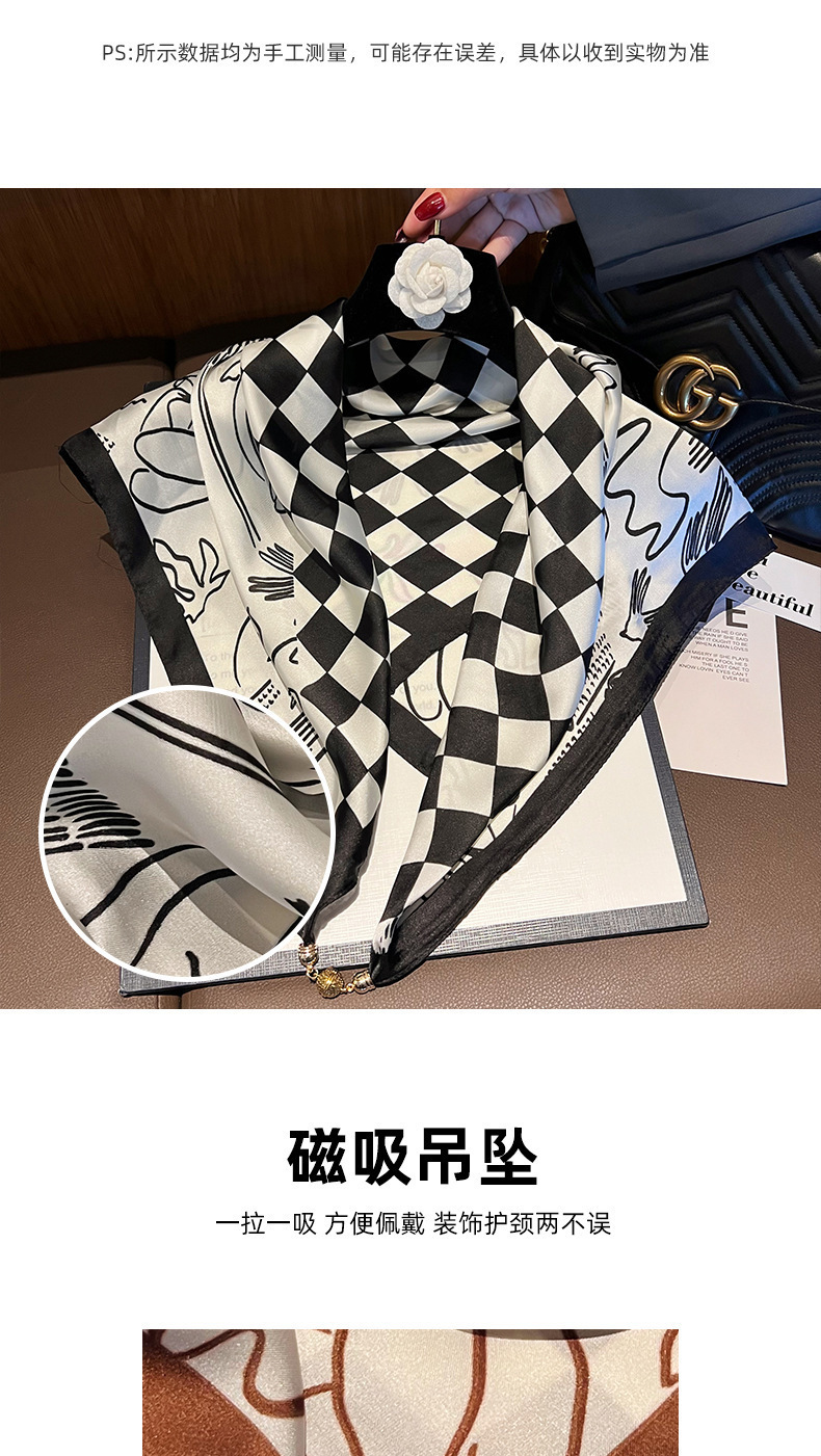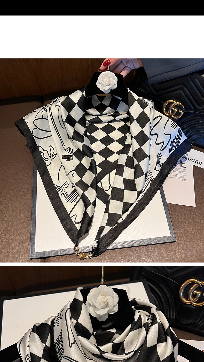 • 흑백 복고풍 체크--[자석 새틴 스퀘어 스카프]