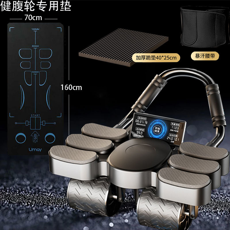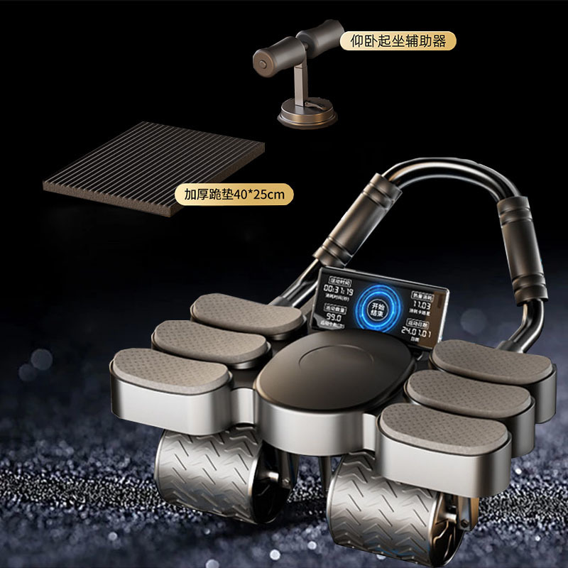 새로운 RrJ2024 4 륜 6 팔꿈치 지원 복부 휠 자동 리바운드 운동 복부 근육 지방 감소 홈 운동 피트니스