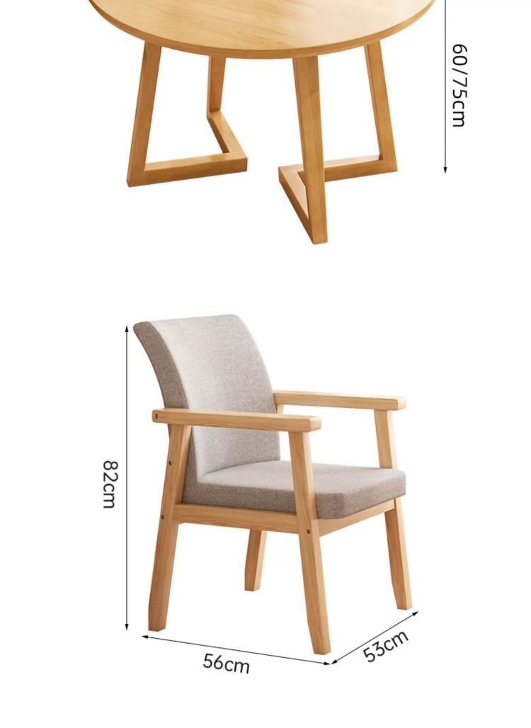 • [테이블 1개, 의자 4개] 원목색상 120*120*75cm