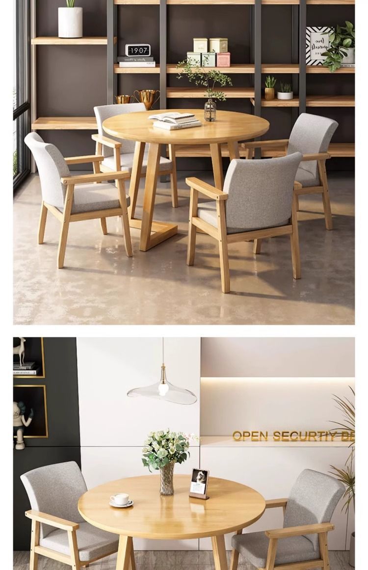 단단한 나무 작은 라운드 테이블 비즈니스 협상 리셉션 테이블 간단한 홈 캐주얼 커피 우유 차 가게 식탁 및 의자 조합스토어 가기