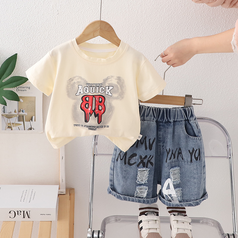 어린이 여름 세트 아기 레저 편지 반팔 투피스 세트 소년 여름 원피스 1-3 년 된 원피스 헤어스토어 가기
