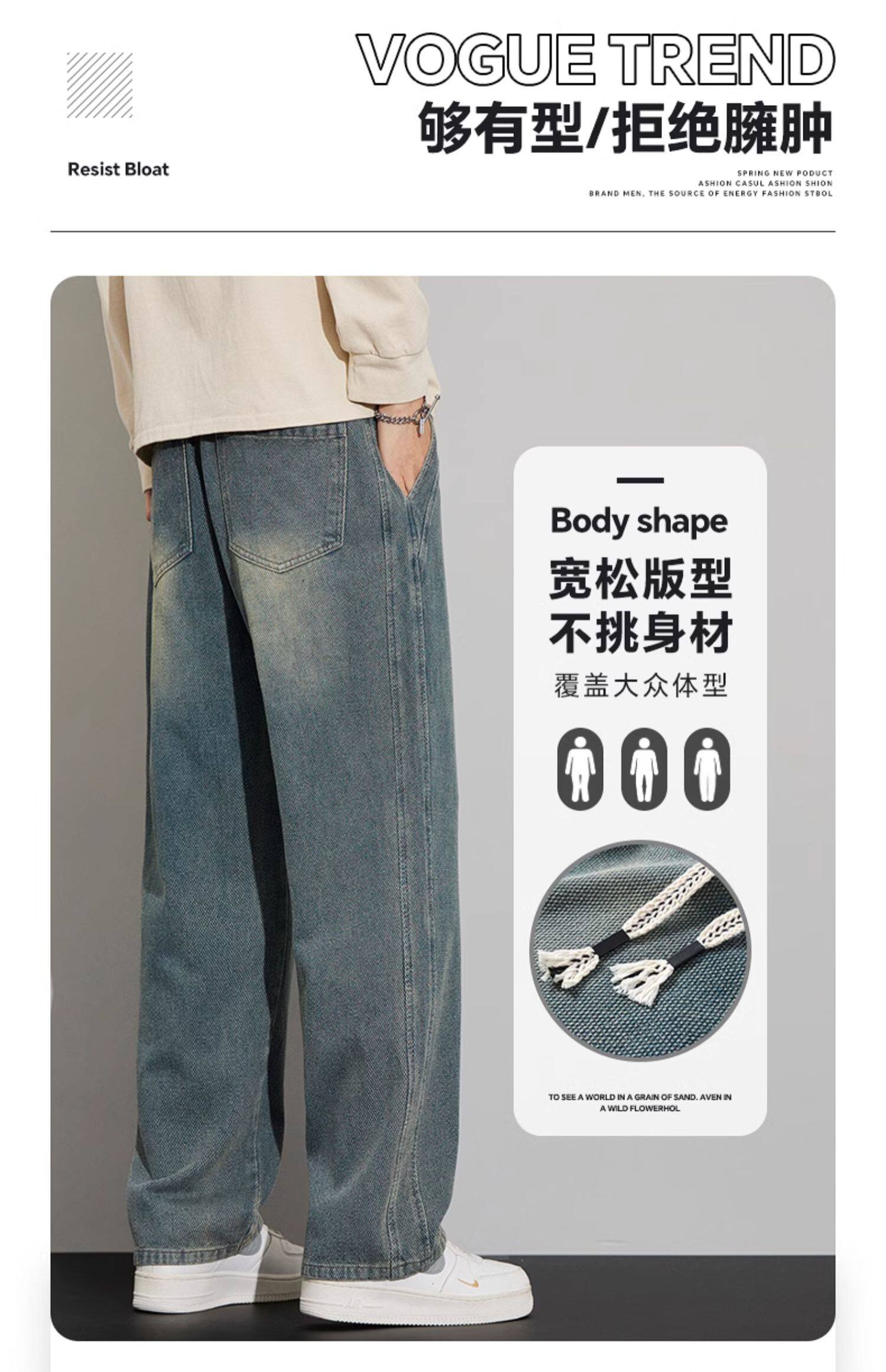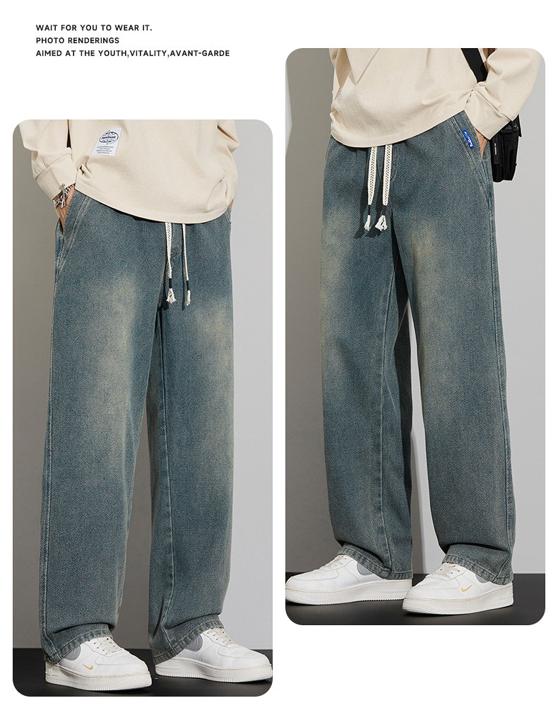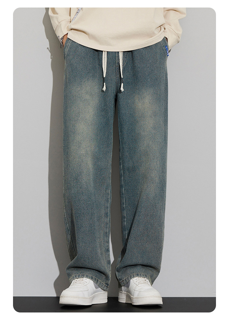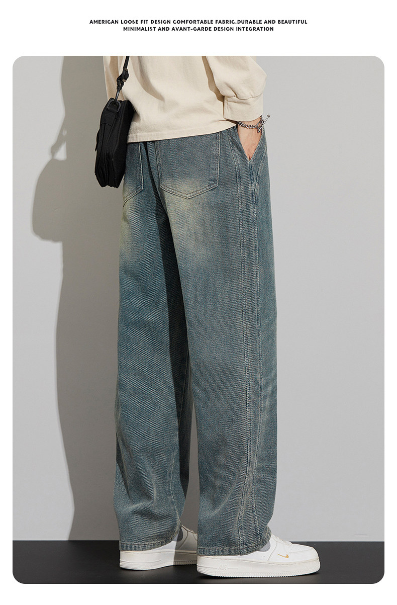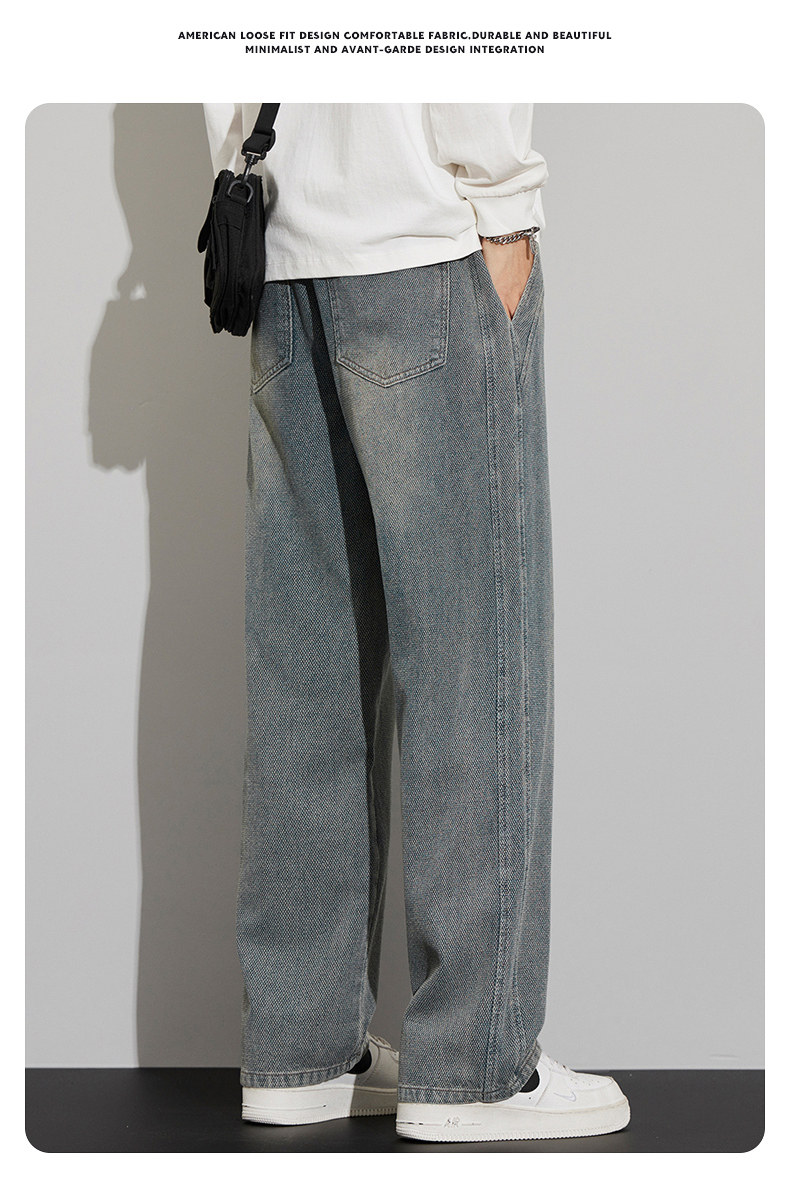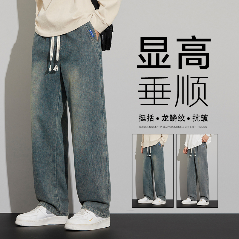 긴 규모 패턴 청바지 남성용 루즈 스트레이트 2025 새로운 가을 패션 브랜드 복고풍 캐주얼 와이드 레그 팬츠스토어 가기