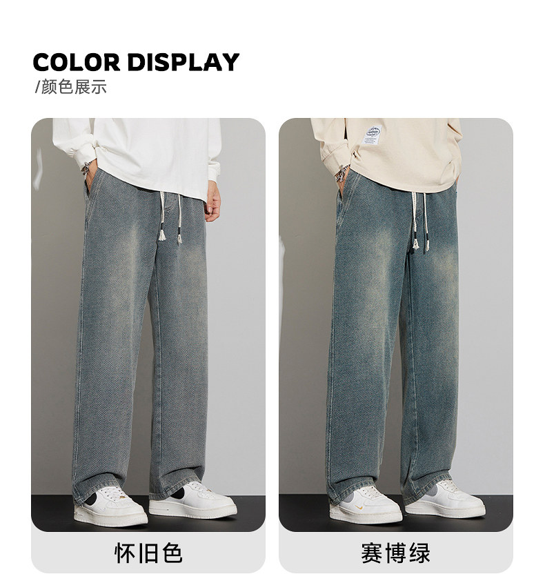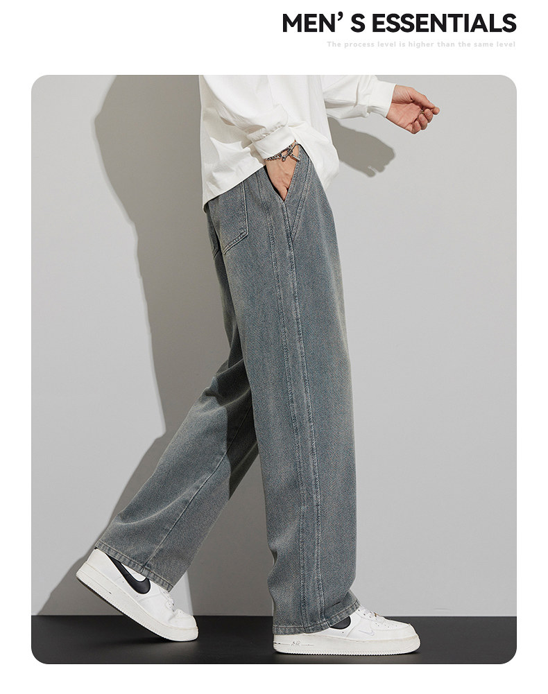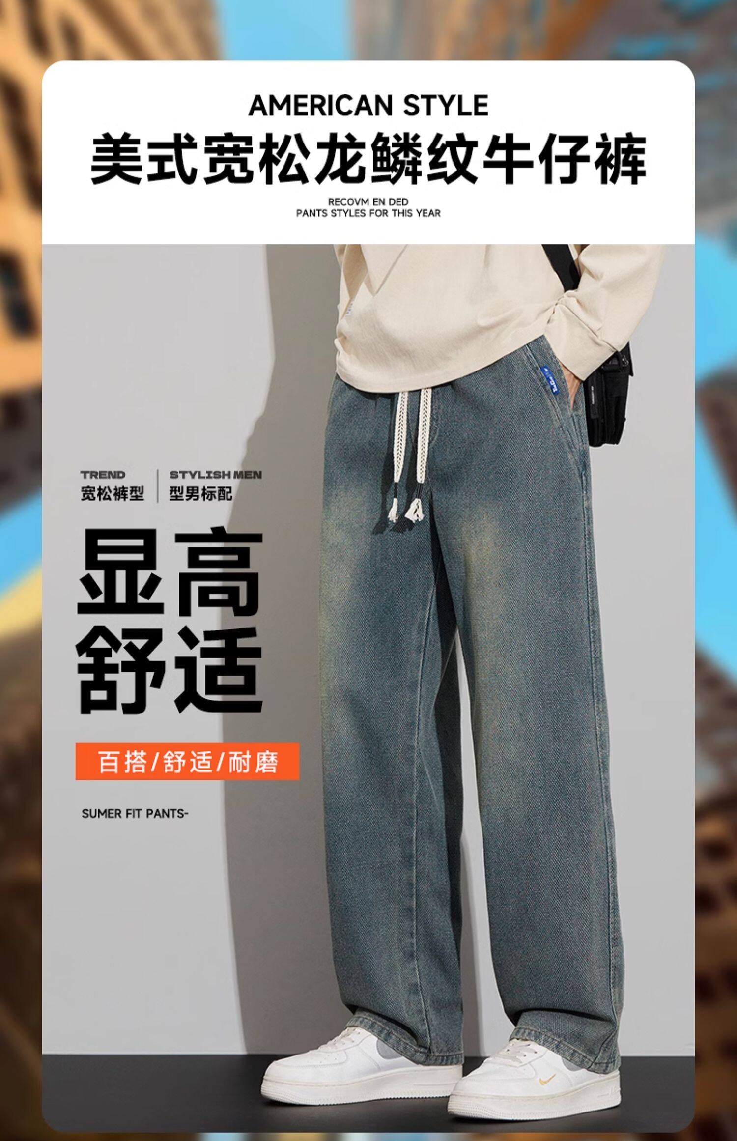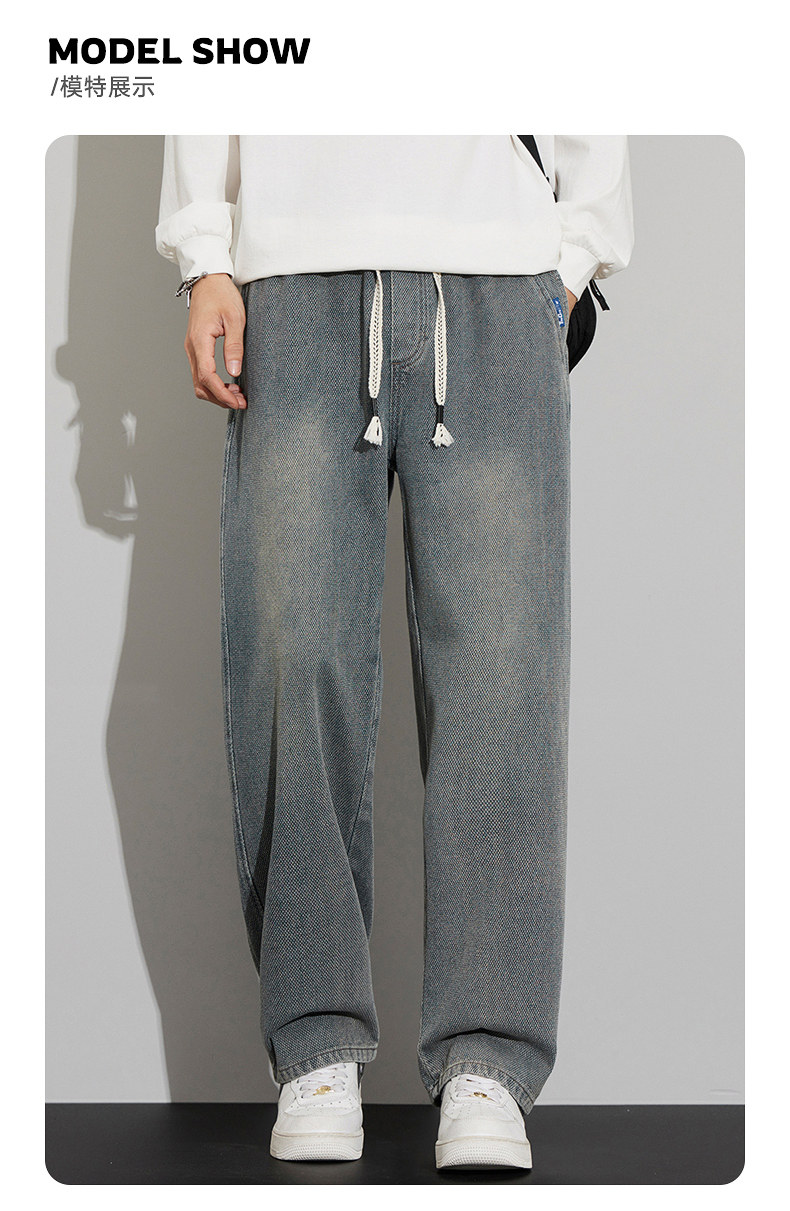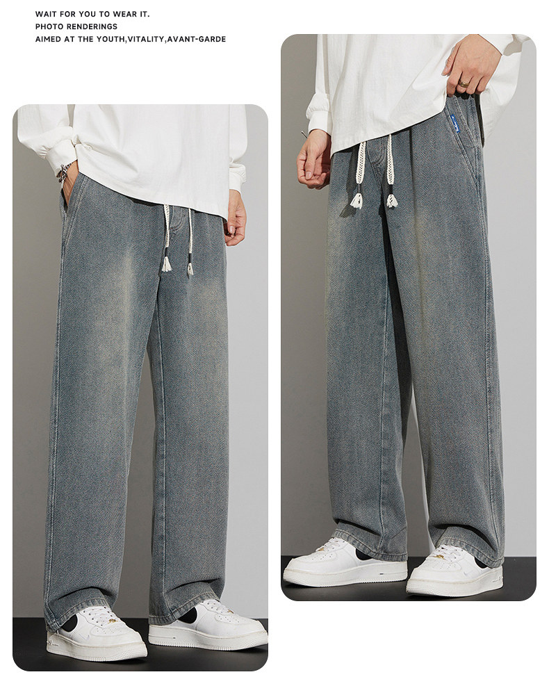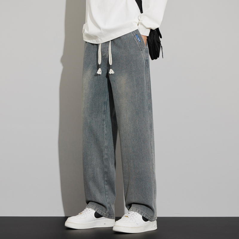 긴 규모 패턴 청바지 남성용 루즈 스트레이트 2025 새로운 가을 패션 브랜드 복고풍 캐주얼 와이드 레그 팬츠스토어 가기