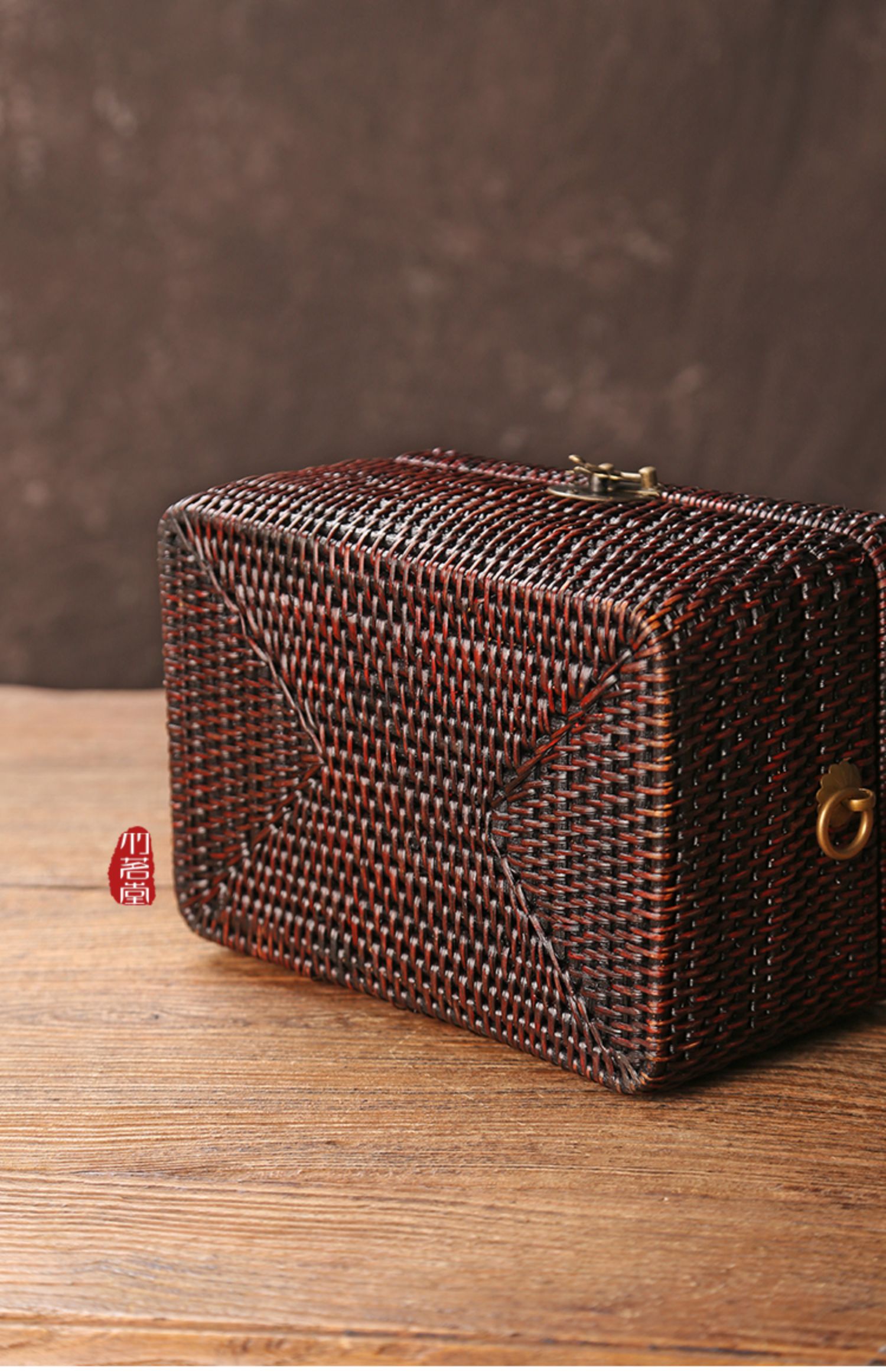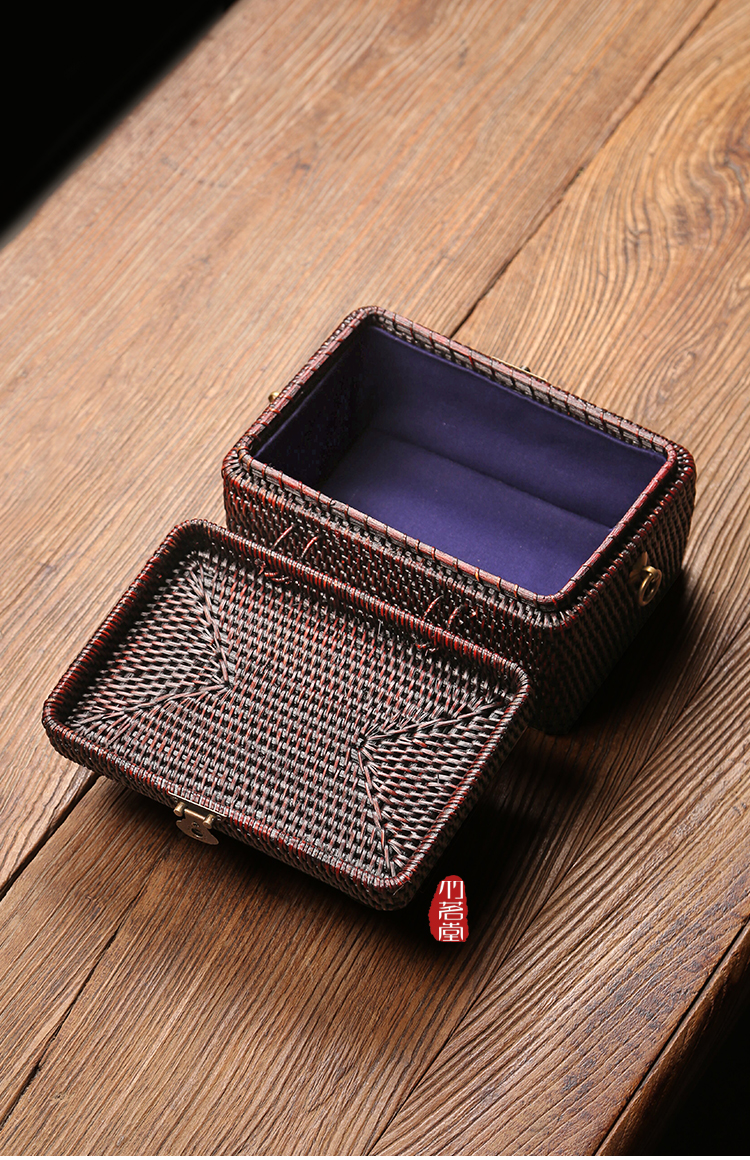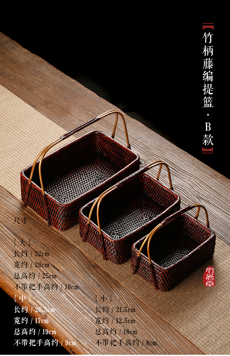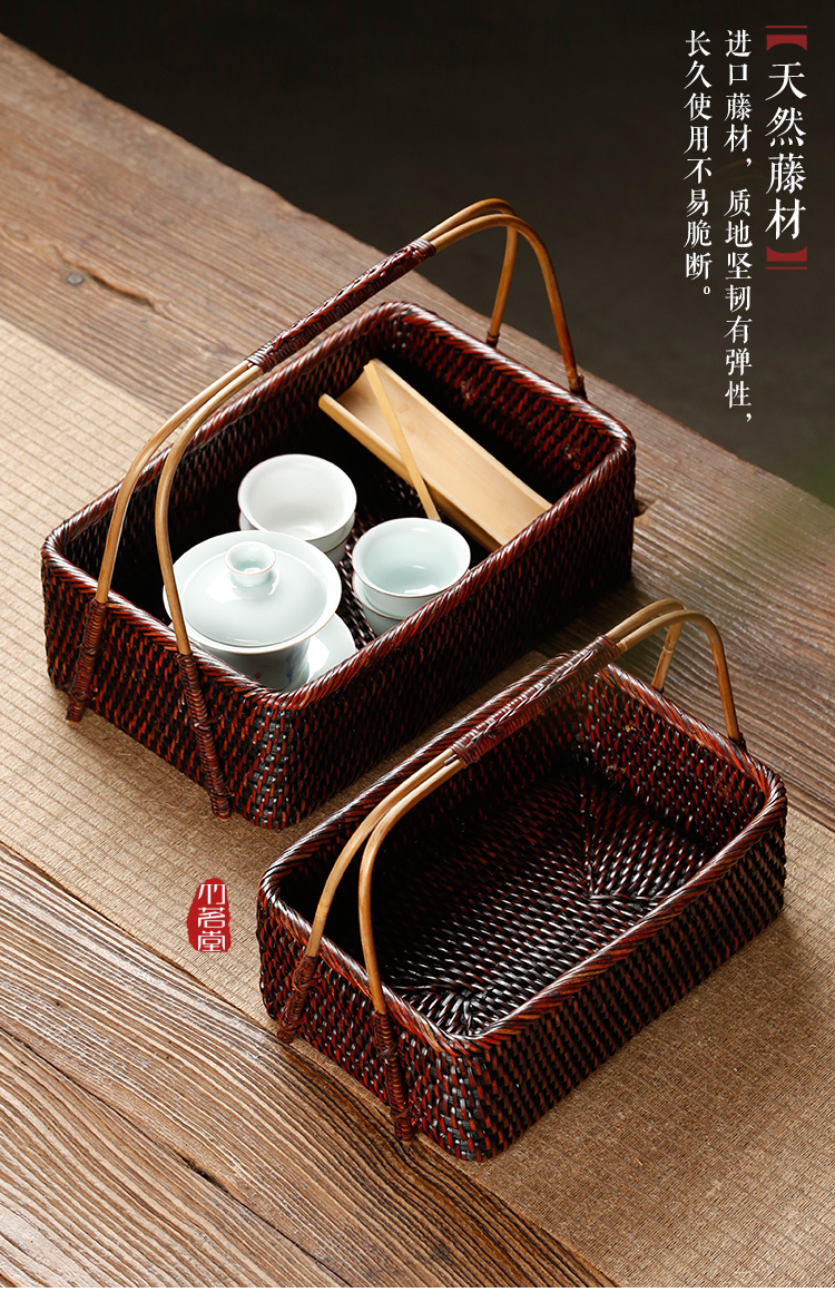 · 뚜껑이있는 레트로 등나무 보관 상자 휴대용 보관 수하물 가정용 일본식 보관 바구니스토어 가기