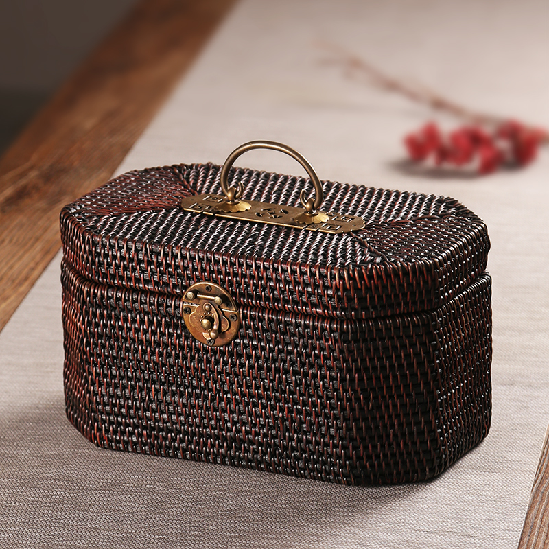 · 뚜껑이있는 레트로 등나무 보관 상자 휴대용 보관 수하물 가정용 일본식 보관 바구니