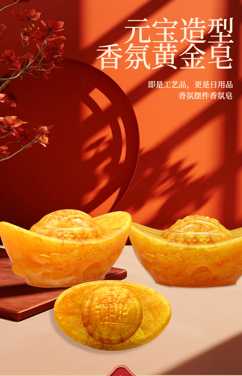 손을 씻고 목욕하는 금 주괴 비누 올해 새해 상품 손 선물 좋은 의미 에센셜 오일 향수 비누와 함께 장식품스토어 가기