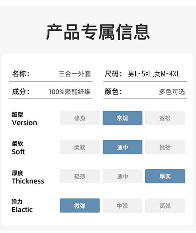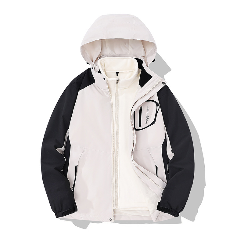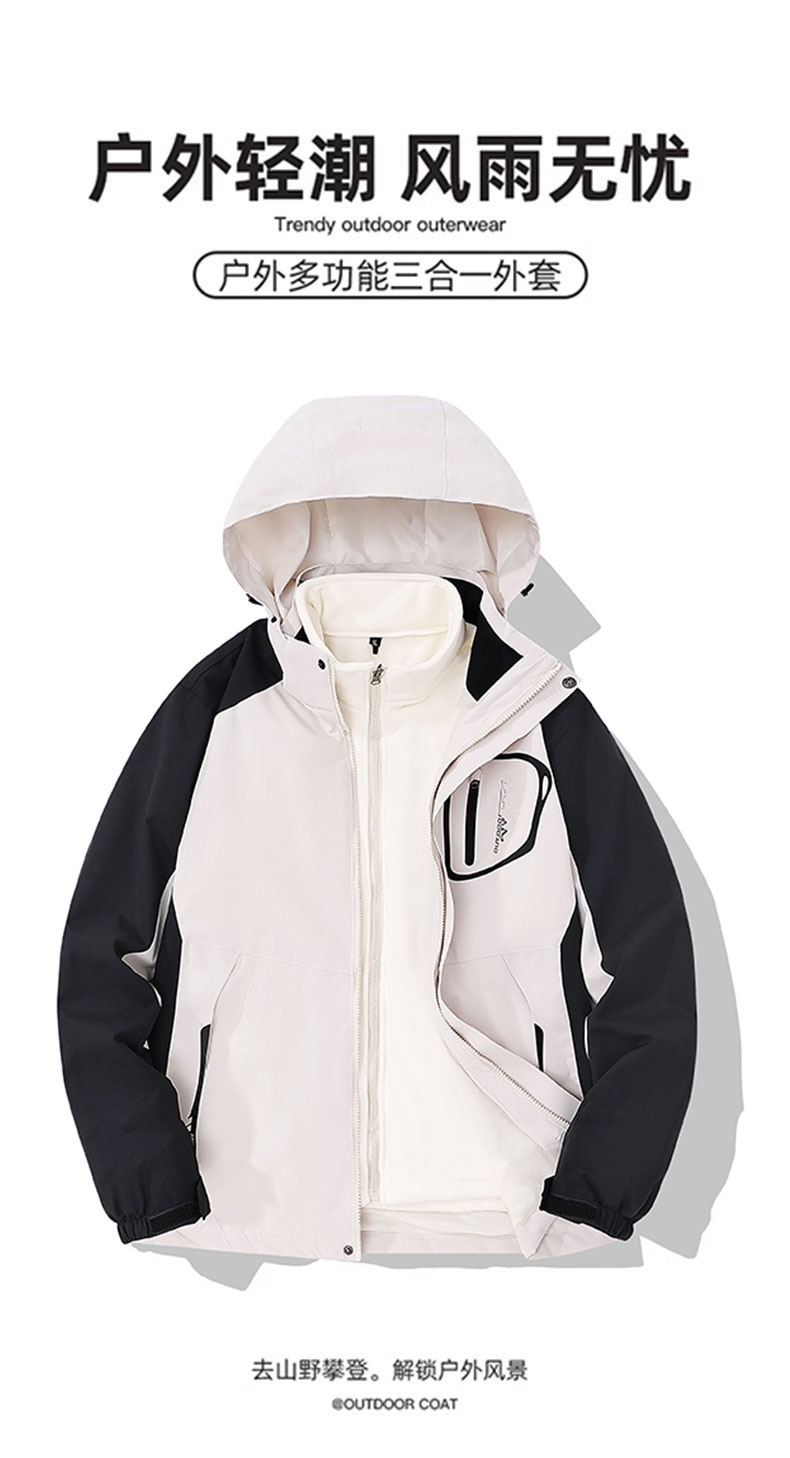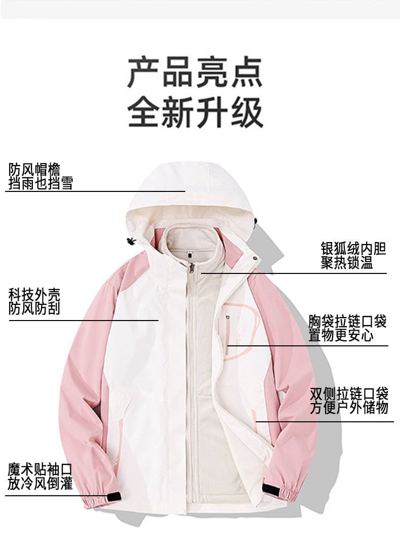 2024 가을/겨울 충전 의류 남성 3 대 1 2 피스 재킷 실버 폭스 벨벳 인쇄 가능한 로고 그룹 의류 하이킹 및 등반스토어 가기