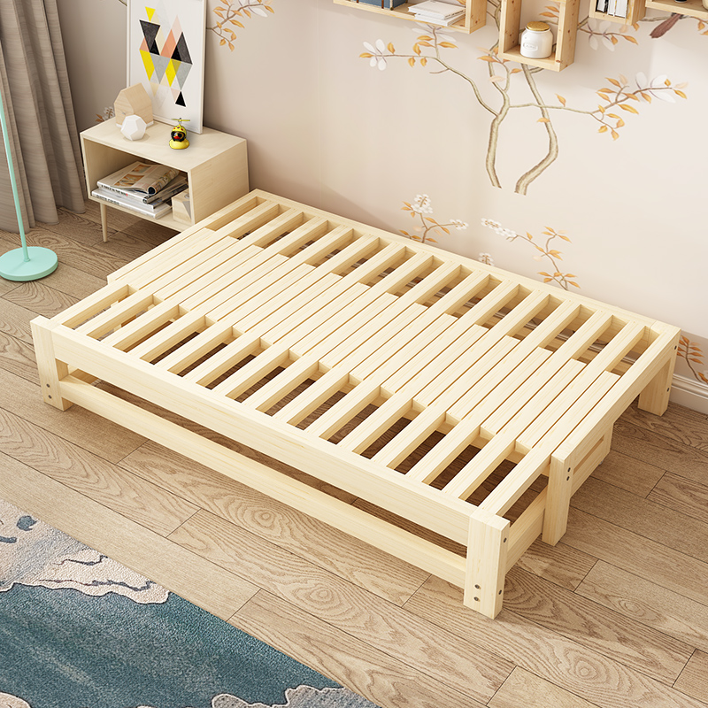 · 텔레스코픽 베드 솔리드 우드 풀 베드 다기능 소파 베드 푸시 풀 작은 아파트 싱글 더블 앉아 및 슬리핑 이중 목적 침대스토어 가기