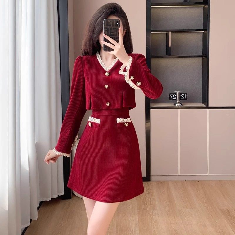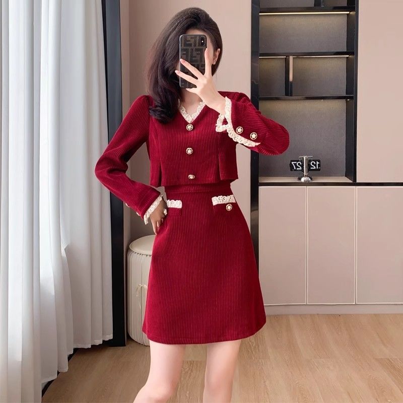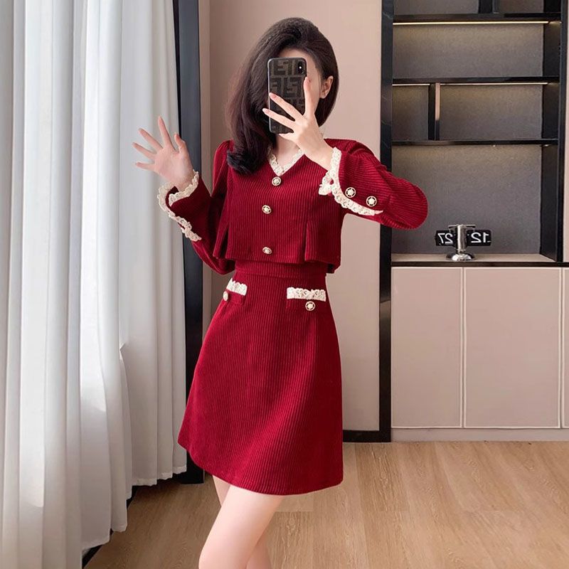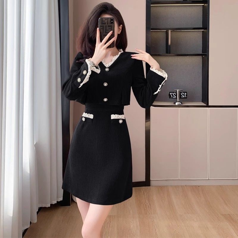 하이 엔드 원피스 봄과 가을 2025 새로운 여성 V 넥 레트로 투피스 스티칭 하이 엔드 스몰 블랙 원피스스토어 가기