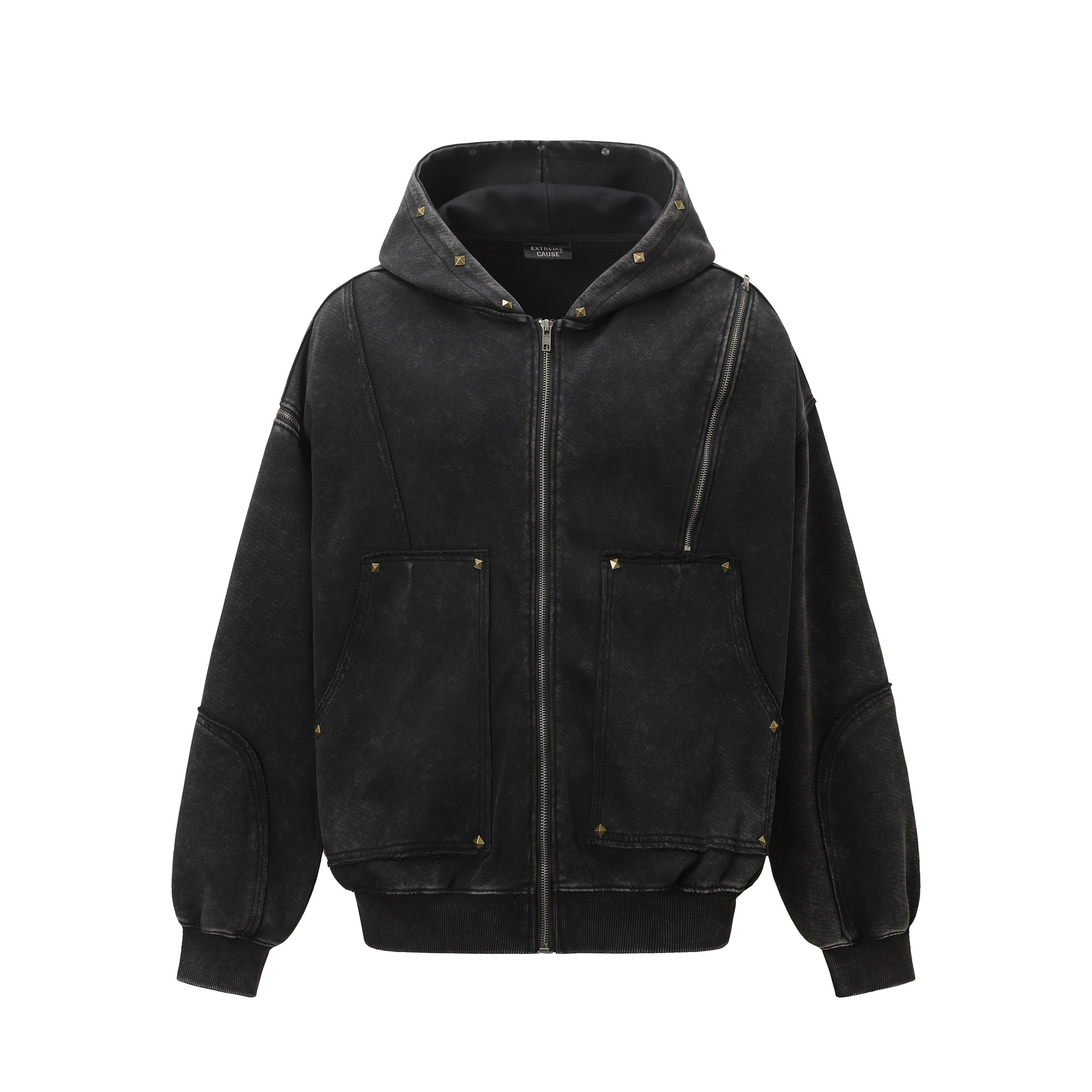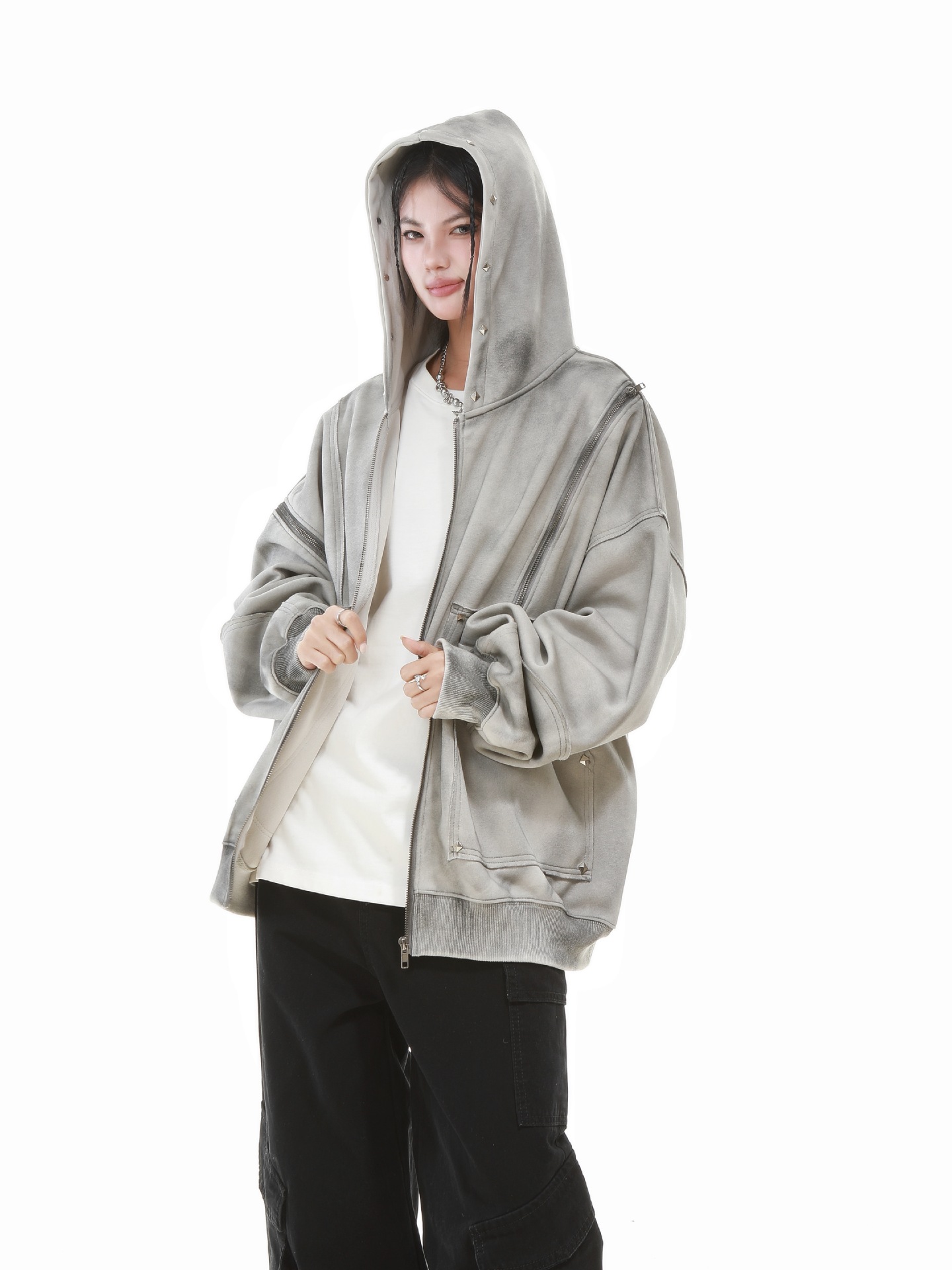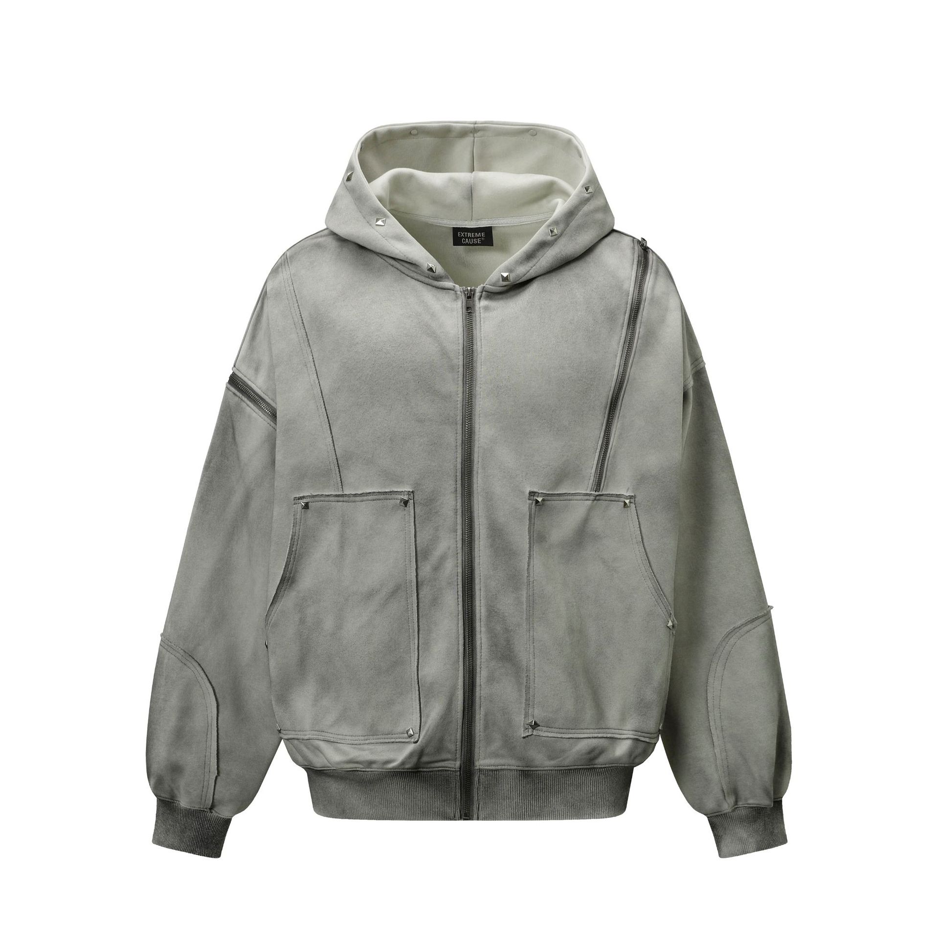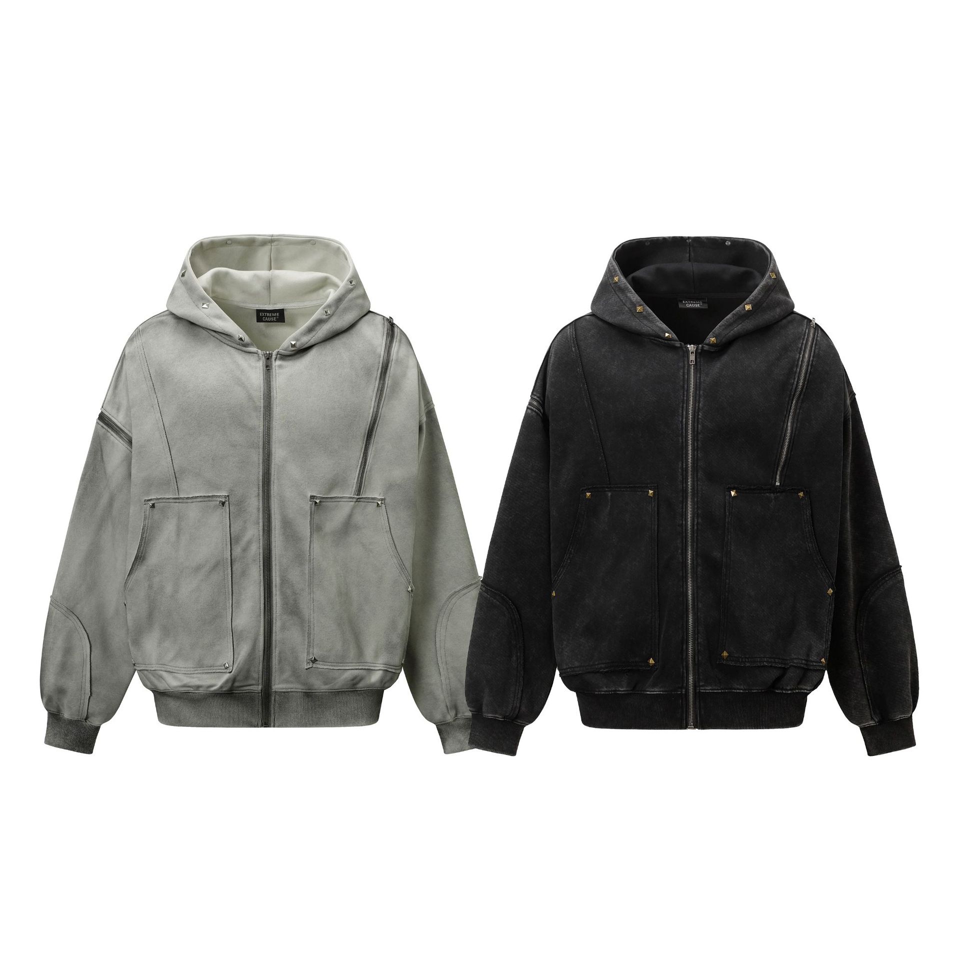 Jiayiku 남성복 2025 가을 신작 황무지 스타일 워시 더러운 염색 후드 재킷 아메리칸 스트리트 지퍼 스웨트 셔츠
