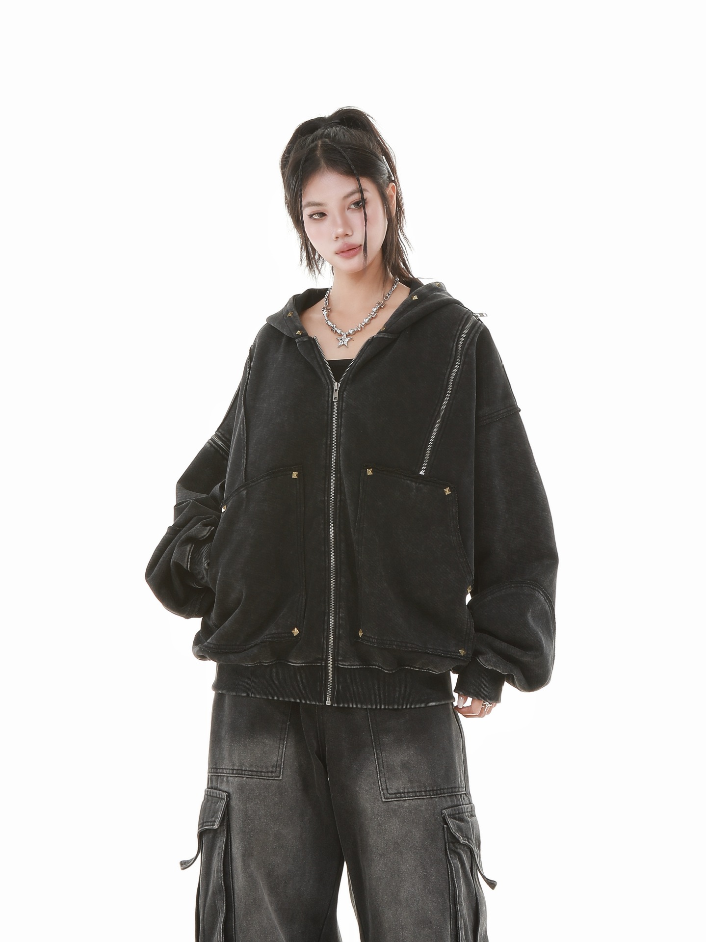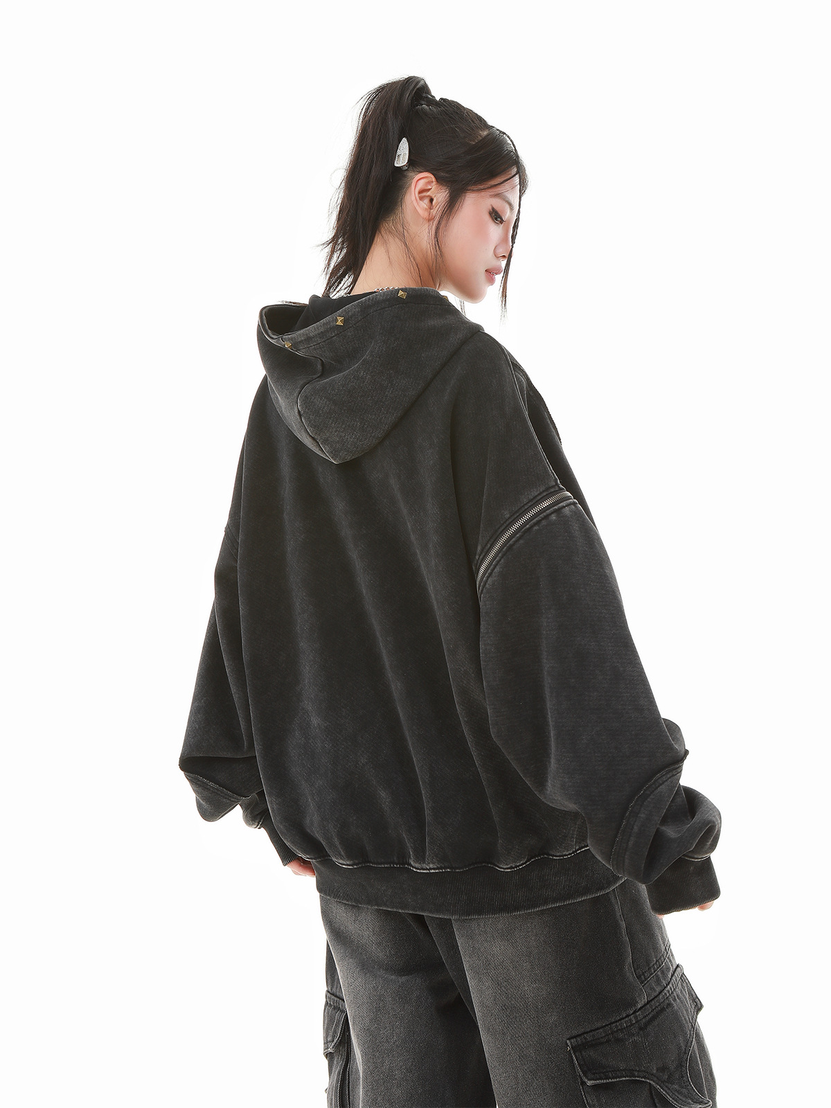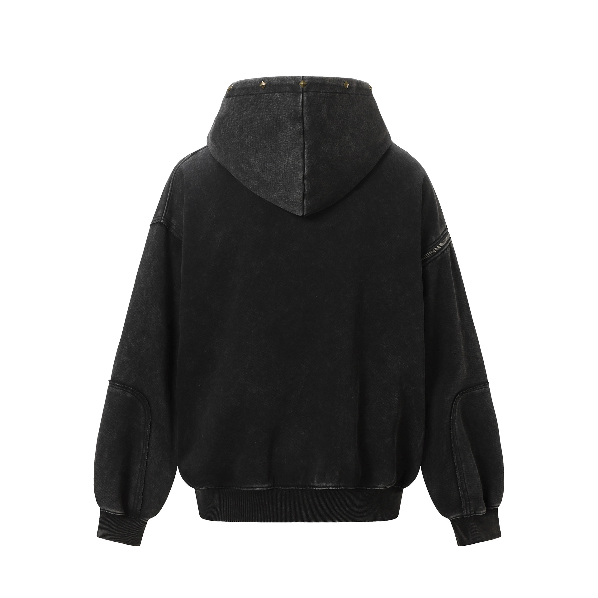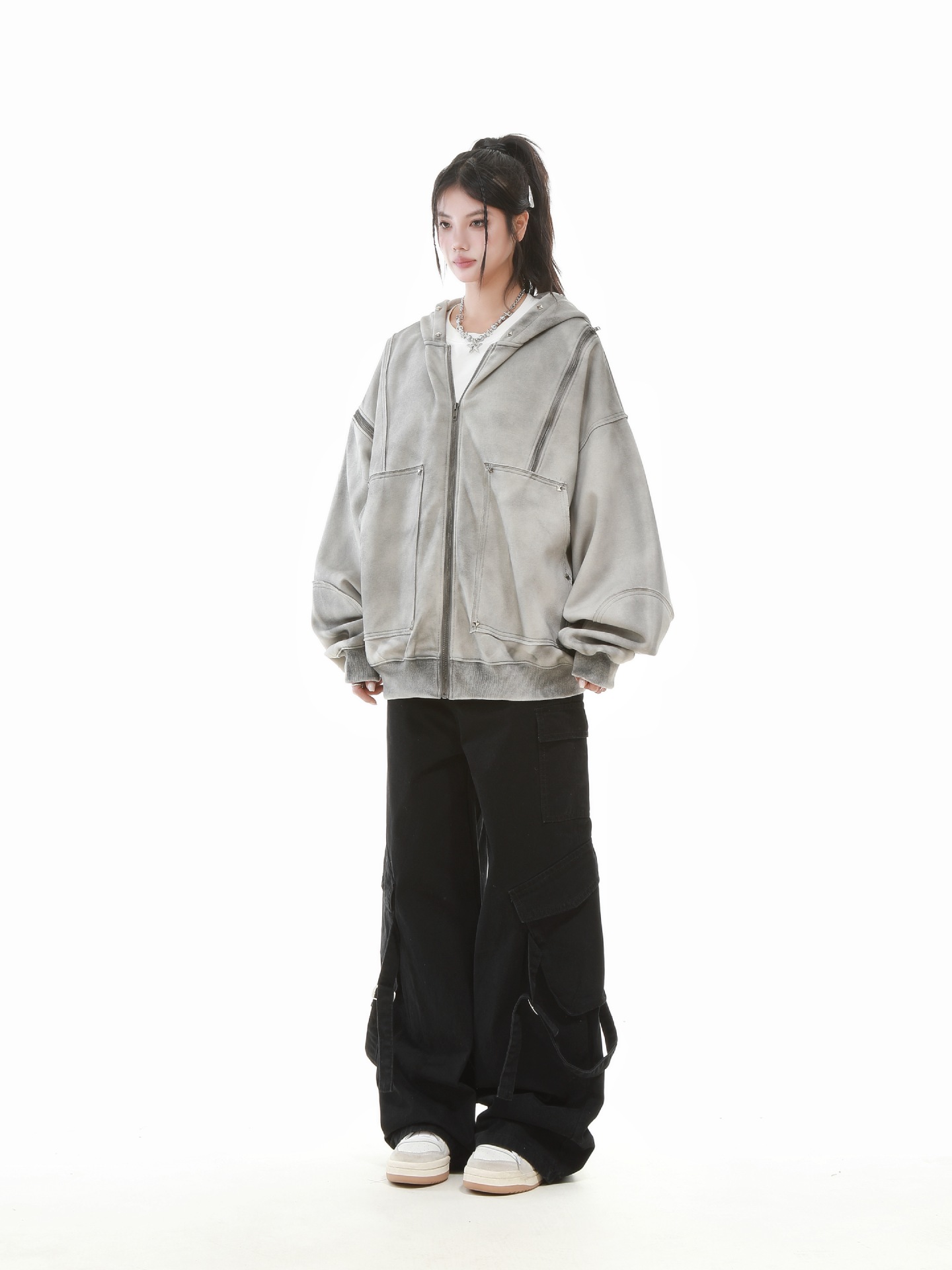 Jiayiku 남성복 2025 가을 신작 황무지 스타일 워시 더러운 염색 후드 재킷 아메리칸 스트리트 지퍼 스웨트 셔츠