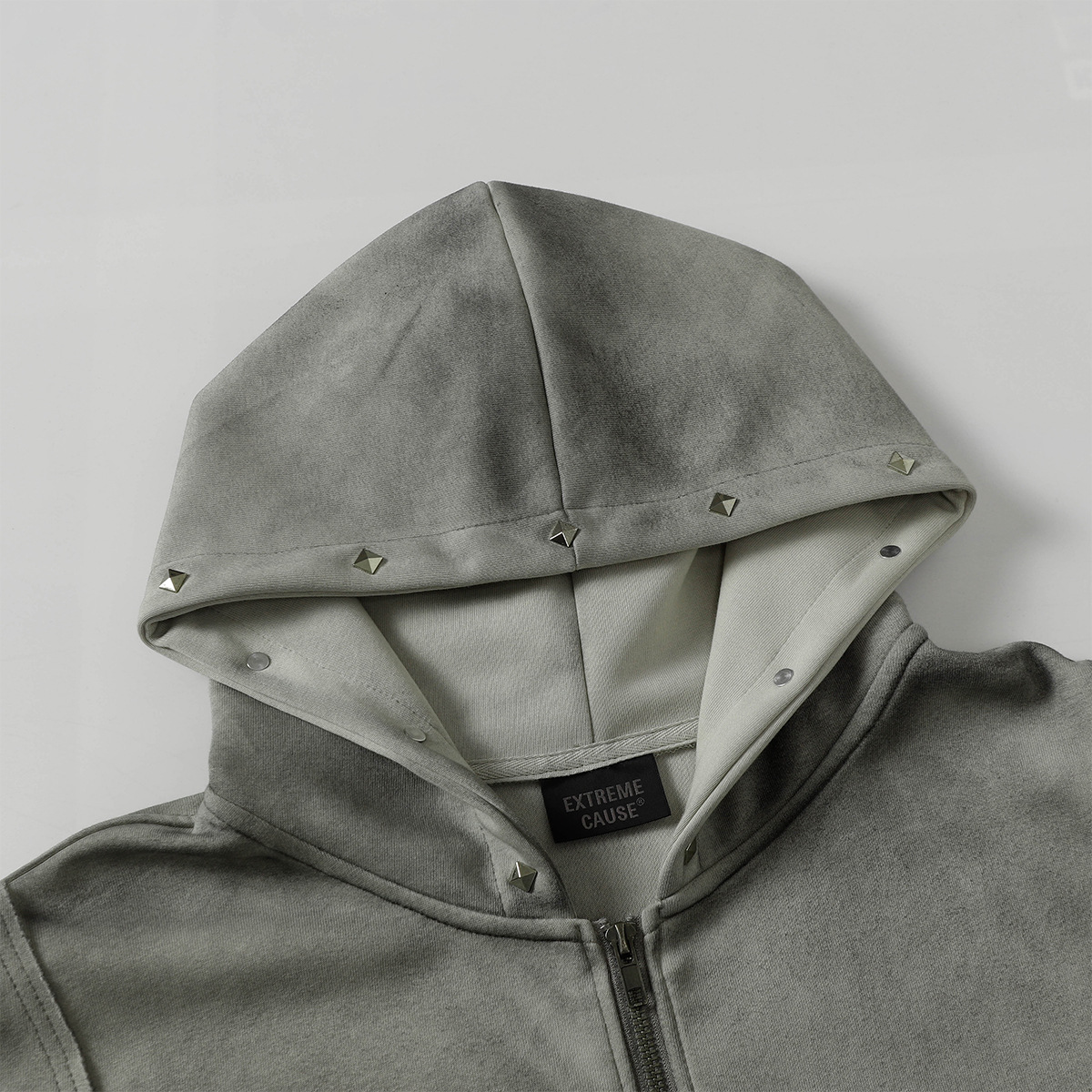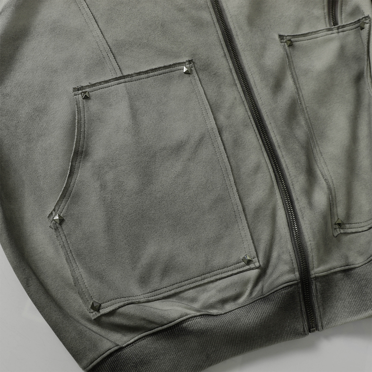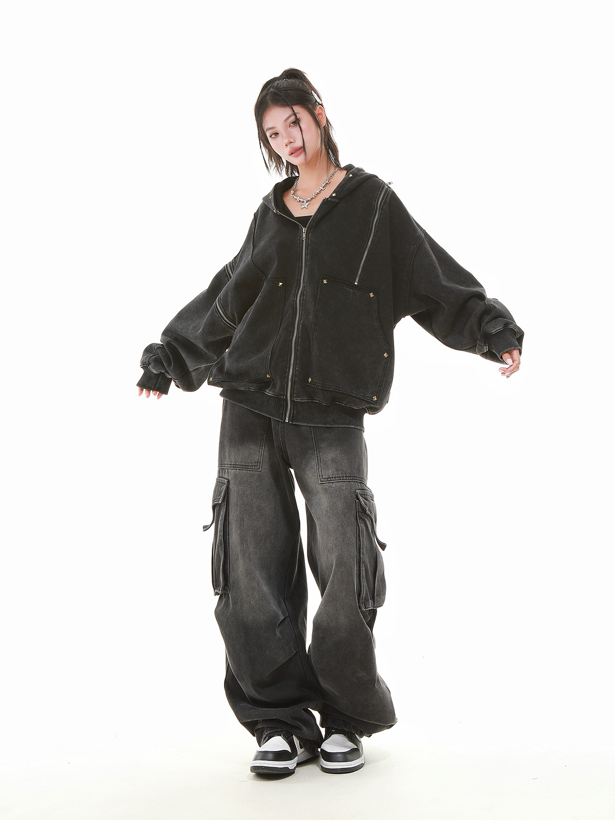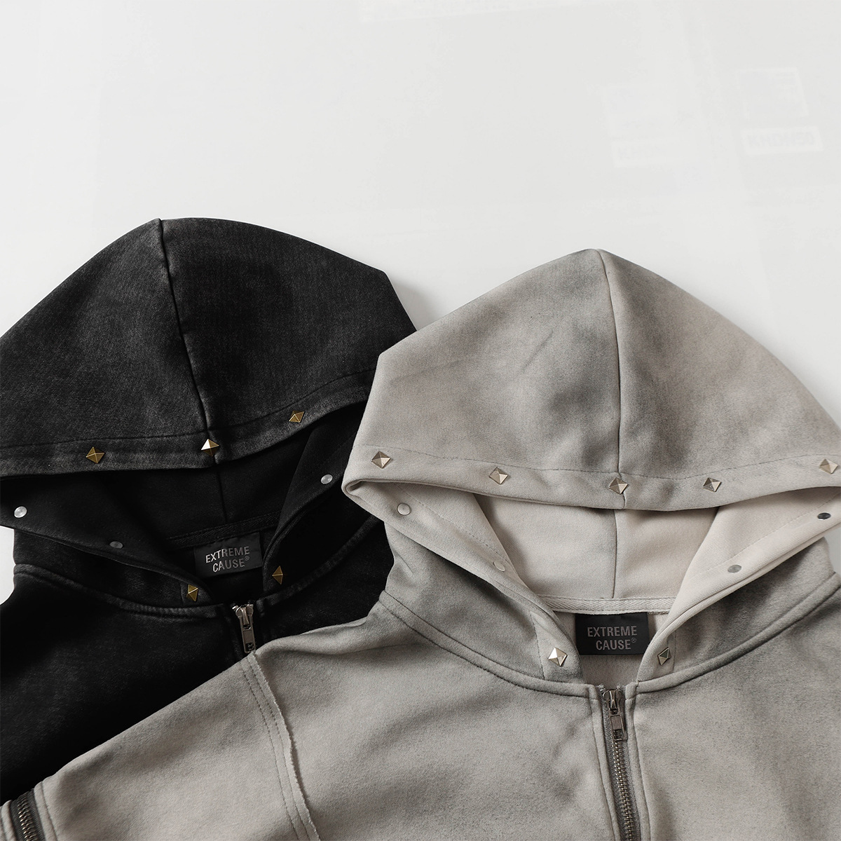 Jiayiku 남성복 2025 가을 신작 황무지 스타일 워시 더러운 염색 후드 재킷 아메리칸 스트리트 지퍼 스웨트 셔츠
