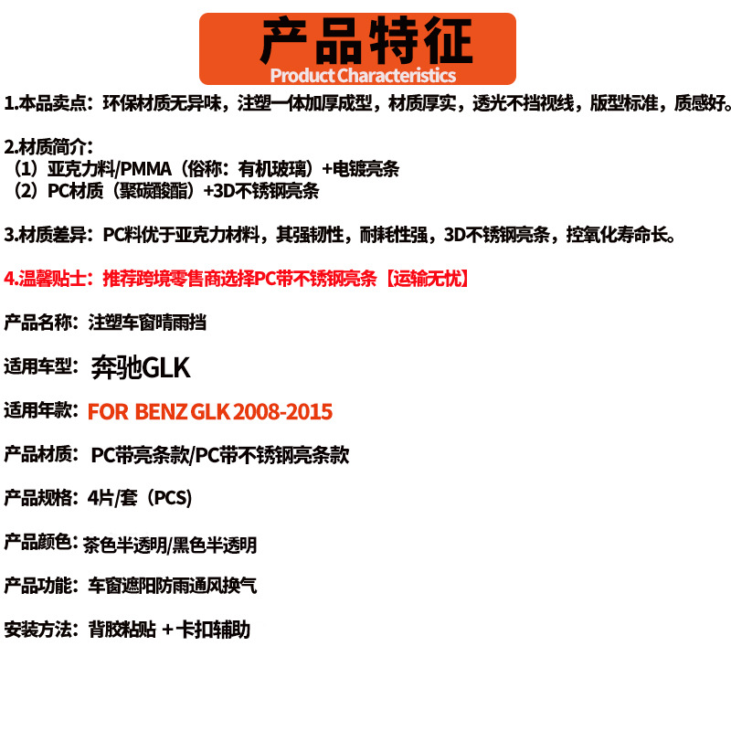 • (배포 가능) 메르세데스-벤츠 GLK X204 2008-2015 PC 실버 브라이트 스트립 윈도우 레인 쉴드