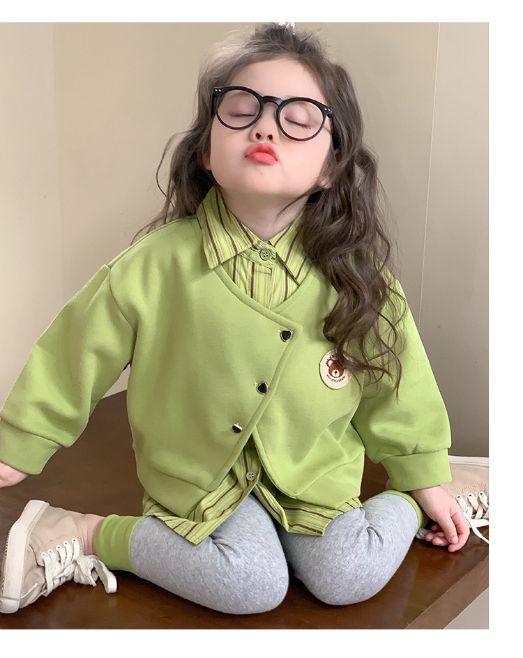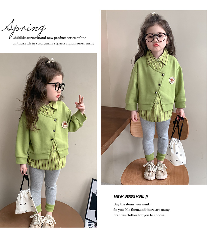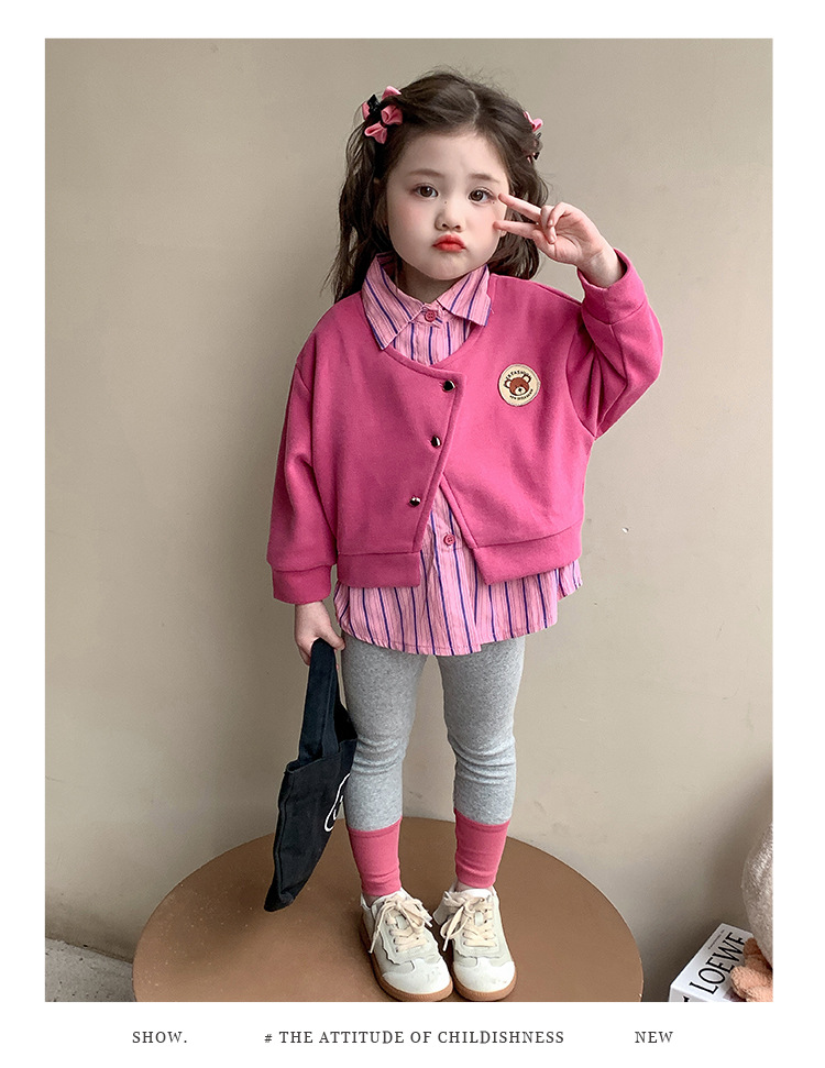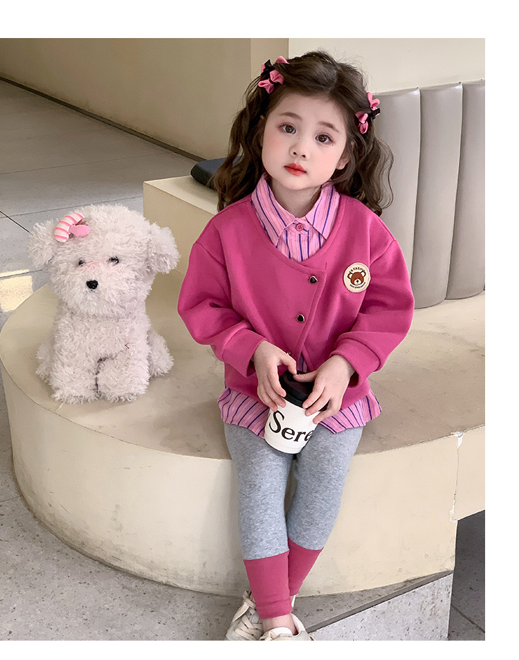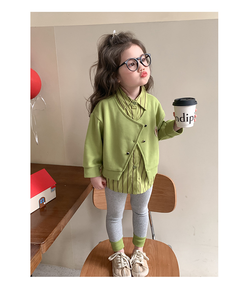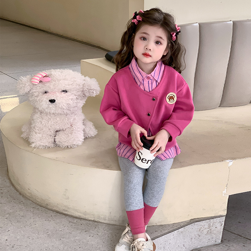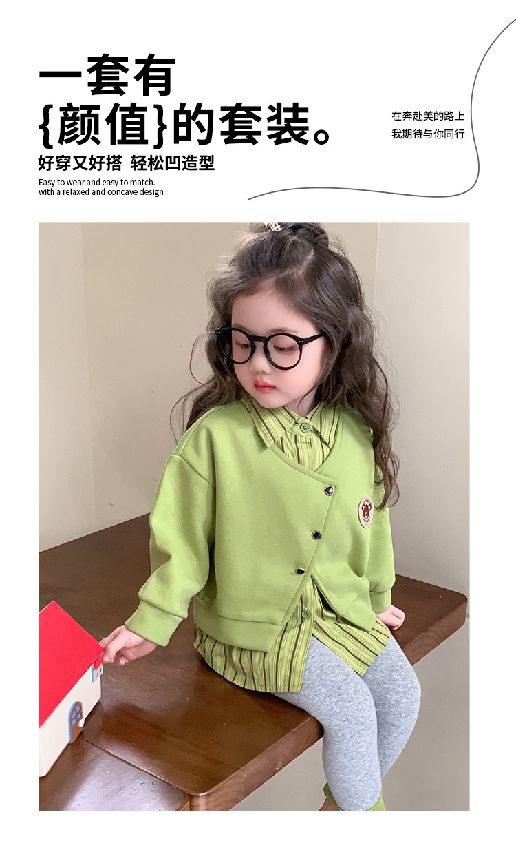 소녀 가짜 2 피스 스웨터 세트 봄과 가을 2025 새로운 소녀 캐주얼 세련된 레깅스 2 피스 세트스토어 가기