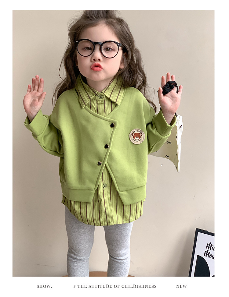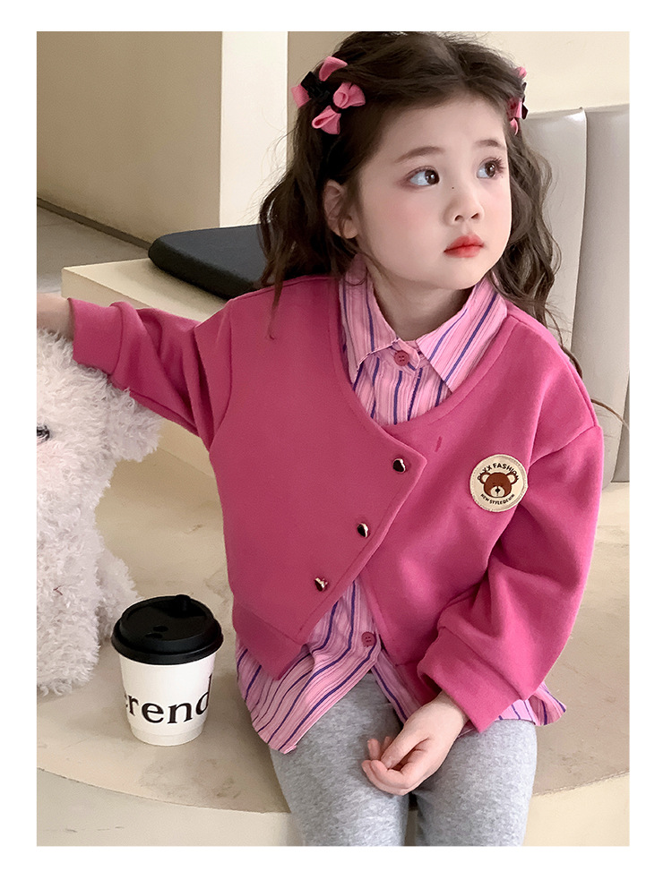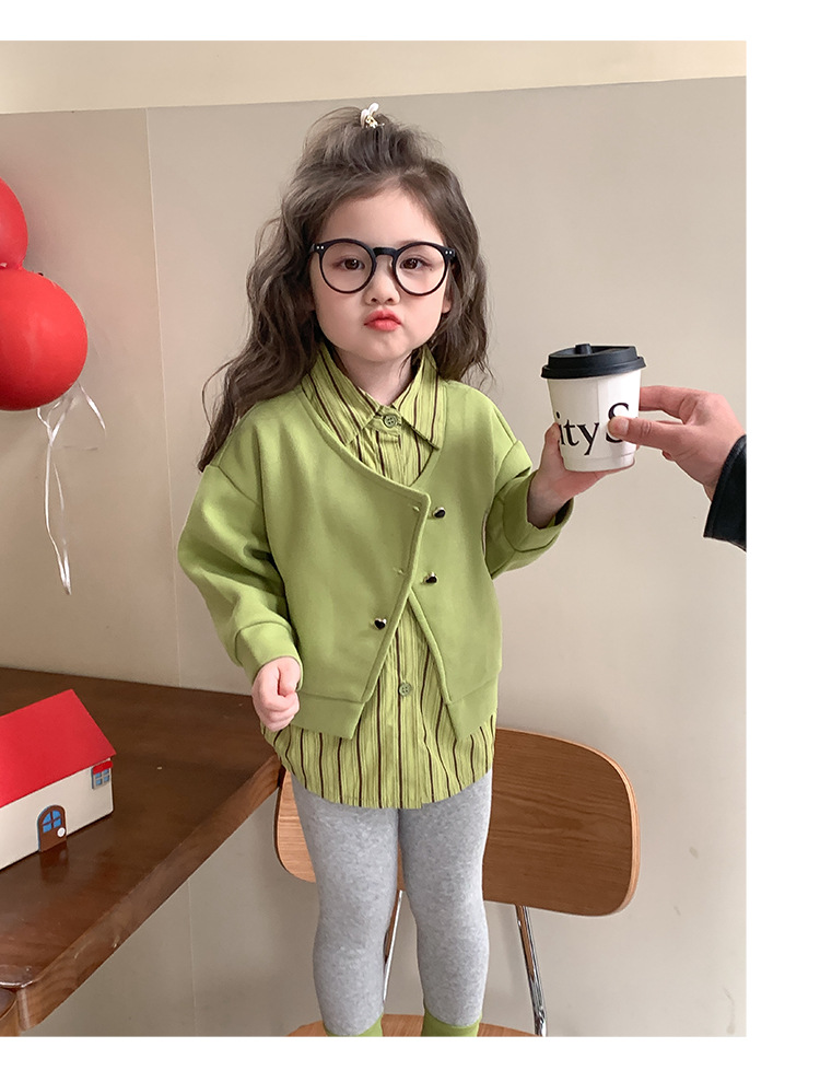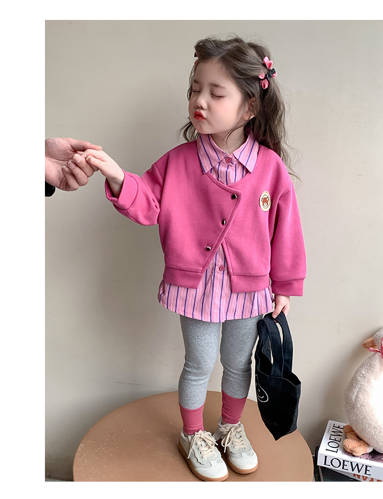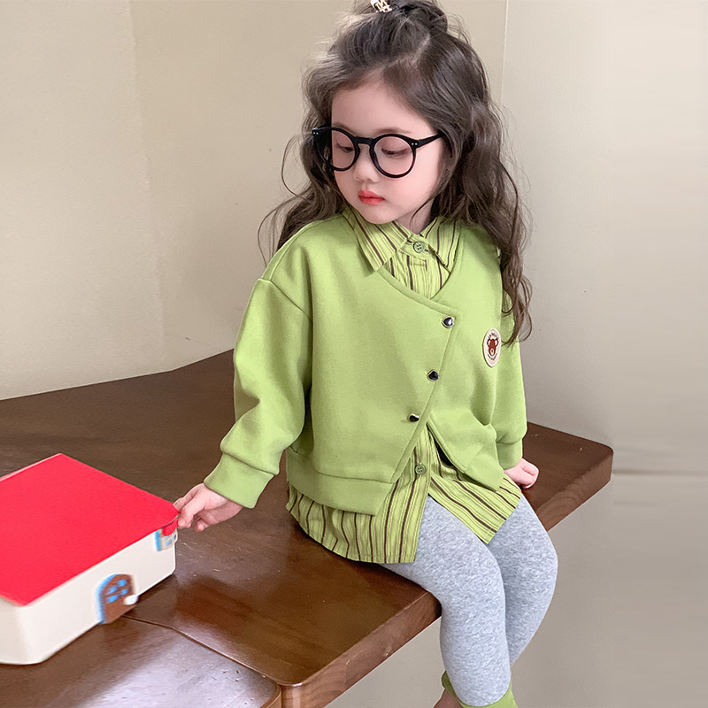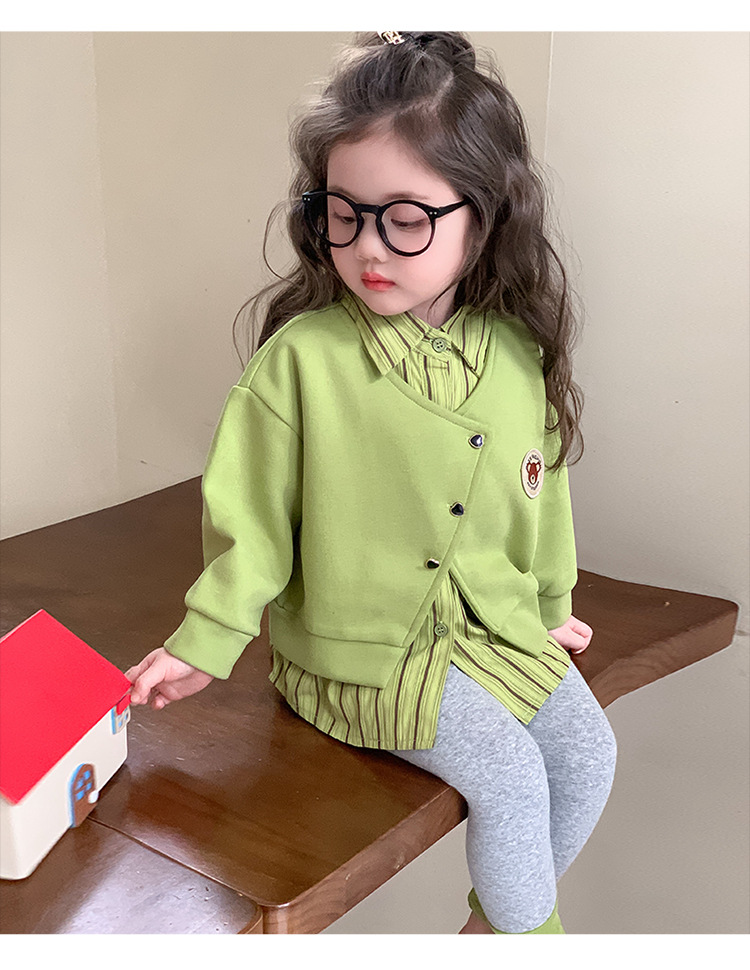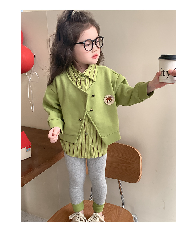 소녀 가짜 2 피스 스웨터 세트 봄과 가을 2025 새로운 소녀 캐주얼 세련된 레깅스 2 피스 세트스토어 가기