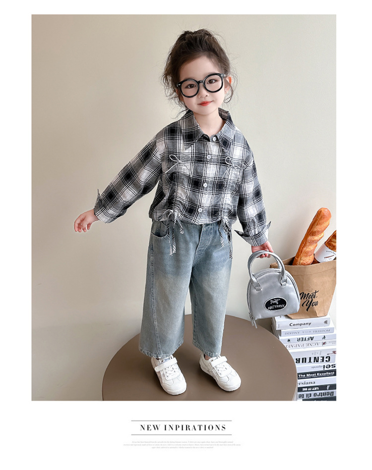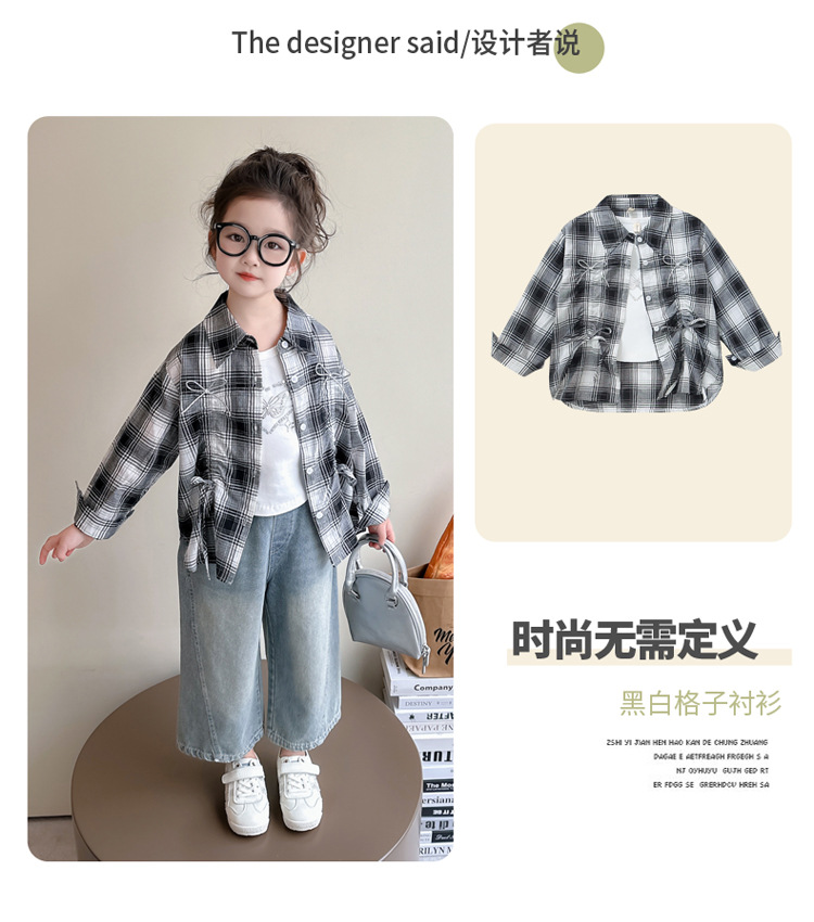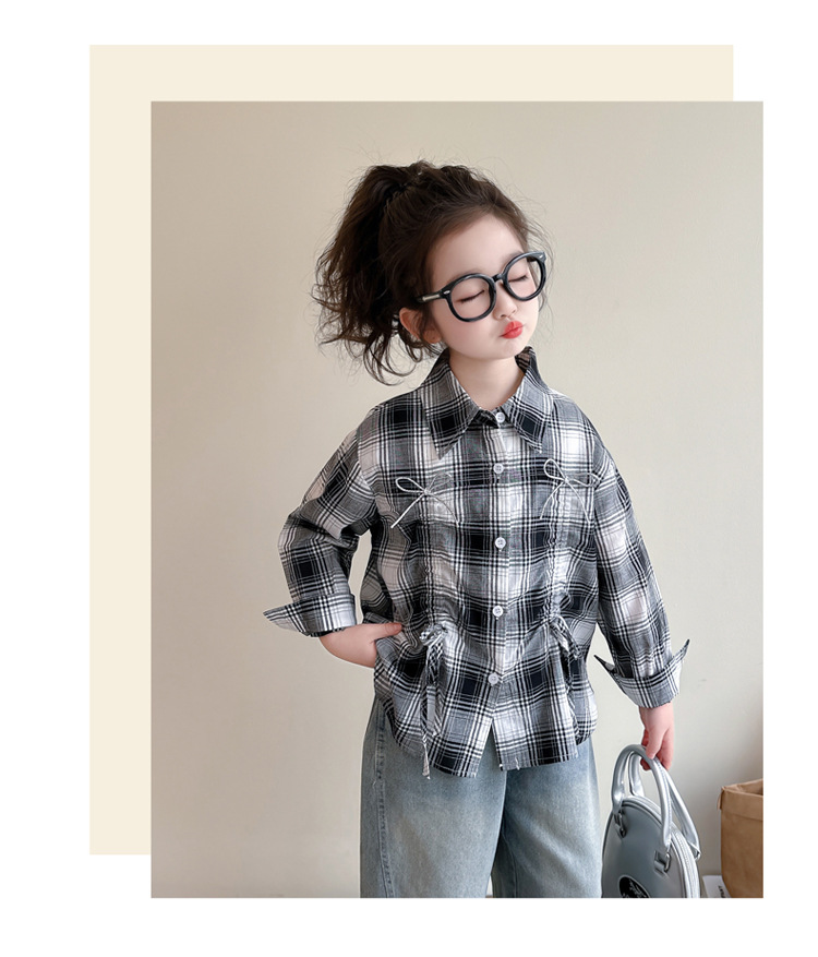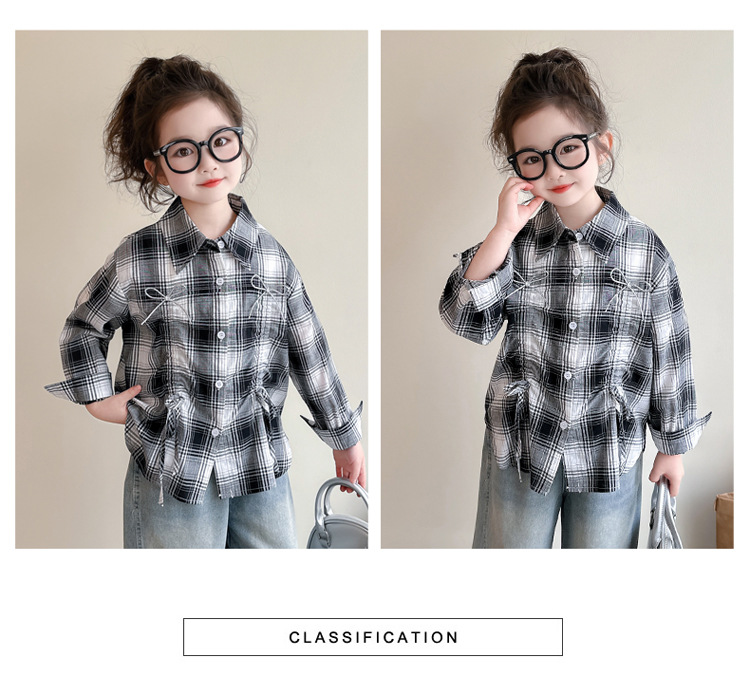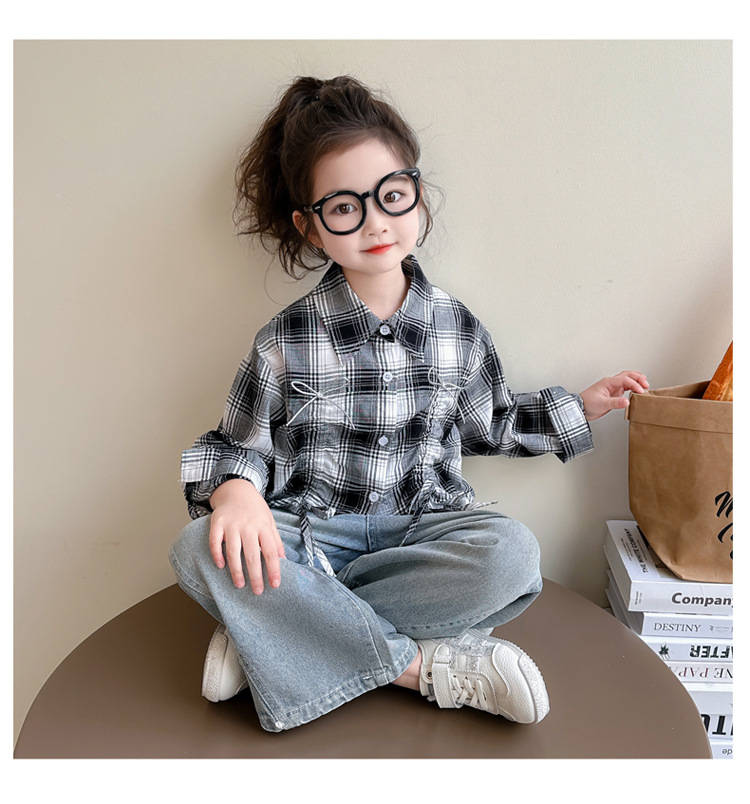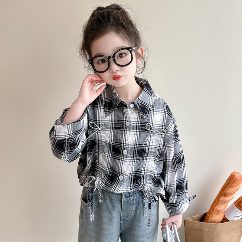 소녀의 흑백 격자 무늬 셔츠 봄과 가을 2025 새로운 도착 어린 소녀의 올 매치 옷깃 레트로 루즈 셔츠 아동복스토어 가기