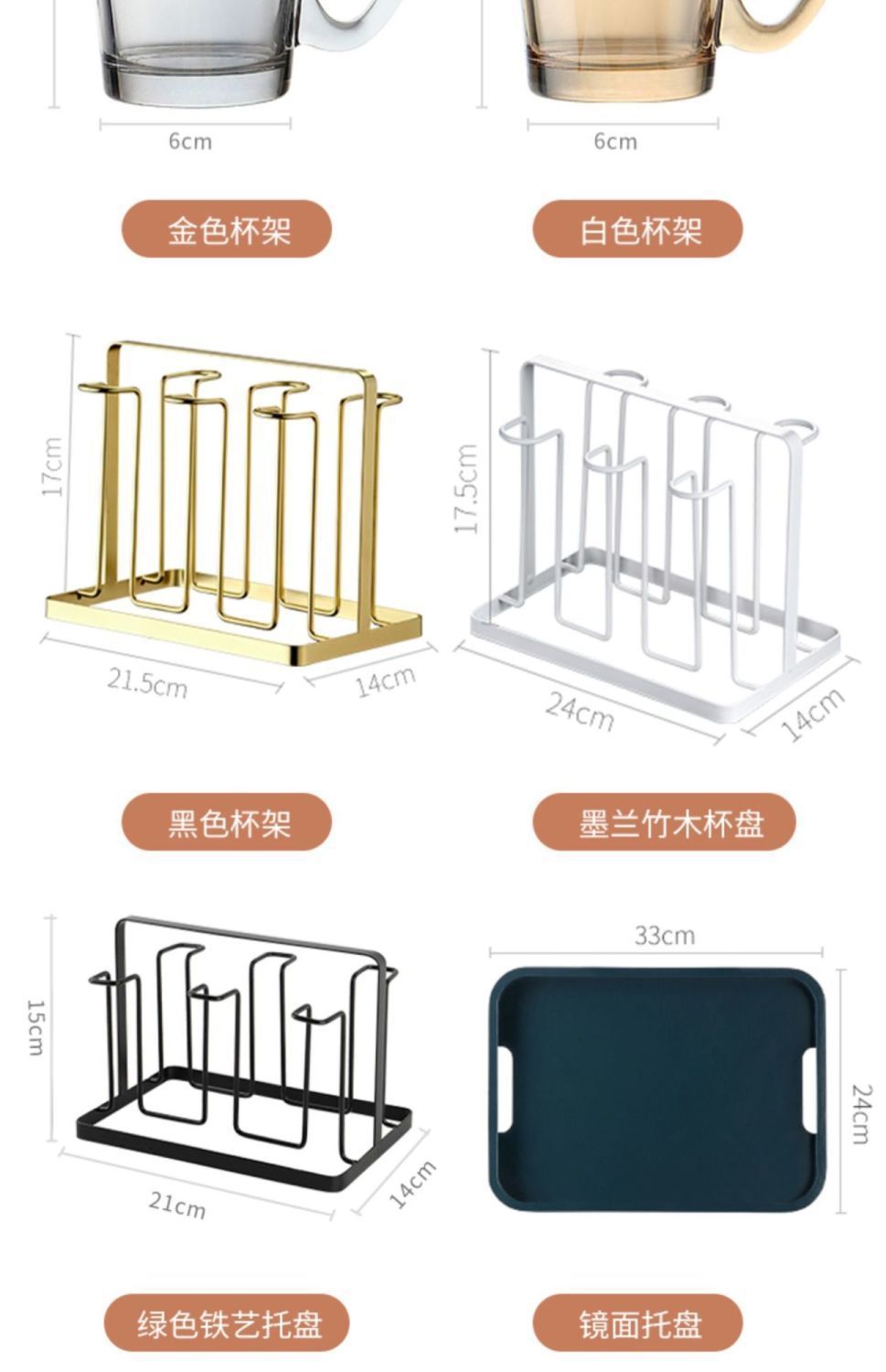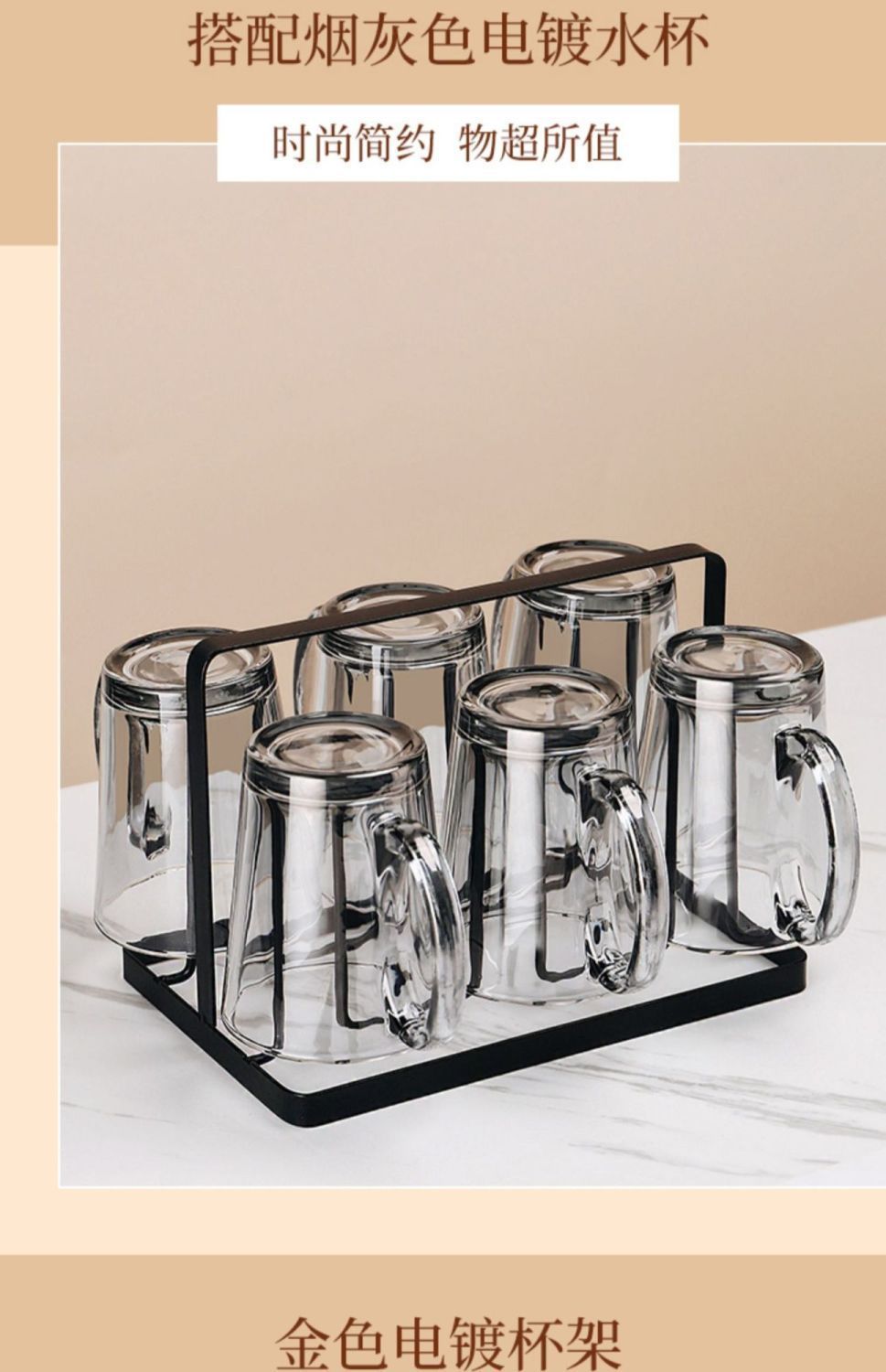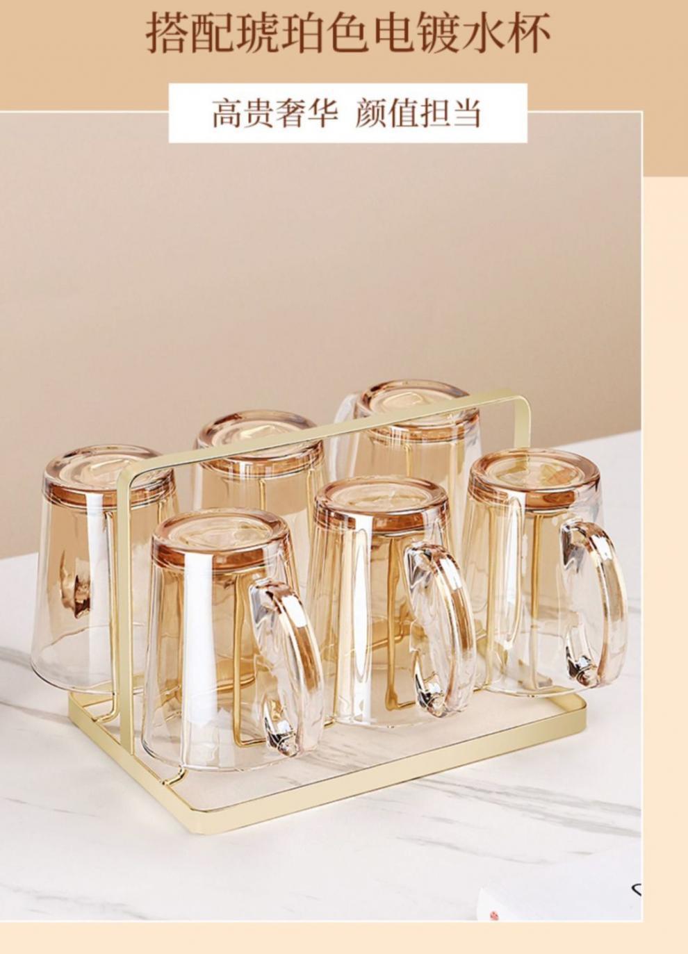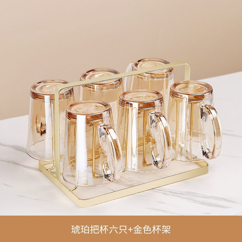 • 호박색 손잡이 컵 6개 + 금색 컵 홀더
