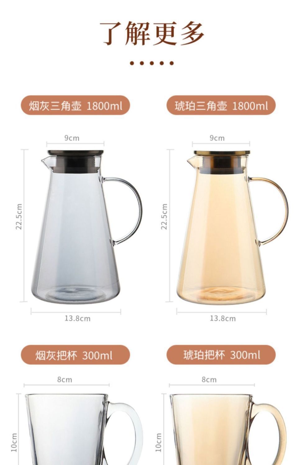 • 호박색 손잡이 컵 6개 + 황금색 컵 홀더 + 호박색 삼각형 냄비