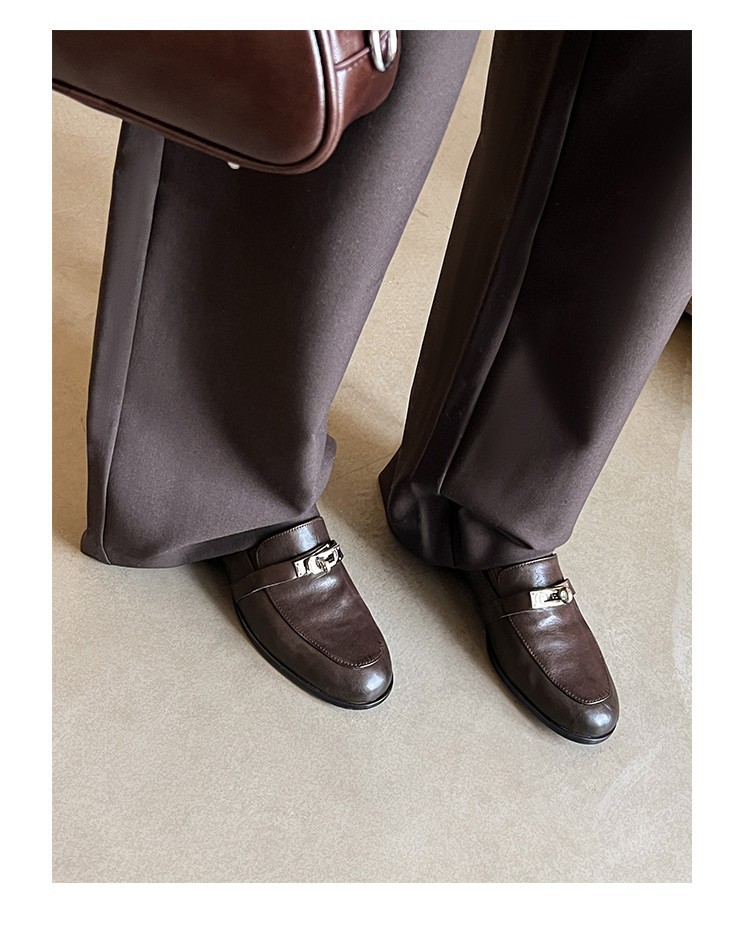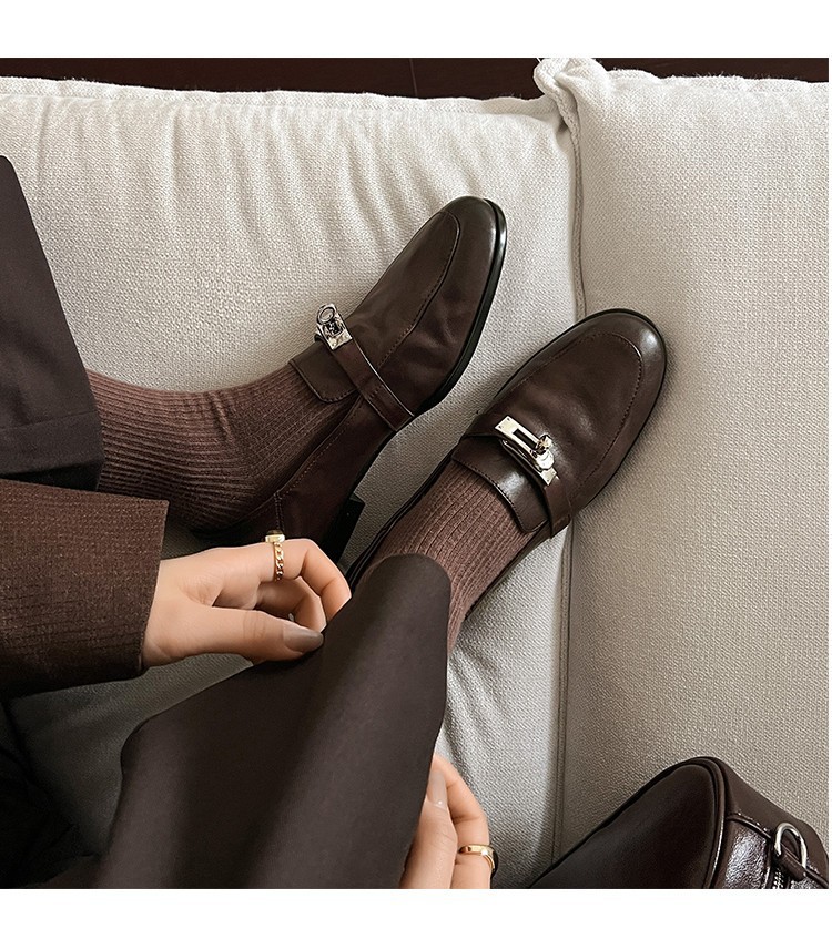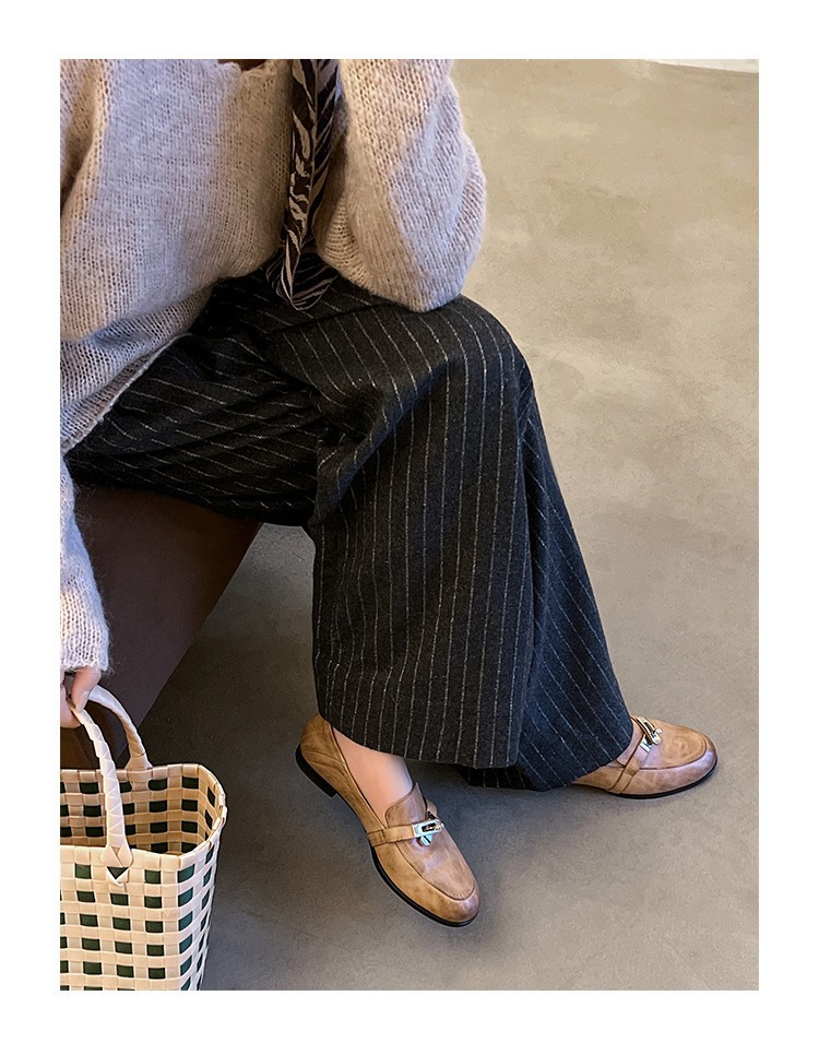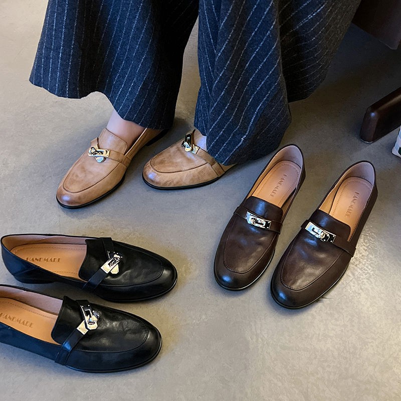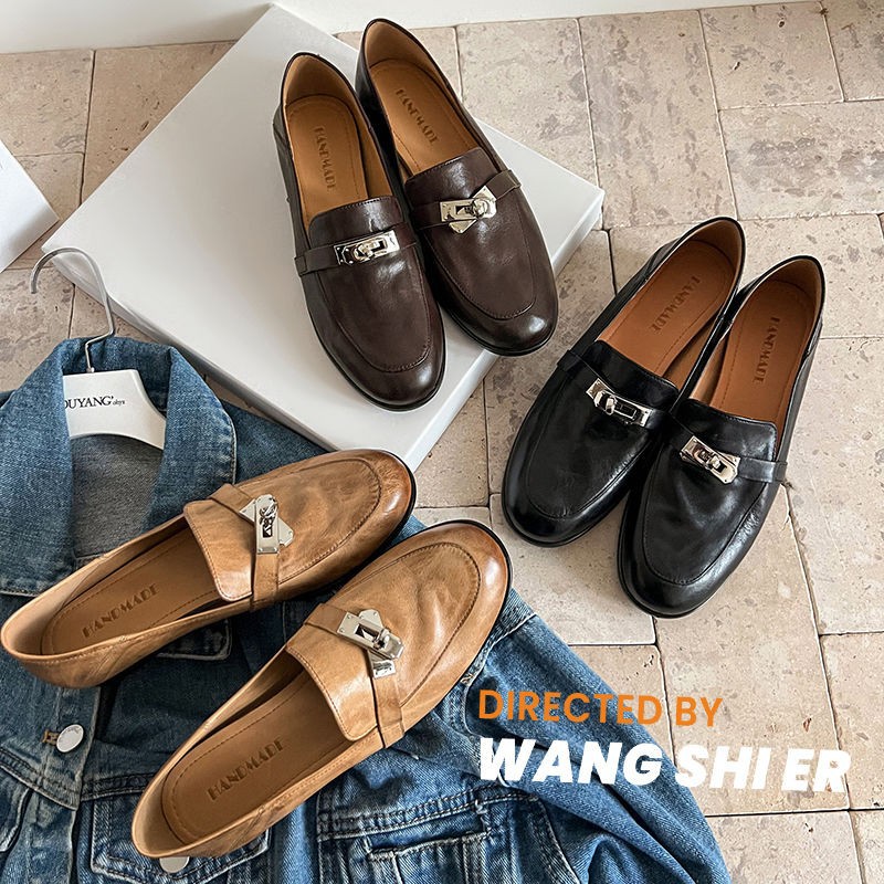 클래식 모델~33-40 사이즈 워싱 가죽 잠금장치 로퍼 2026 봄 브라운 플랫 슈즈 여성용스토어 가기