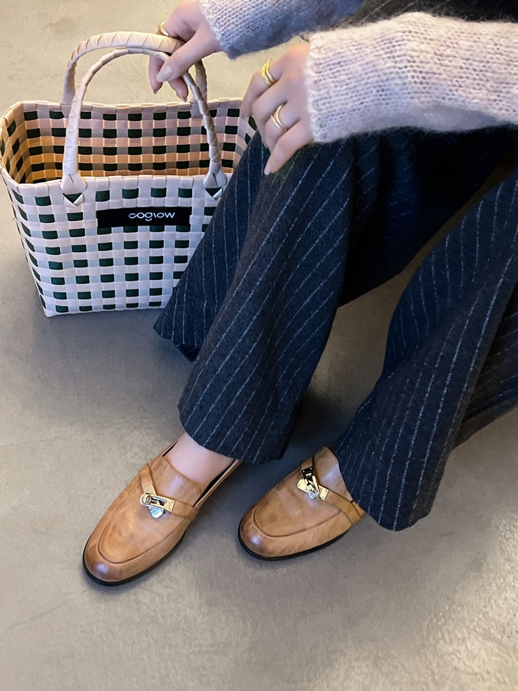 클래식 모델~33-40 사이즈 워싱 가죽 잠금장치 로퍼 2026 봄 브라운 플랫 슈즈 여성용