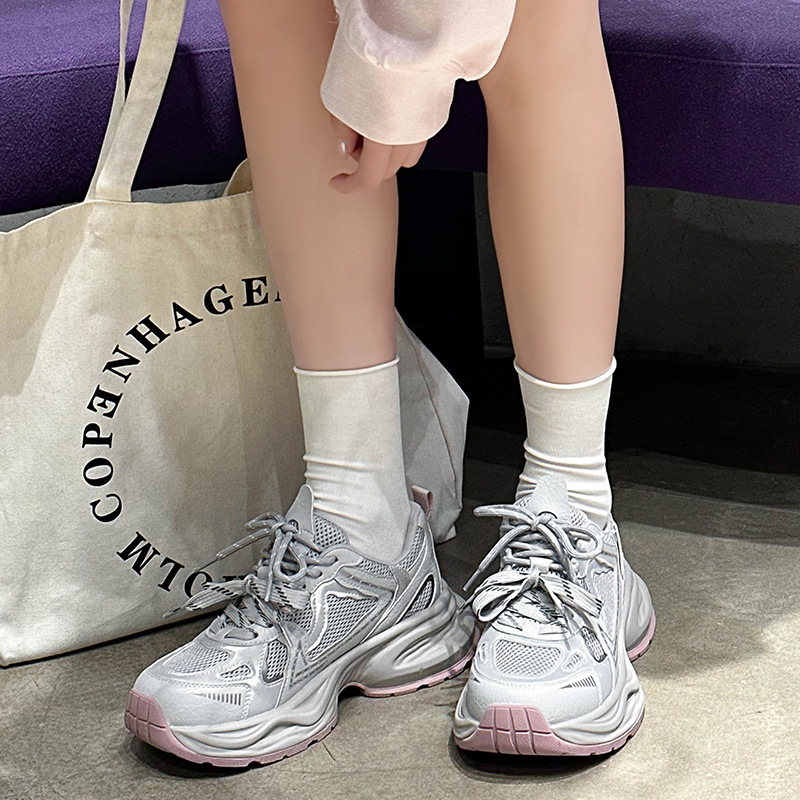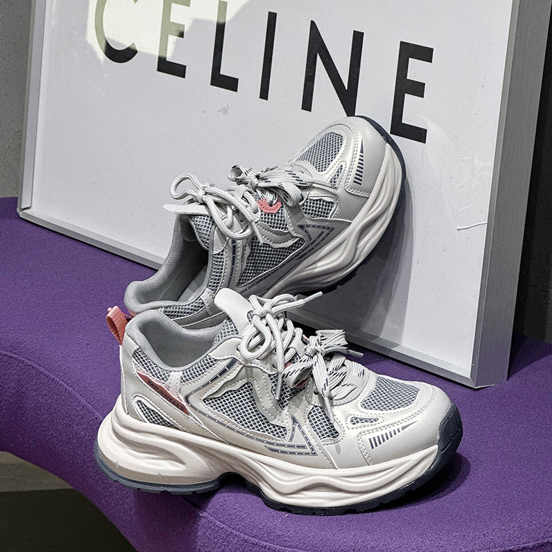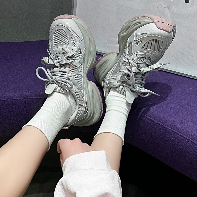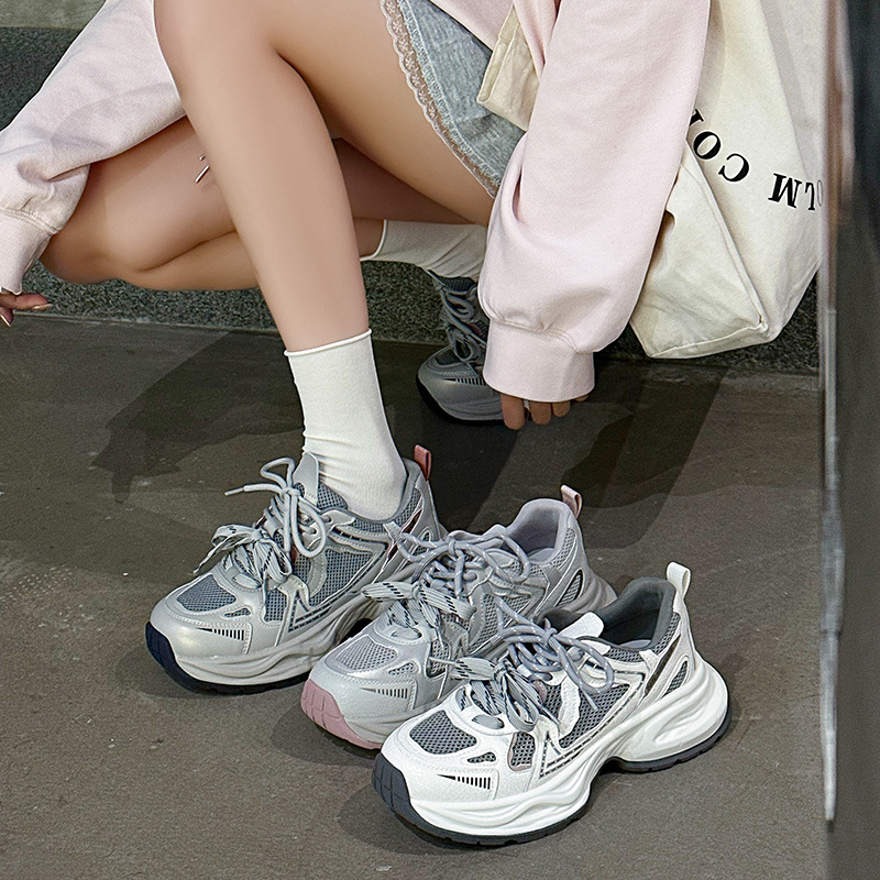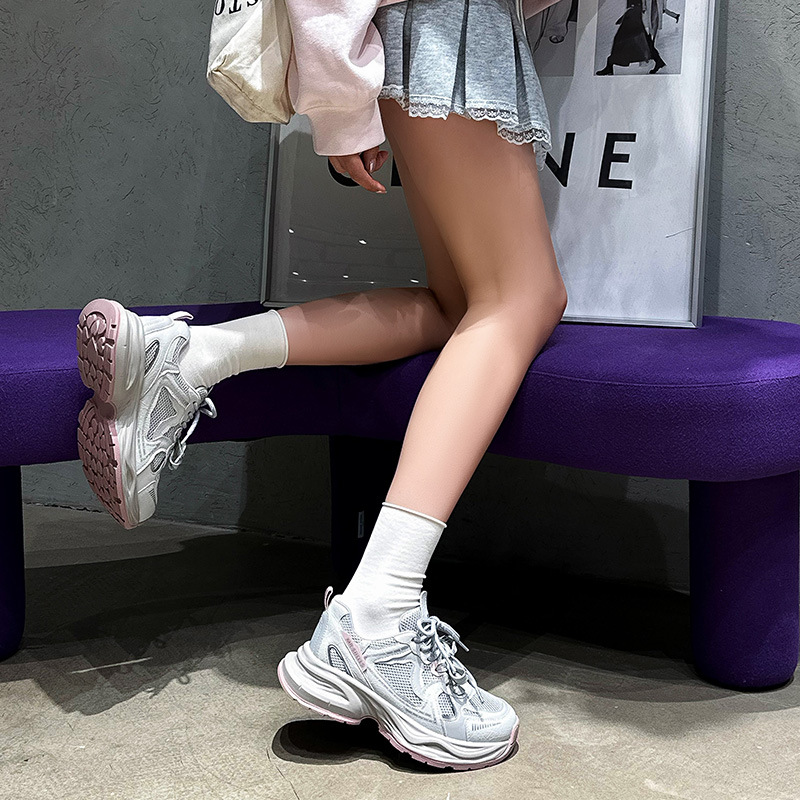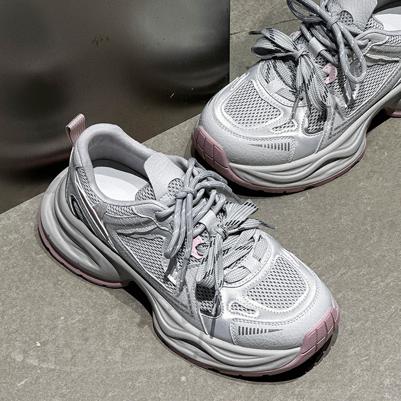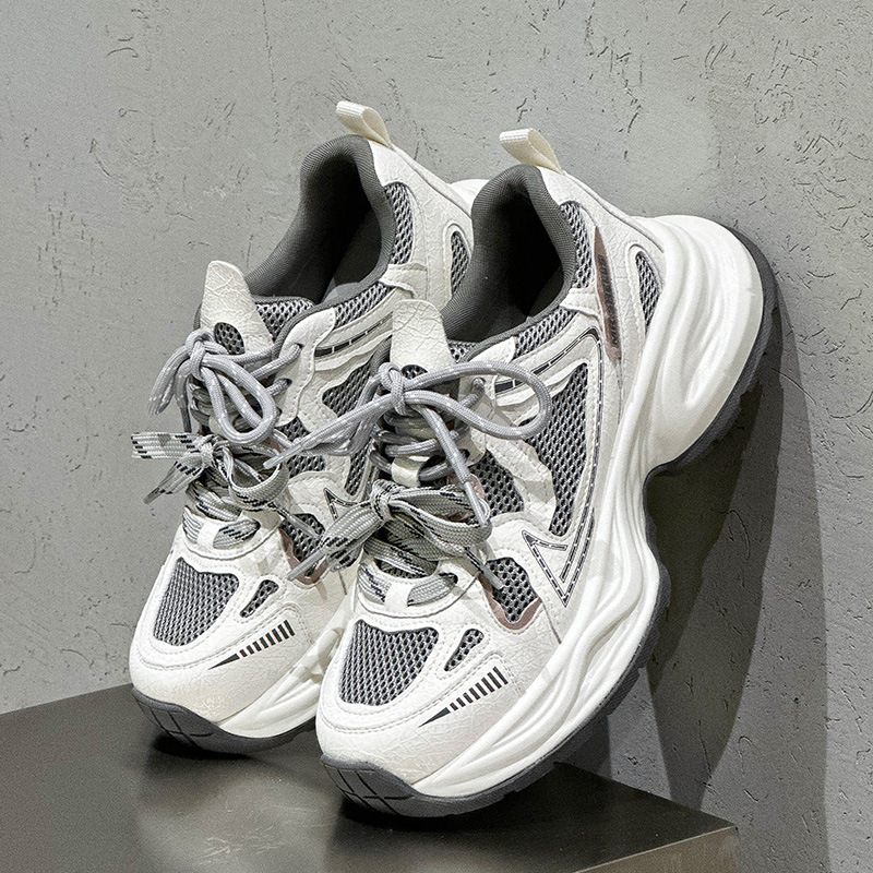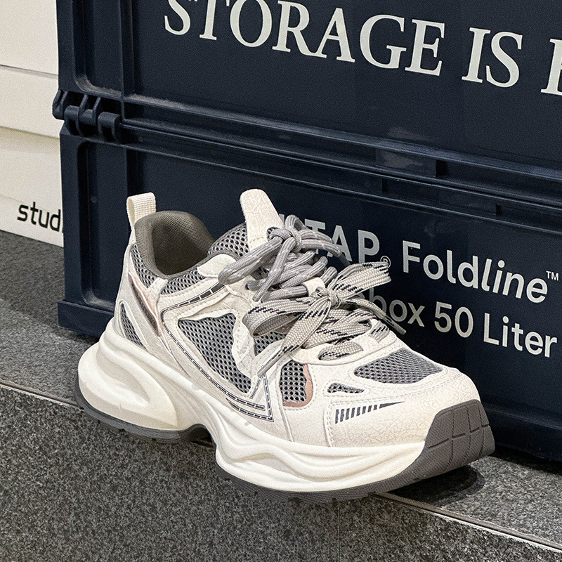 정품 가죽 통기성 메쉬 토레 신발 여성의 2025 봄 새로운 두꺼운 밑창 조커 러닝 운동화 발 신발스토어 가기