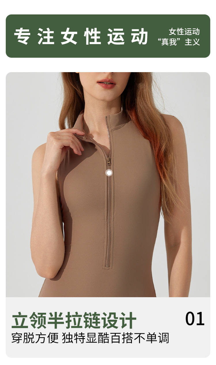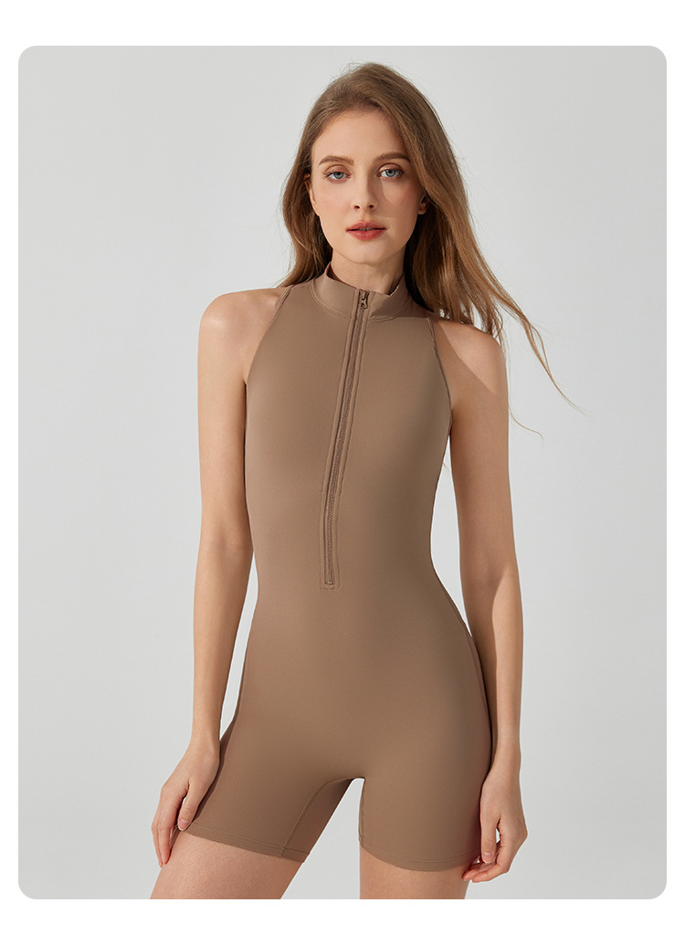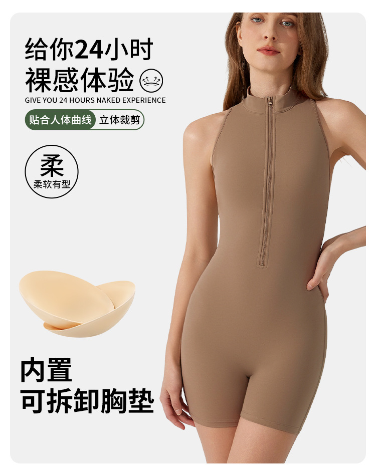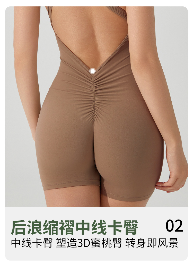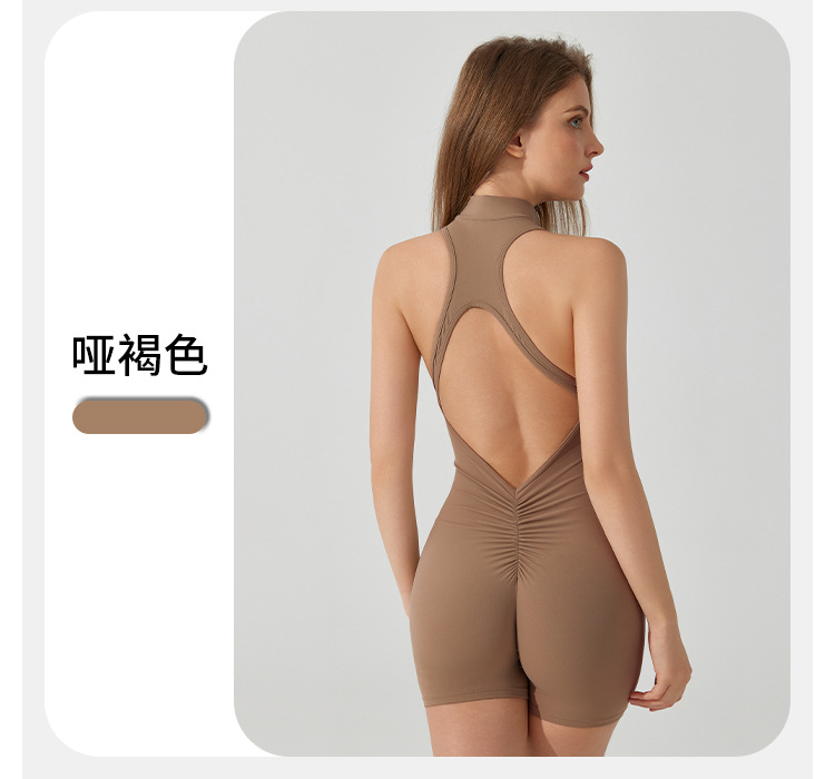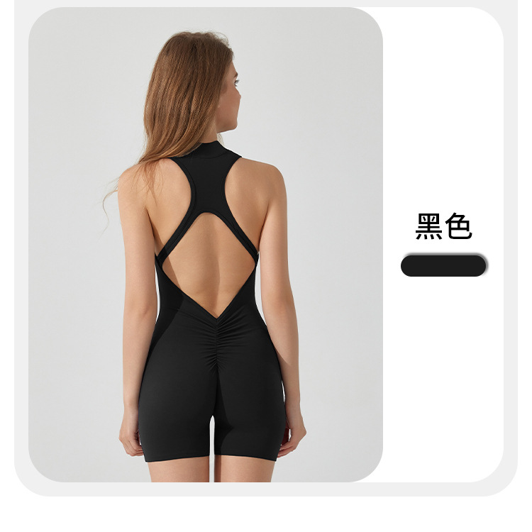 여름 유럽과 미국의 고강도 스포츠 아름 다운 백 요가 점프 수트 지퍼 벌거 벗은 엉덩이 리프팅 타이트한 피트니스 점프 수트