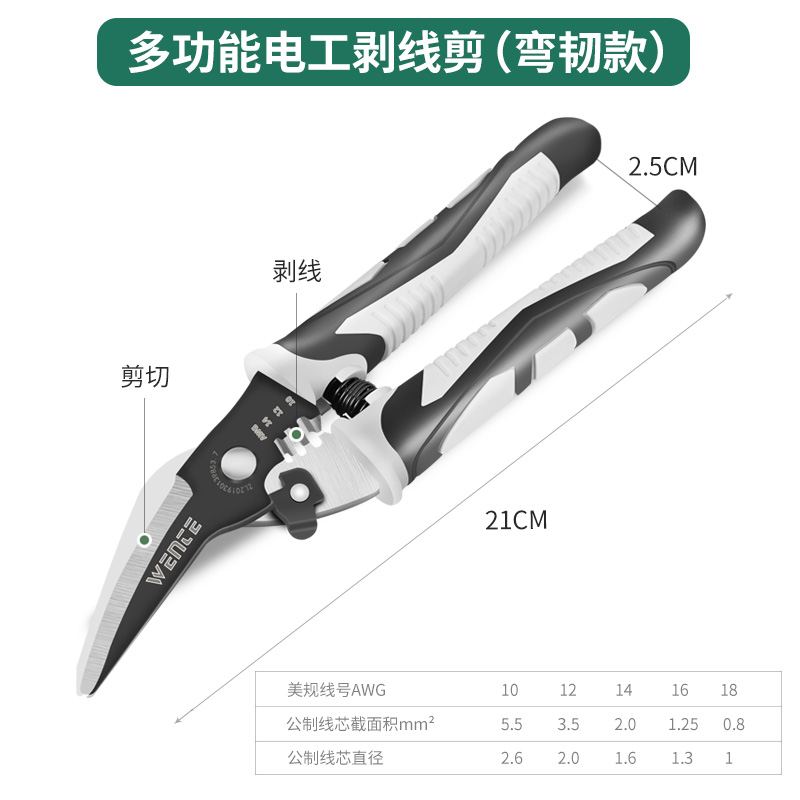 • 다기능 전기 와이어 스트리핑 가위 - 철 용골을 절단할 수 있습니다(굴곡 및 터프 모델).