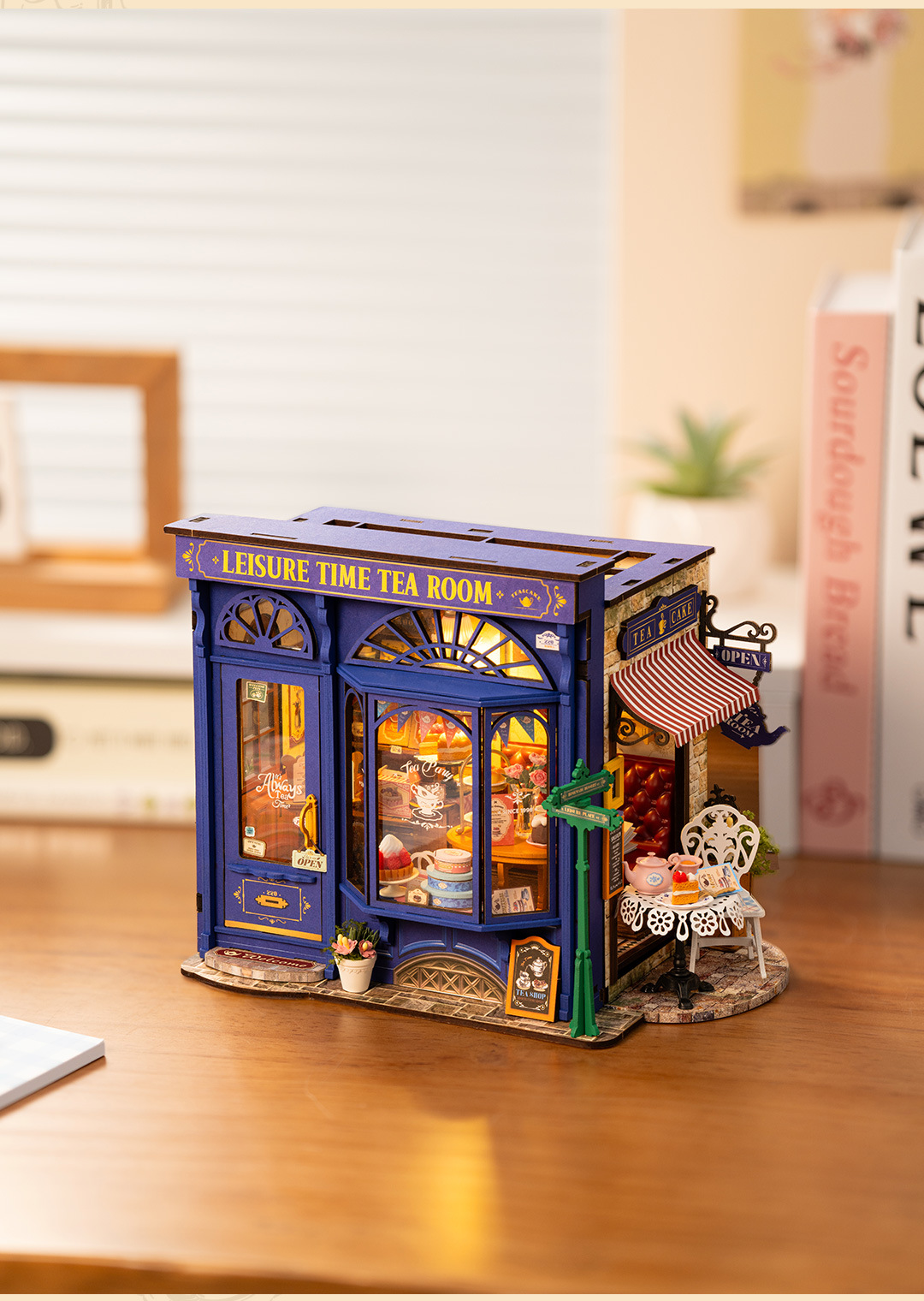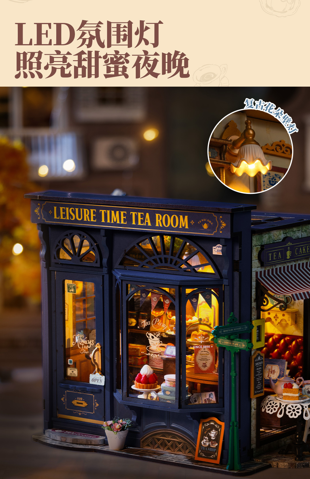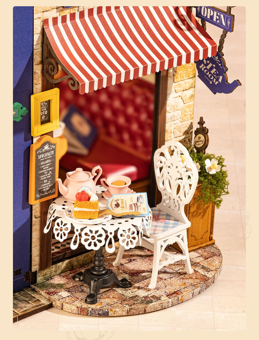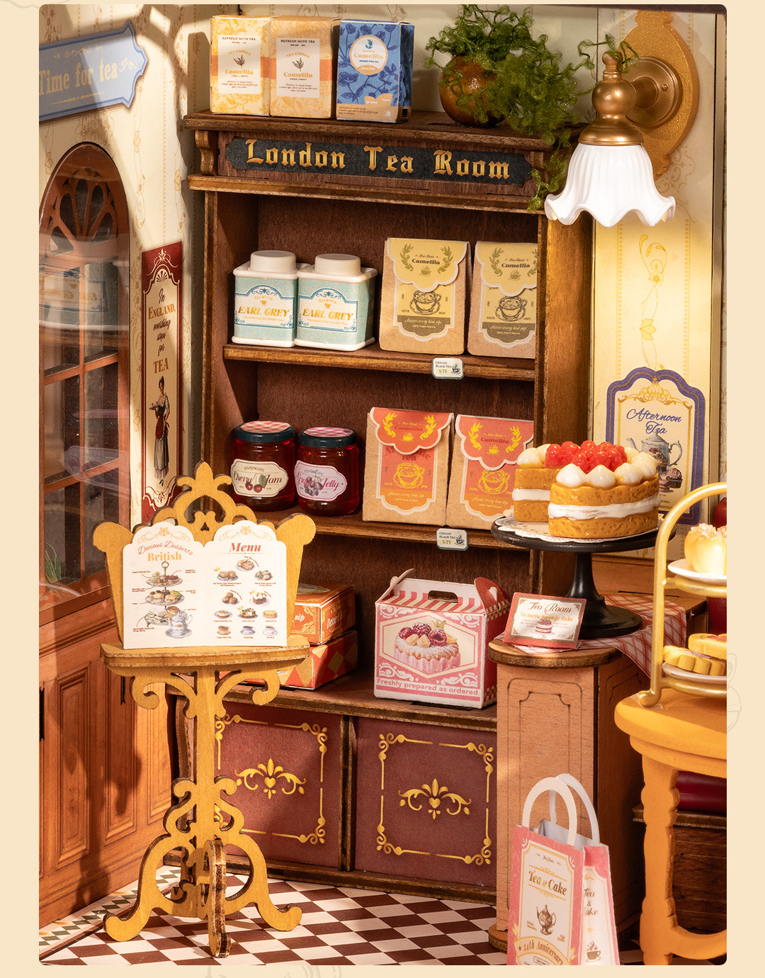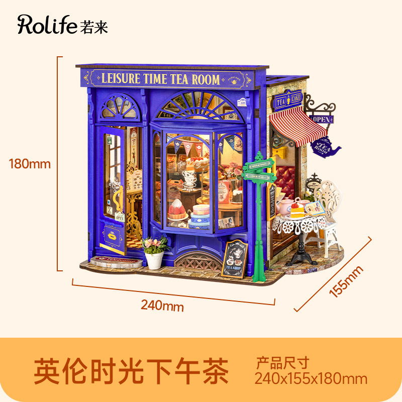Rolife Ruolai 영국 시간 애프터눈 티 DIY 수제 오두막 작은 집 모델 미니 장면 빌딩 블록 여성스토어 가기