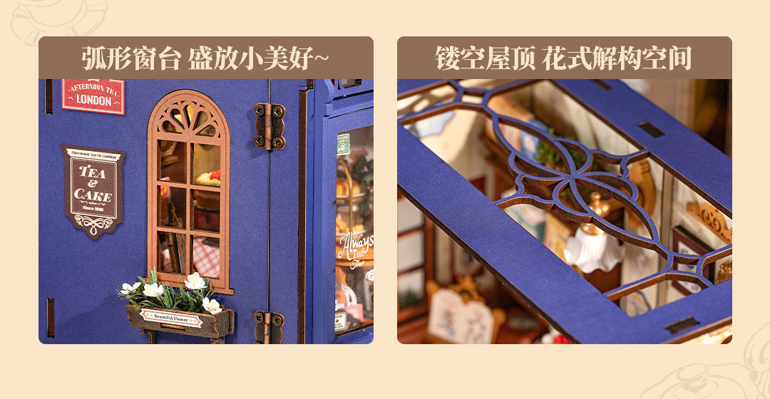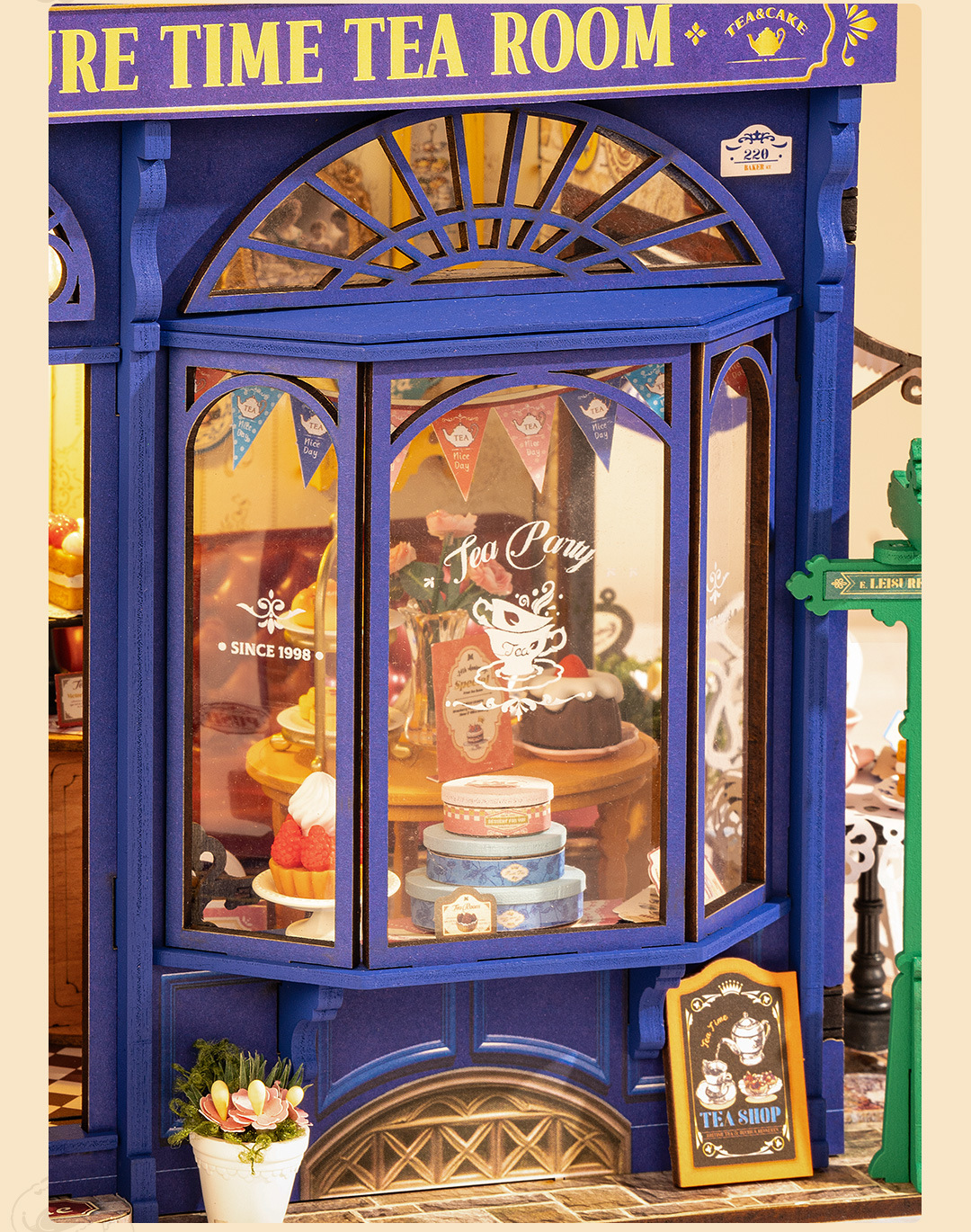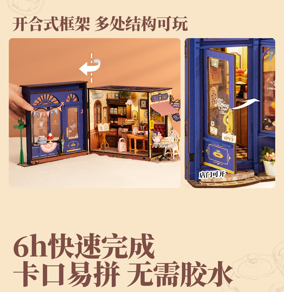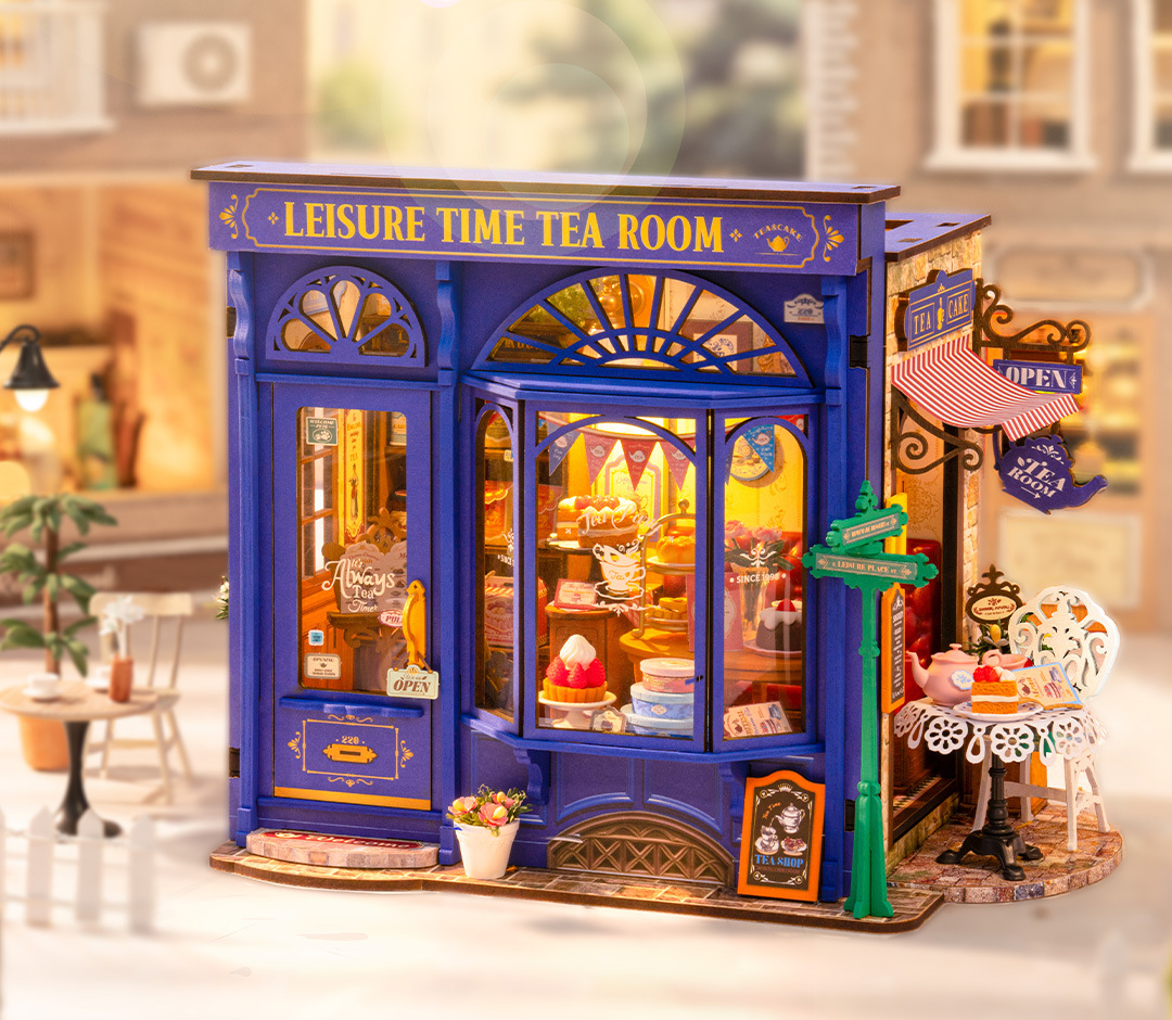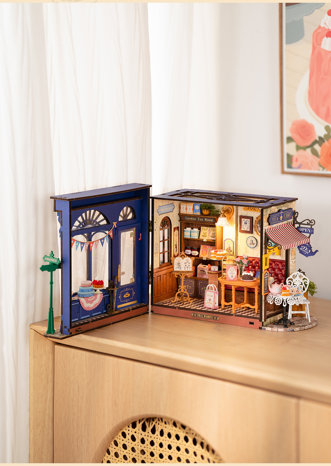 Rolife Ruolai 영국 시간 애프터눈 티 DIY 수제 오두막 작은 집 모델 미니 장면 빌딩 블록 여성스토어 가기