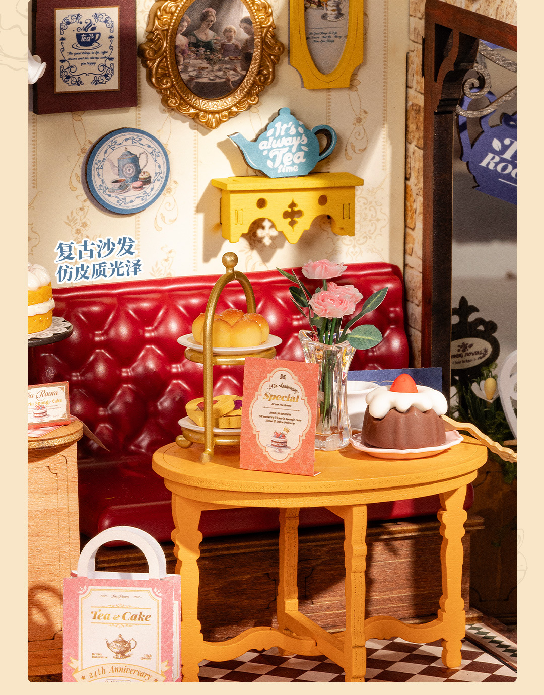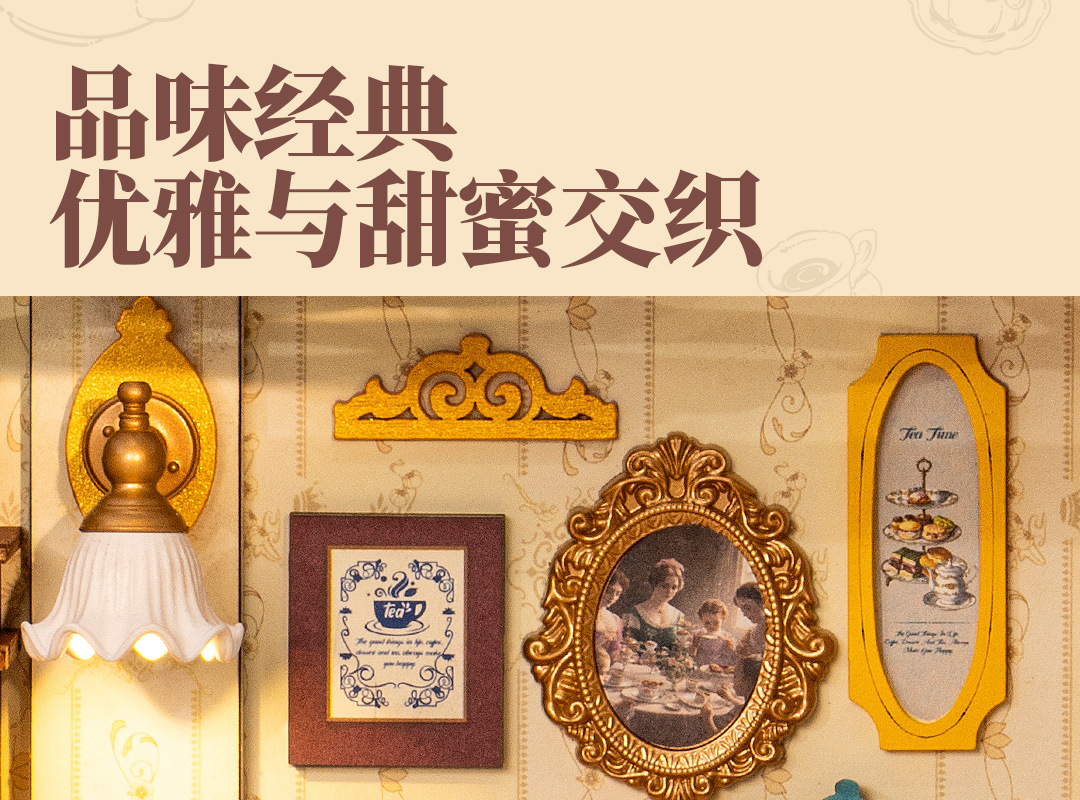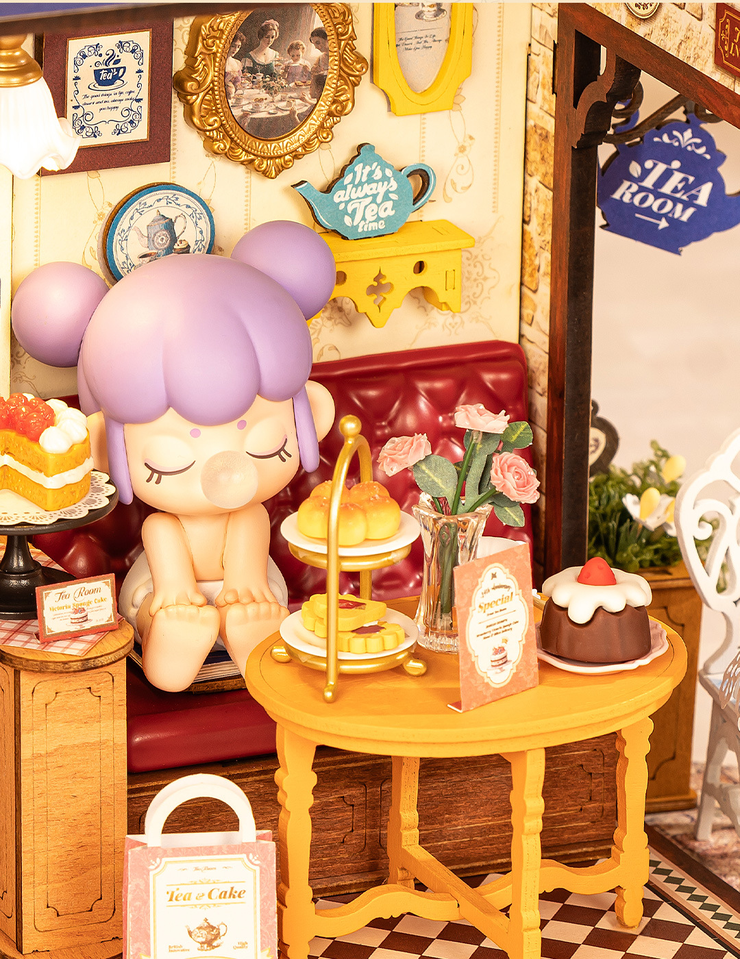 Rolife Ruolai 영국 시간 애프터눈 티 DIY 수제 오두막 작은 집 모델 미니 장면 빌딩 블록 여성